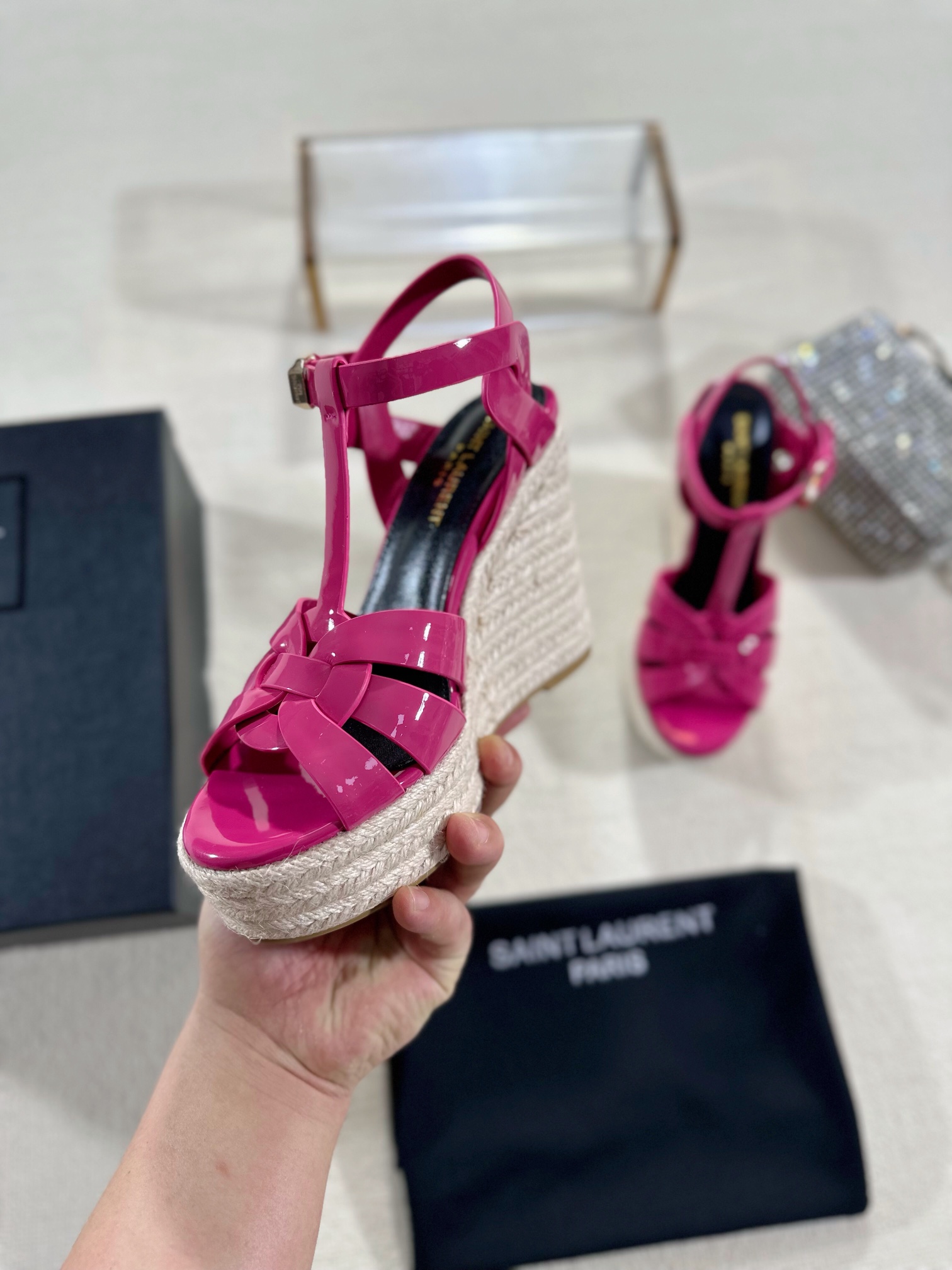 这款鞋子是AAAAA 1:1 质量 (非常棒). 使用了和原版一模一样的材料. 商标部分也保持了和圣罗兰/Saint Laurent一样. 图片拍摄是实物鞋子拍摄, 您所收到的实物保证和我们图片一模一样.