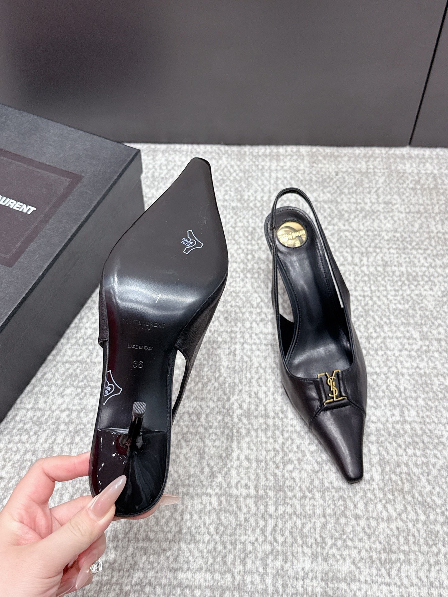 这款鞋子是AAAAA 1:1 质量 (非常棒). 使用了和原版一模一样的材料. 商标部分也保持了和圣罗兰/Saint Laurent一样. 图片拍摄是实物鞋子拍摄, 您所收到的实物保证和我们图片一模一样.
