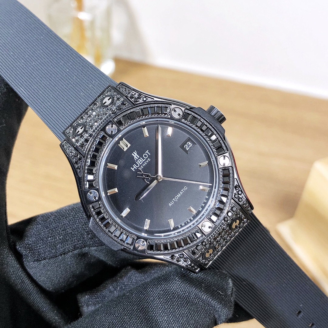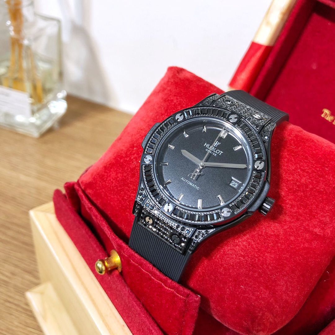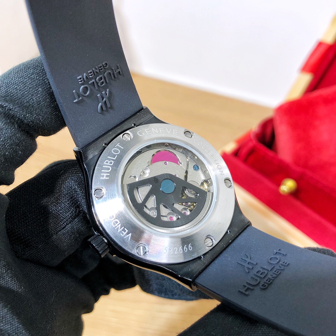 这款手表是AAAAA 1:1 质量 (非常棒). 使用了和原版一模一样的材料. 商标部分也保持了和Hublot一样. 图片拍摄是实物手表拍摄, 您所收到的实物保证和我们图片一模一样.
