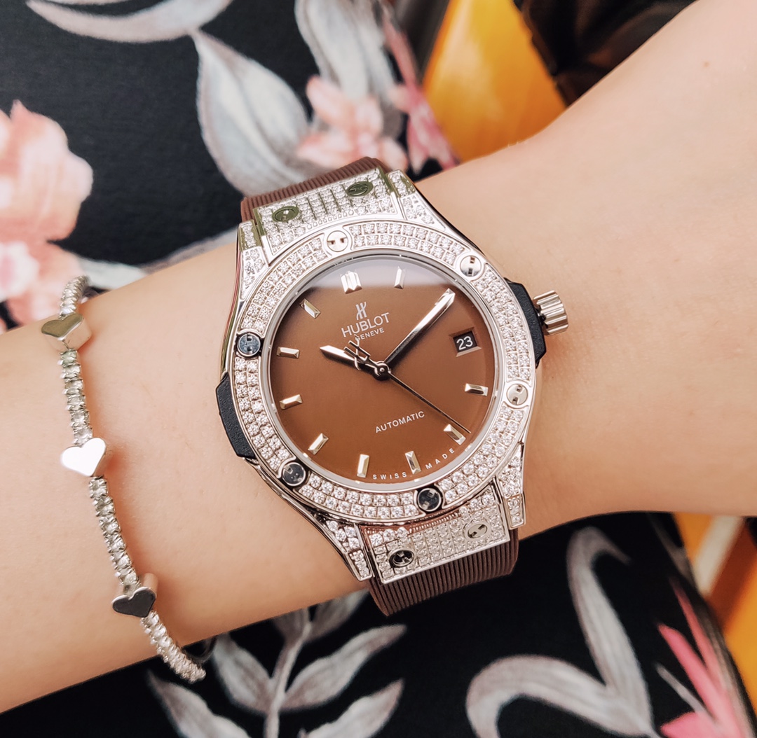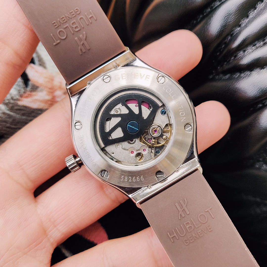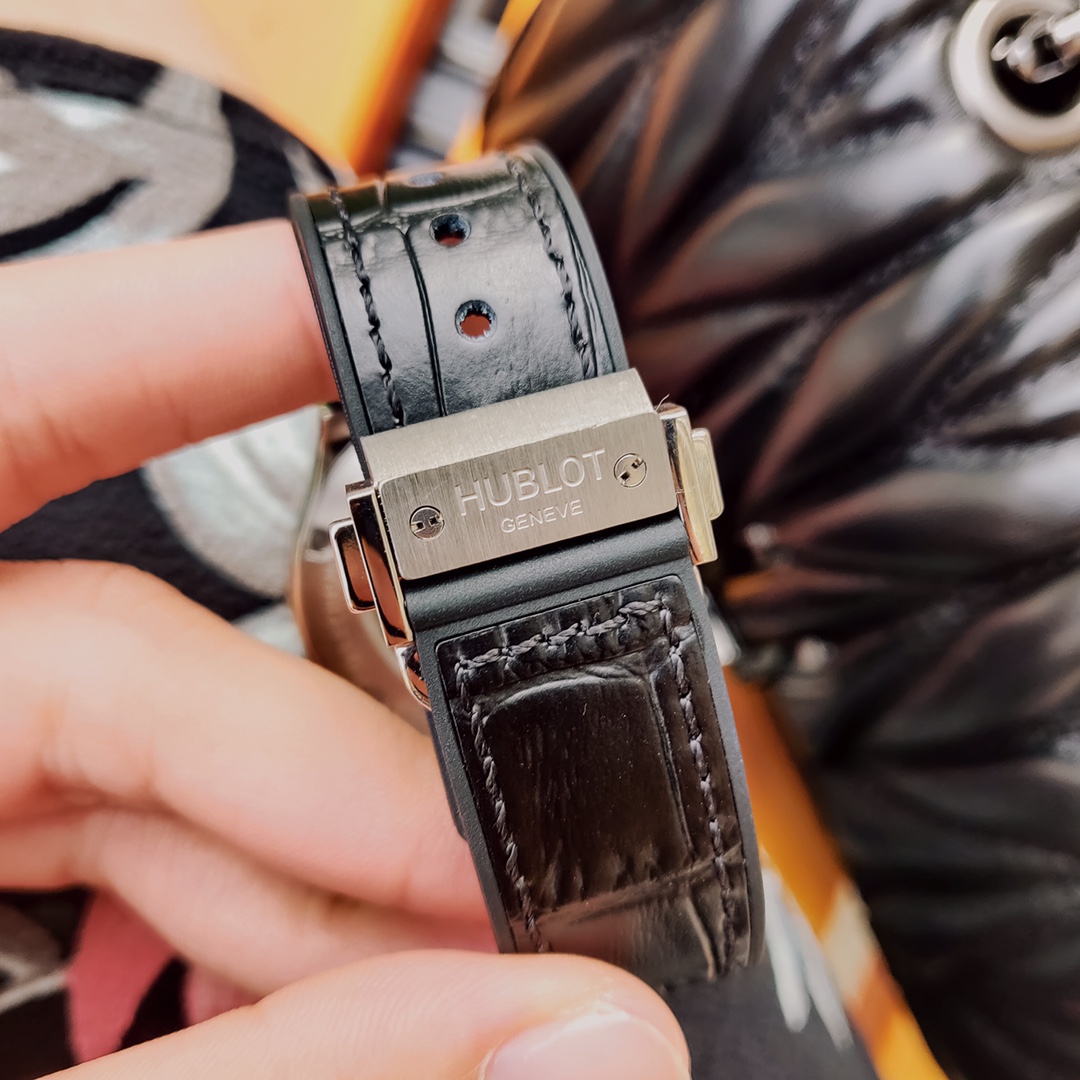 这款手表是AAAAA 1:1 质量 (非常棒). 使用了和原版一模一样的材料. 商标部分也保持了和Hublot一样. 图片拍摄是实物手表拍摄, 您所收到的实物保证和我们图片一模一样.