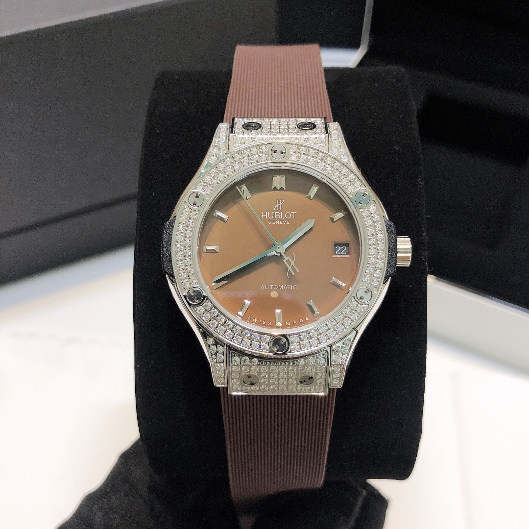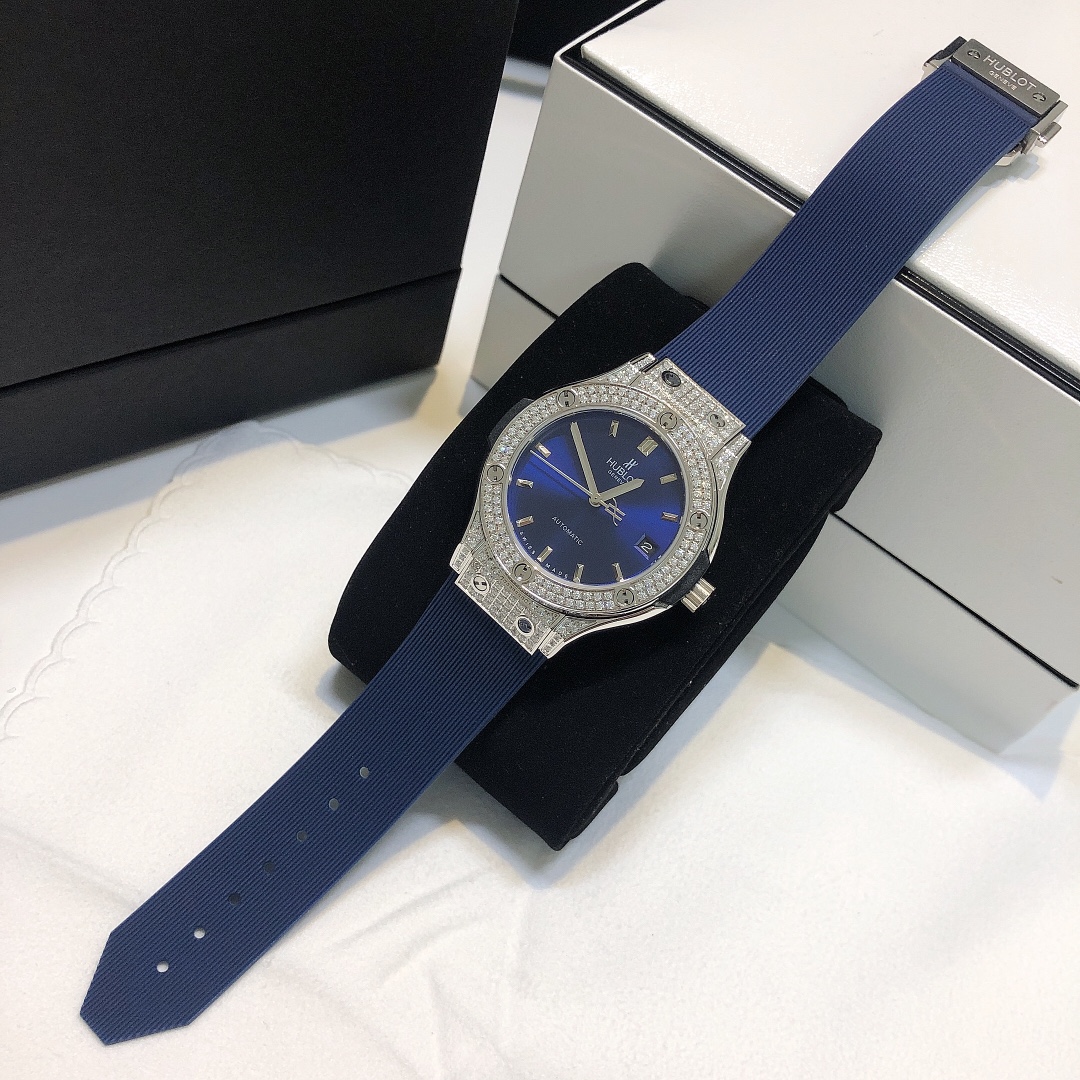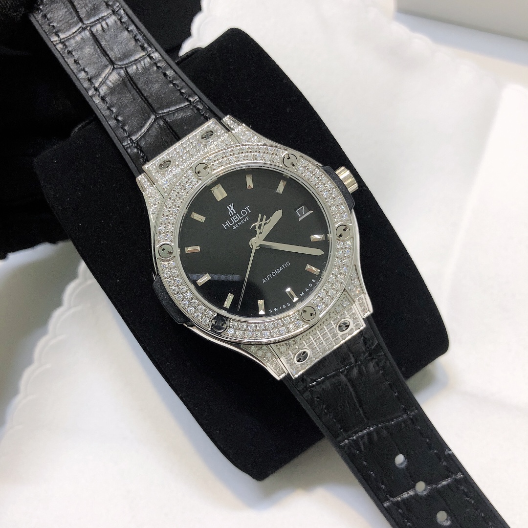 这款手表是AAAAA 1:1 质量 (非常棒). 使用了和原版一模一样的材料. 商标部分也保持了和Hublot一样. 图片拍摄是实物手表拍摄, 您所收到的实物保证和我们图片一模一样.