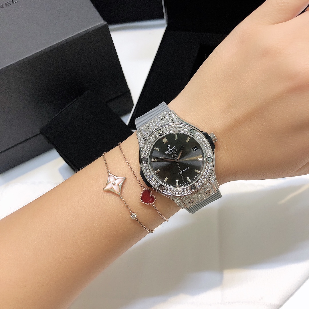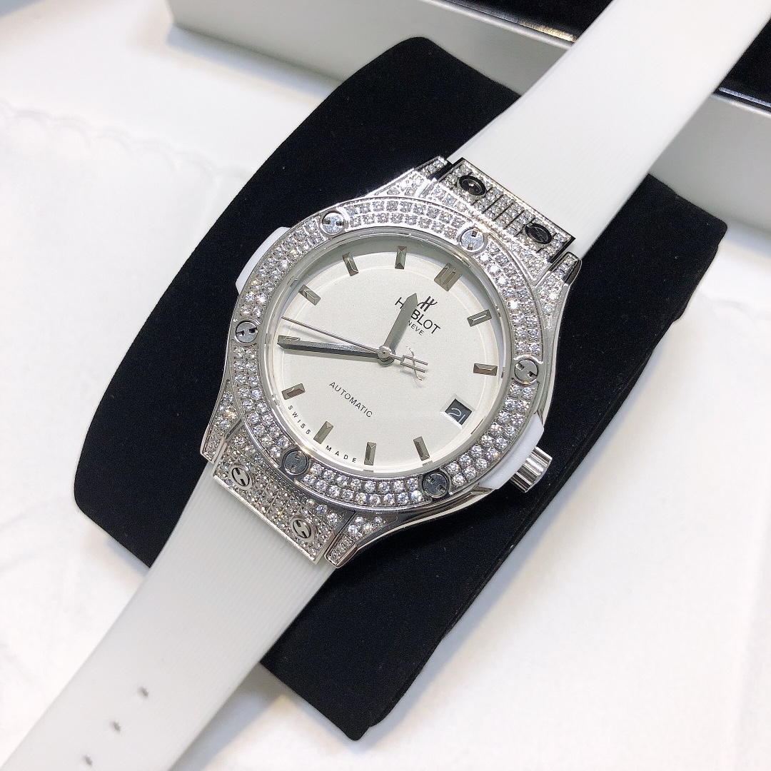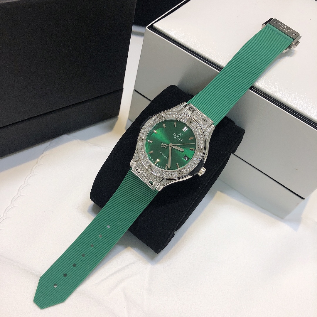 这款手表是AAAAA 1:1 质量 (非常棒). 使用了和原版一模一样的材料. 商标部分也保持了和Hublot一样. 图片拍摄是实物手表拍摄, 您所收到的实物保证和我们图片一模一样.