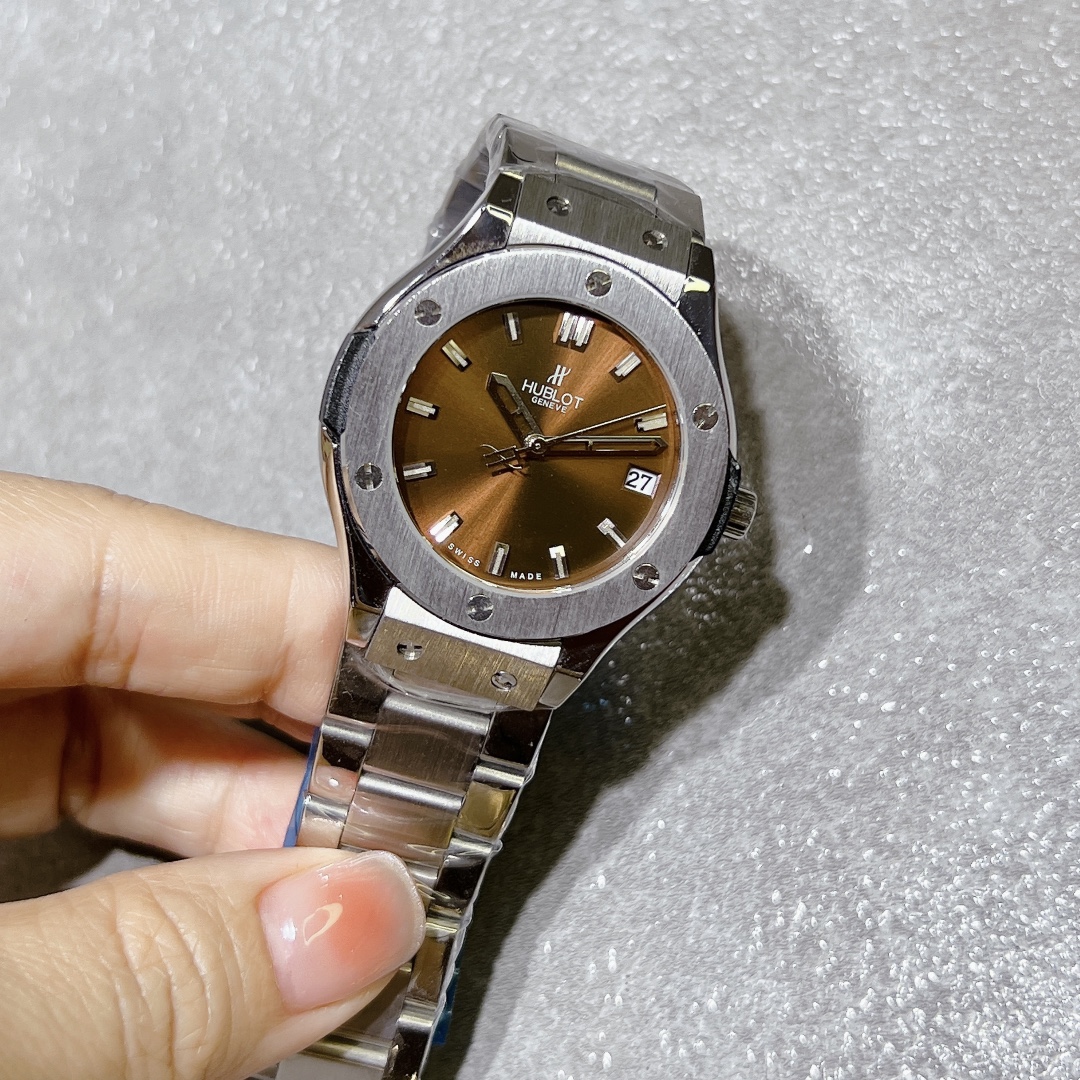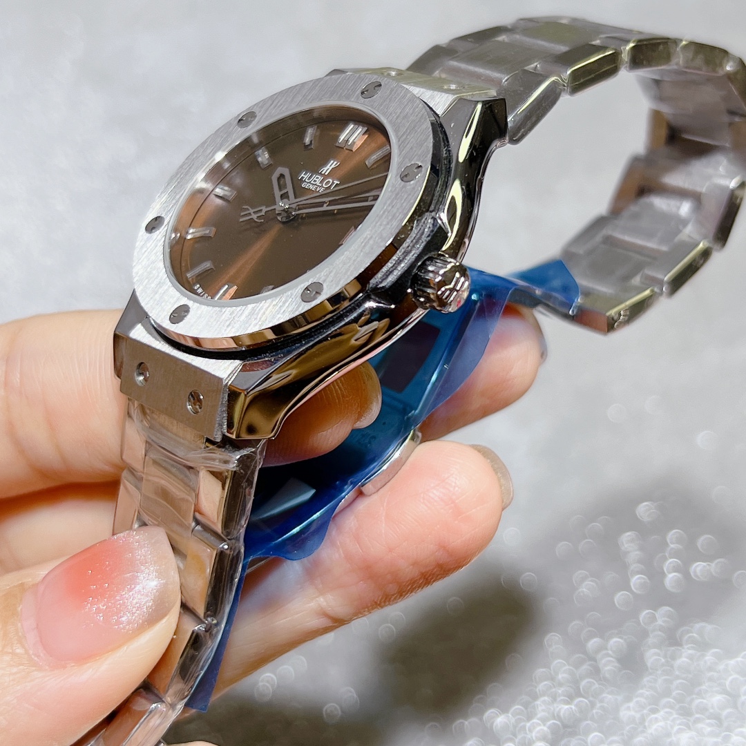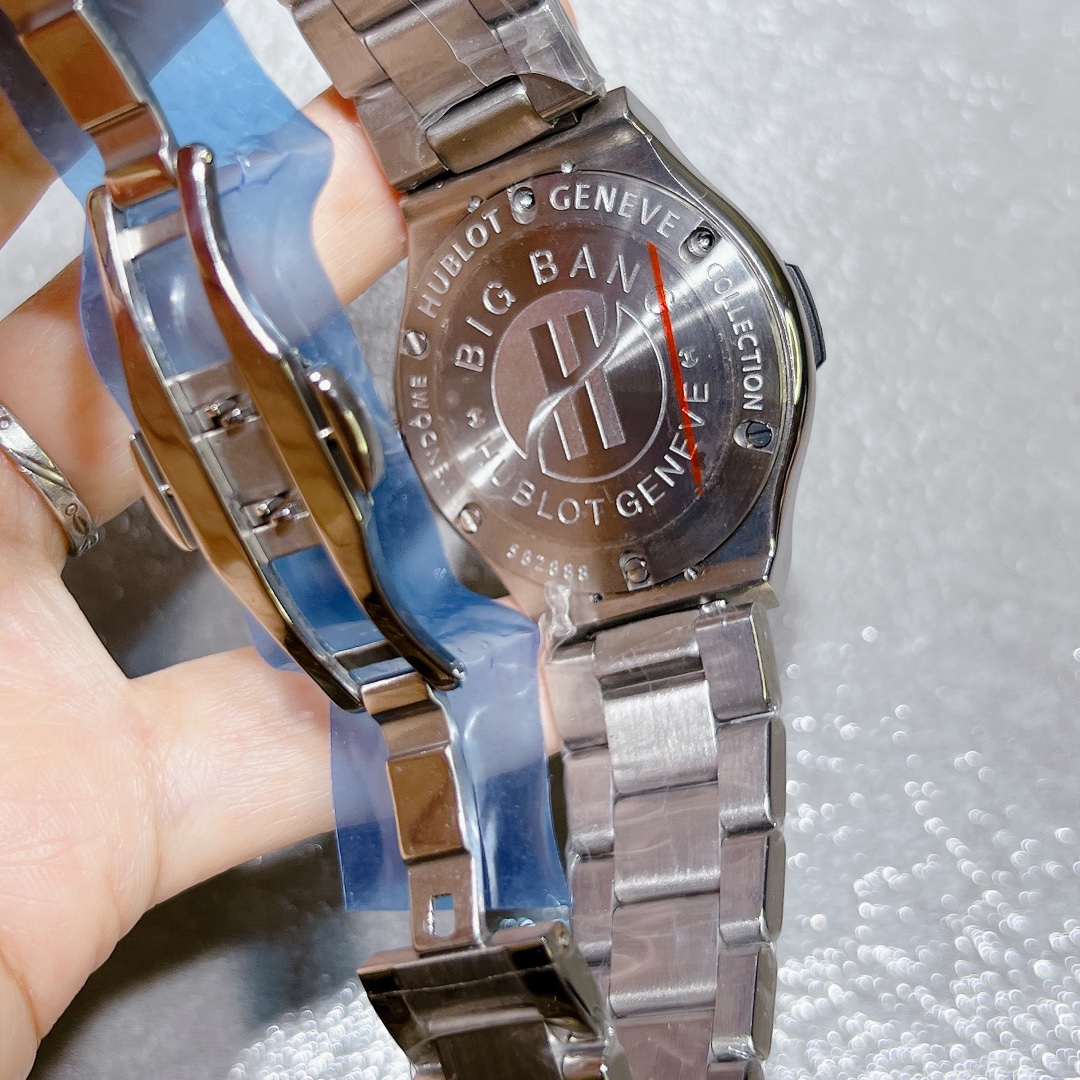 这款手表是AAAAA 1:1 质量 (非常棒). 使用了和原版一模一样的材料. 商标部分也保持了和Hublot一样. 图片拍摄是实物手表拍摄, 您所收到的实物保证和我们图片一模一样.