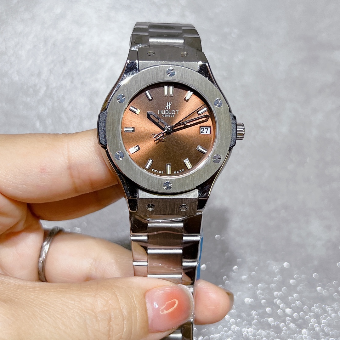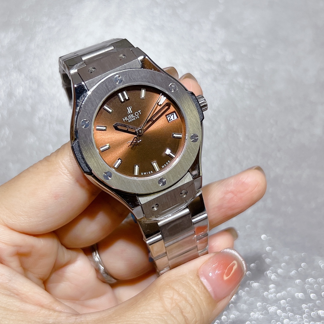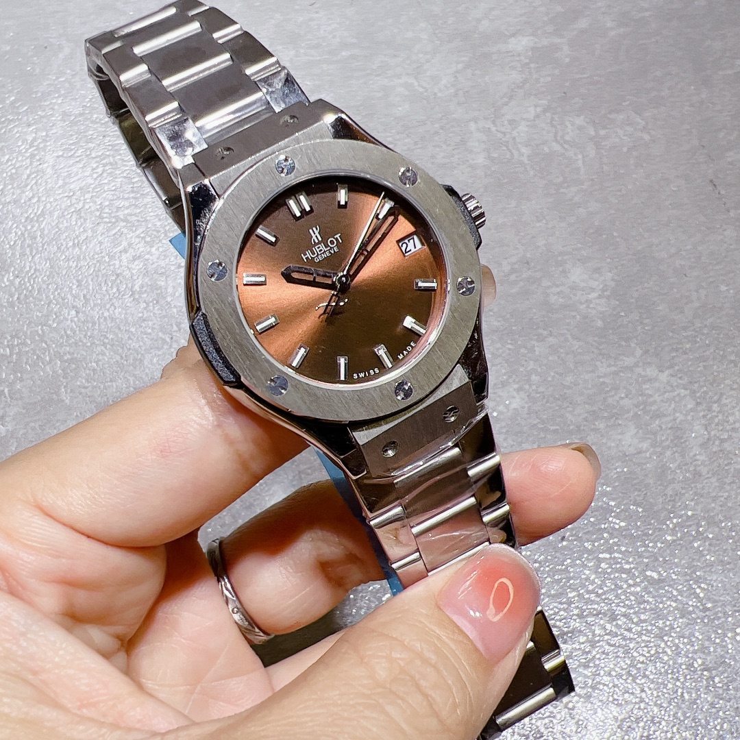 这款手表是AAAAA 1:1 质量 (非常棒). 使用了和原版一模一样的材料. 商标部分也保持了和Hublot一样. 图片拍摄是实物手表拍摄, 您所收到的实物保证和我们图片一模一样.