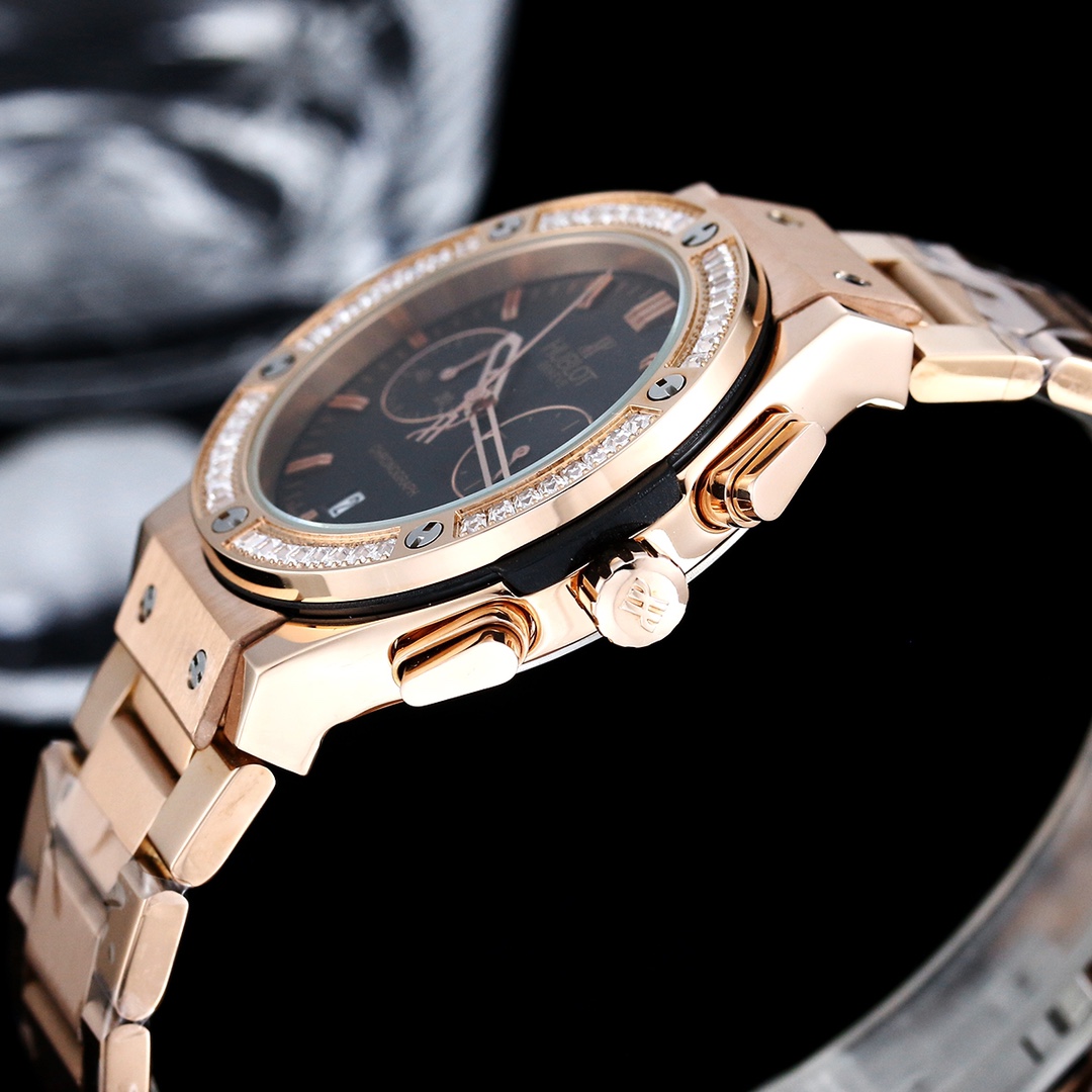 这款手表是AAAAA 1:1 质量 (非常棒). 使用了和原版一模一样的材料. 商标部分也保持了和Hublot一样. 图片拍摄是实物手表拍摄, 您所收到的实物保证和我们图片一模一样.