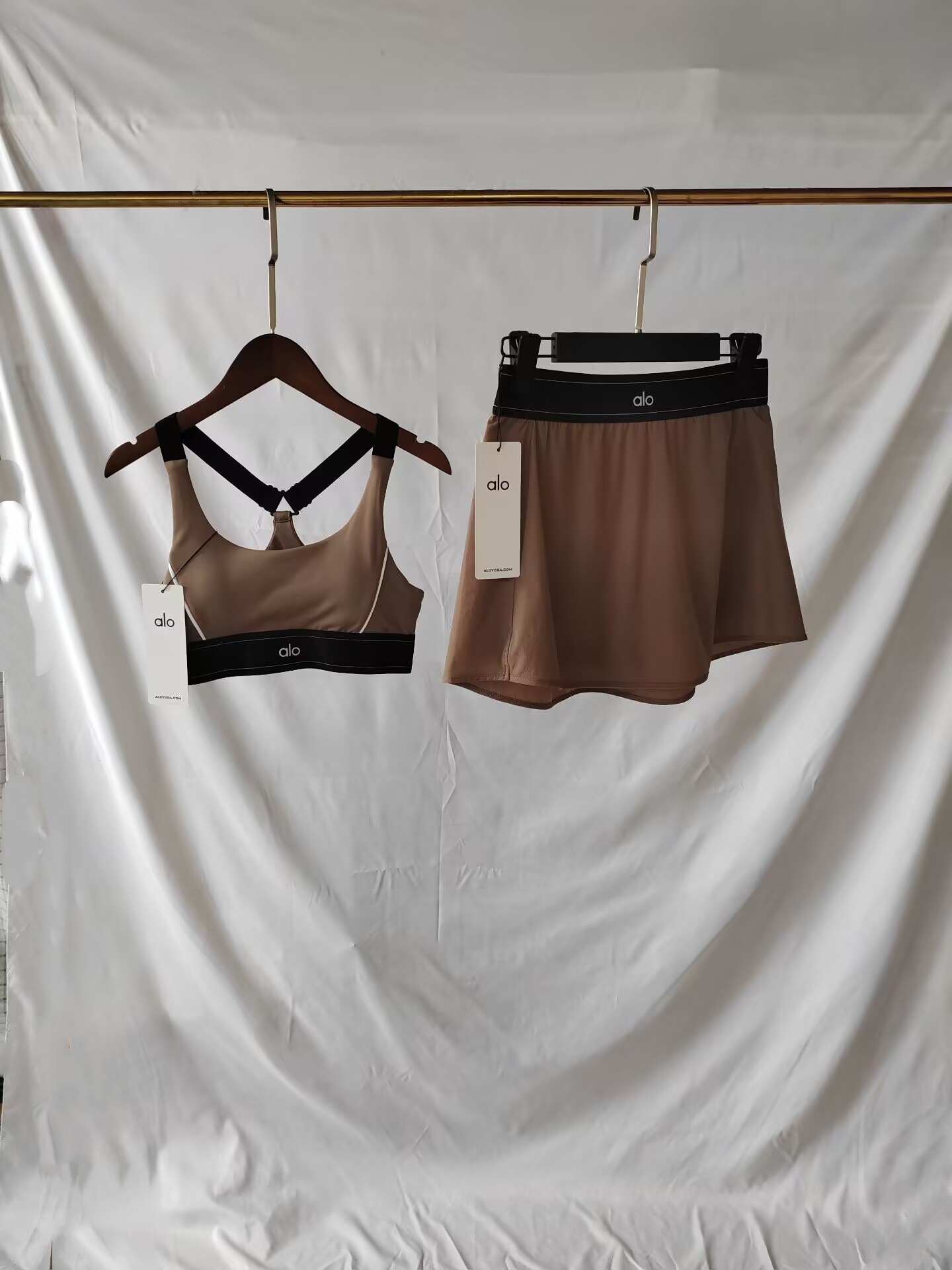 这款衣服是AAAAA 1:1 质量 (非常棒). 使用了和原版一模一样的材料. 商标部分也保持了和Alo Yoga一样. 图片拍摄是实物衣服拍摄, 您所收到的实物保证和我们图片一模一样.