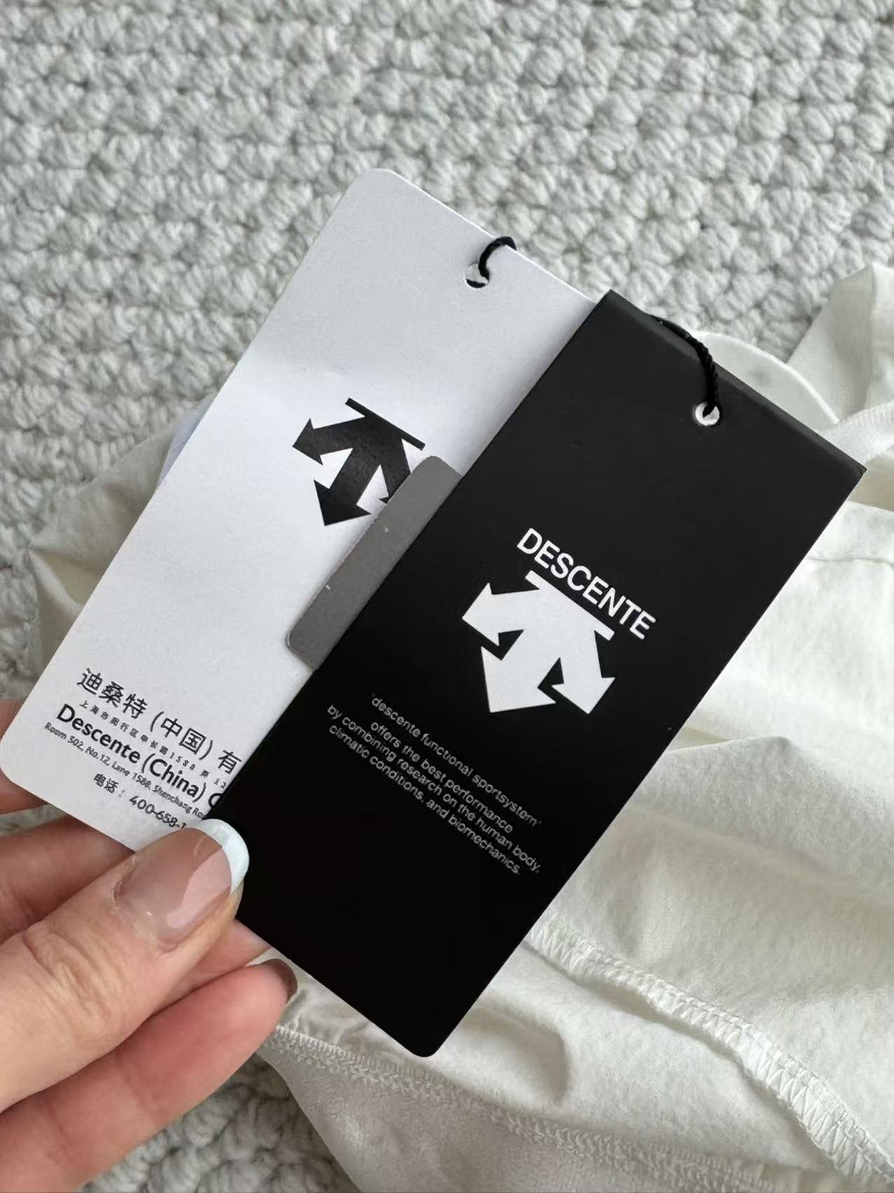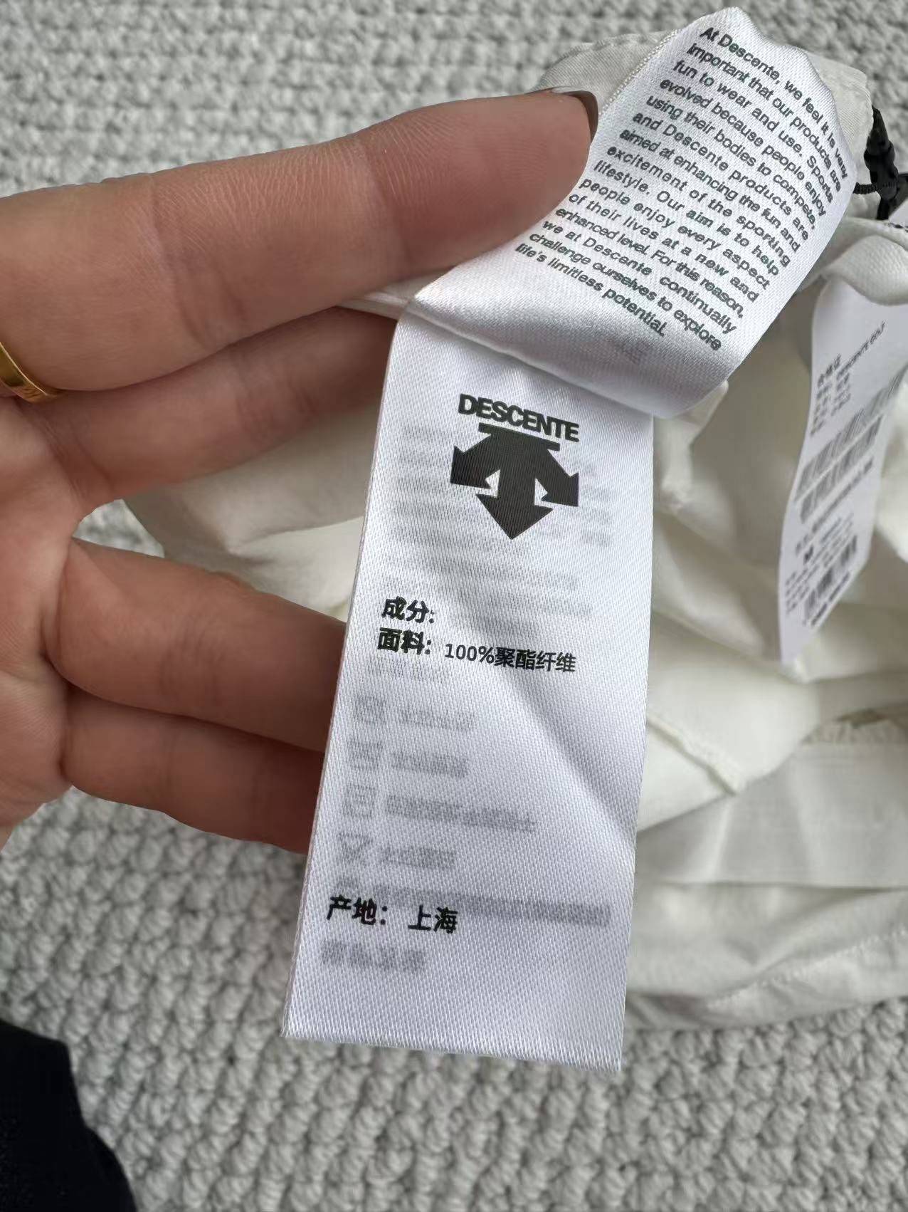 这款衣服是AAAAA 1:1 质量 (非常棒). 使用了和原版一模一样的材料. 商标部分也保持了和Descente一样. 图片拍摄是实物衣服拍摄, 您所收到的实物保证和我们图片一模一样.