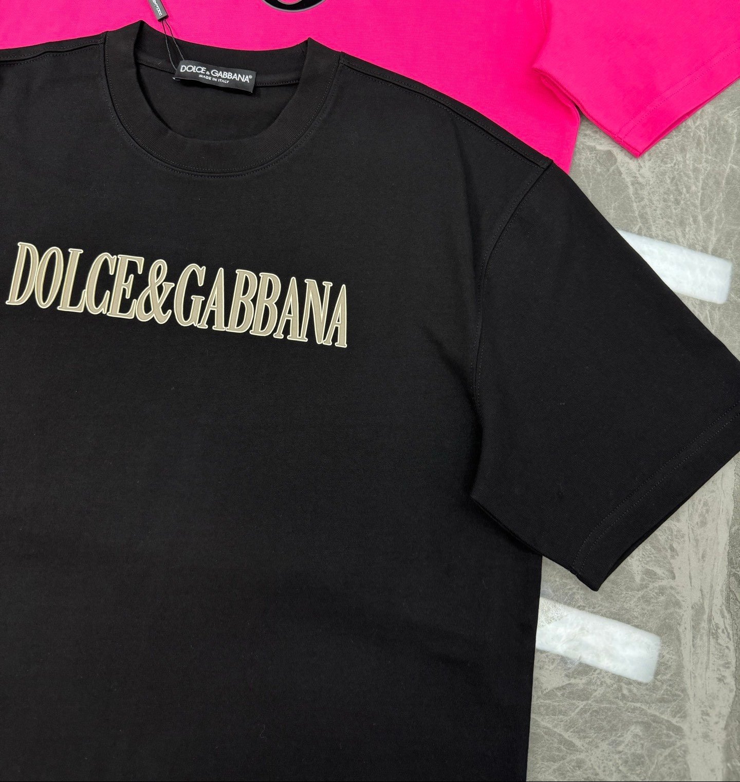 这款衣服是AAAAA 1:1 质量 (非常棒). 使用了和原版一模一样的材料. 商标部分也保持了和杜嘉班纳/Dolce&Gabbana一样. 图片拍摄是实物衣服拍摄, 您所收到的实物保证和我们图片一模一样.