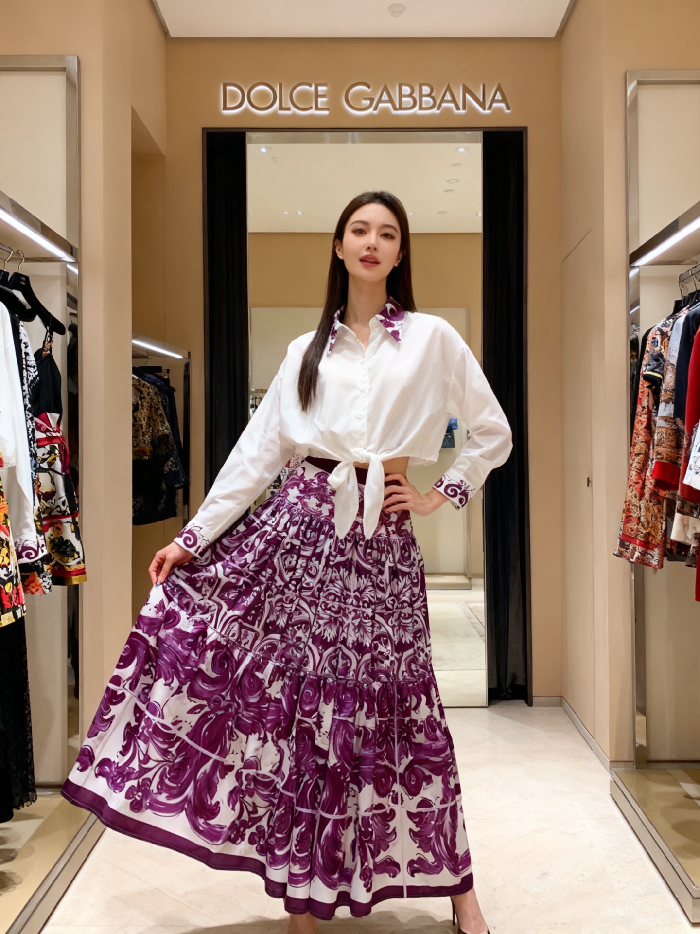 这款衣服是AAAAA 1:1 质量 (非常棒). 使用了和原版一模一样的材料. 商标部分也保持了和杜嘉班纳/Dolce&Gabbana一样. 图片拍摄是实物衣服拍摄, 您所收到的实物保证和我们图片一模一样.