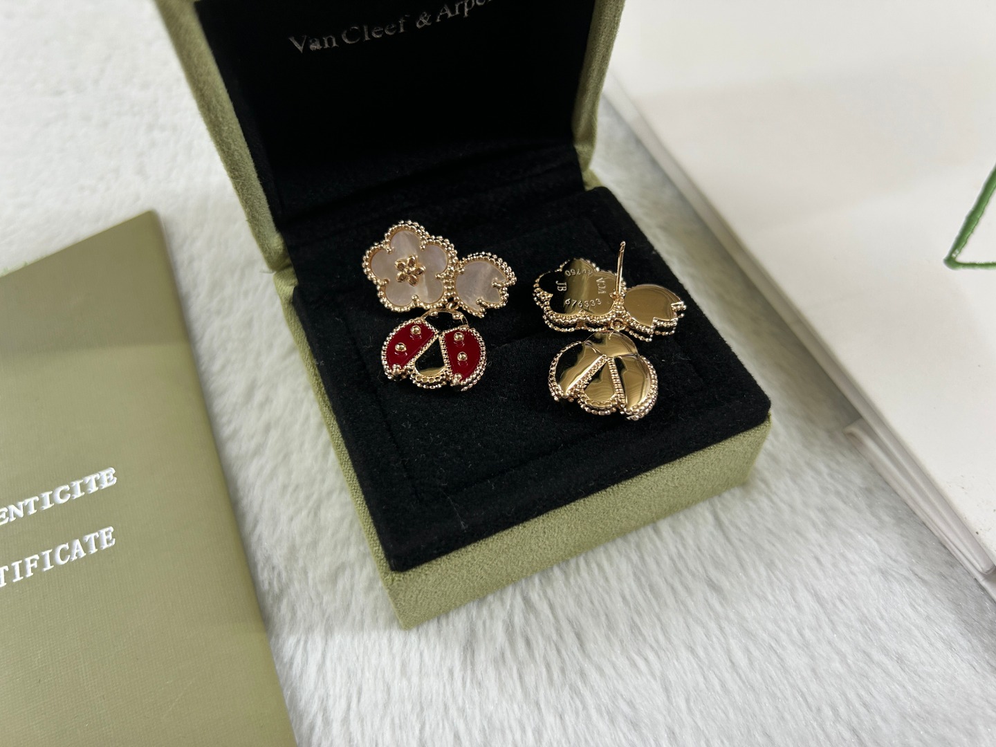 这款首饰是AAAAA 1:1 质量 (非常棒). 使用了和原版一模一样的材料. 商标部分也保持了和梵克雅宝/Van Cleef & Arpels一样. 图片拍摄是实物首饰拍摄, 您所收到的实物保证和我们图片一模一样.