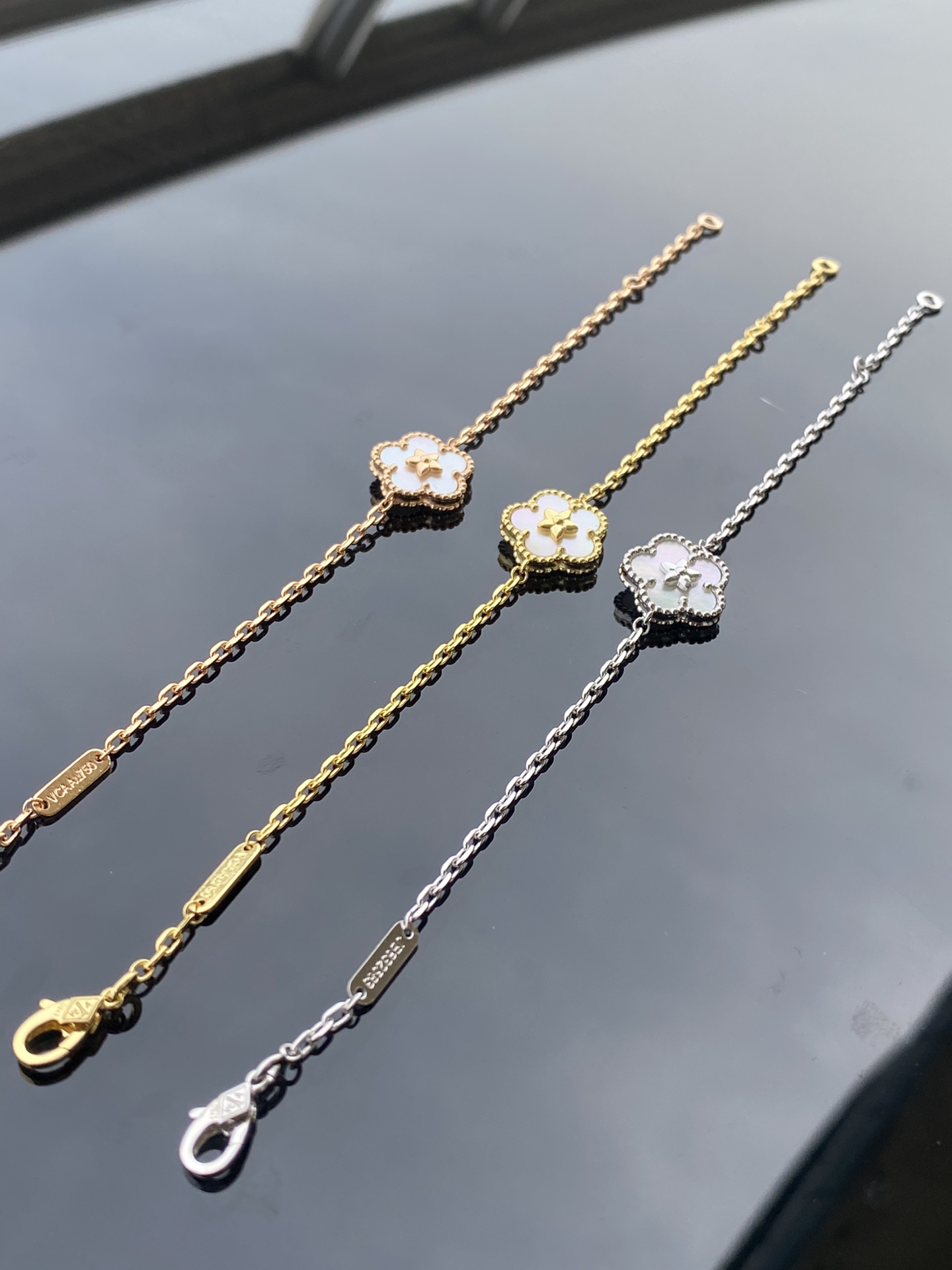这款首饰是AAAAA 1:1 质量 (非常棒). 使用了和原版一模一样的材料. 商标部分也保持了和梵克雅宝/Van Cleef & Arpels一样. 图片拍摄是实物首饰拍摄, 您所收到的实物保证和我们图片一模一样.