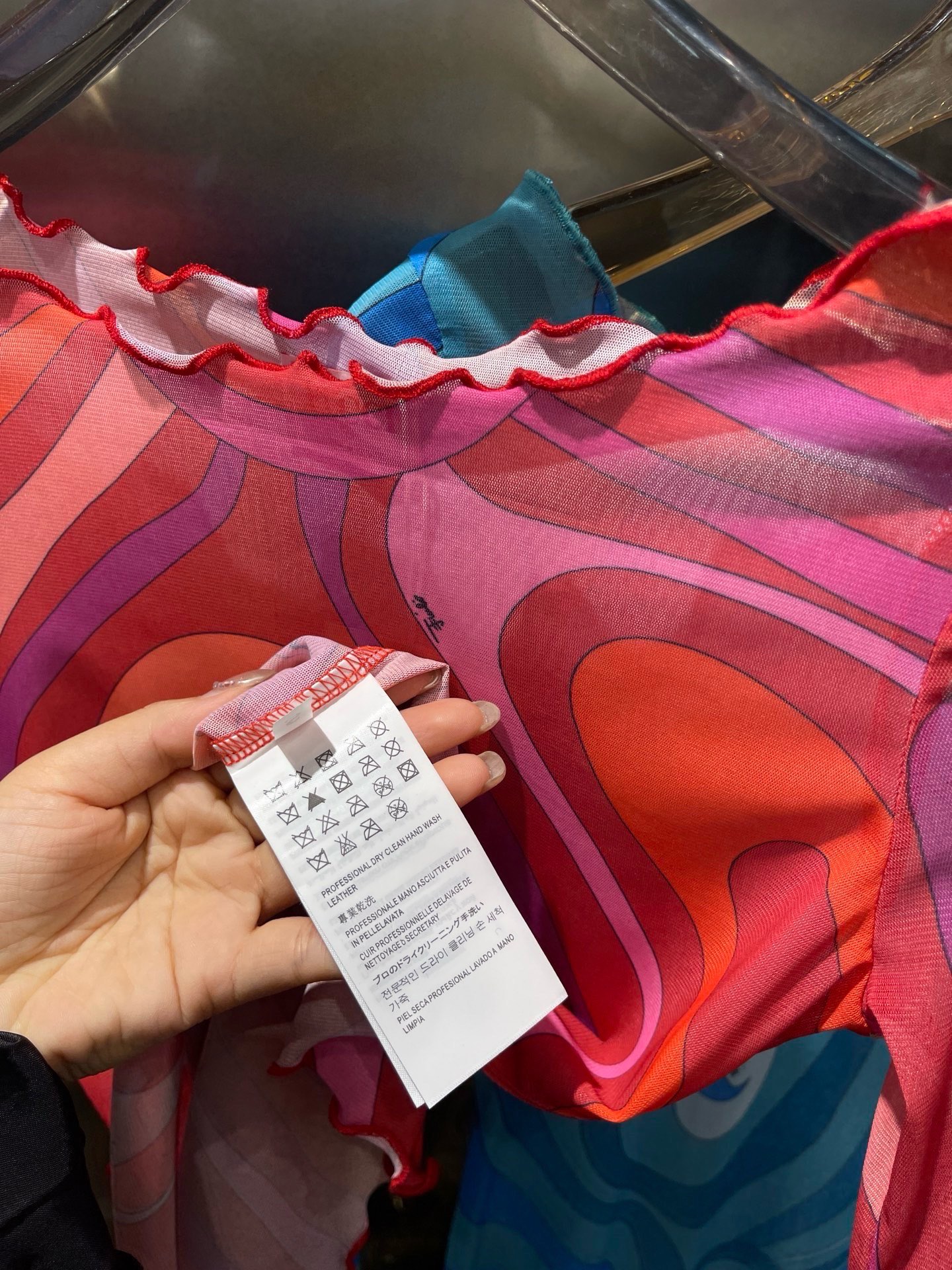 这款衣服是AAAAA 1:1 质量 (非常棒). 使用了和原版一模一样的材料. 商标部分也保持了和Pucci一样. 图片拍摄是实物衣服拍摄, 您所收到的实物保证和我们图片一模一样.
