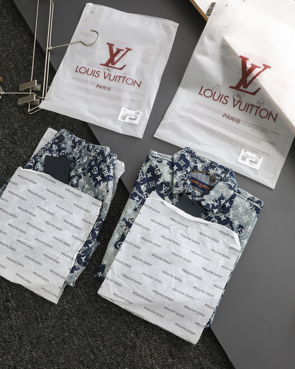 这款衣服是AAAAA 1:1 质量 (非常棒). 使用了和原版一模一样的材料. 商标部分也保持了和路易威登/Louis Vuitton一样. 图片拍摄是实物衣服拍摄, 您所收到的实物保证和我们图片一模一样.