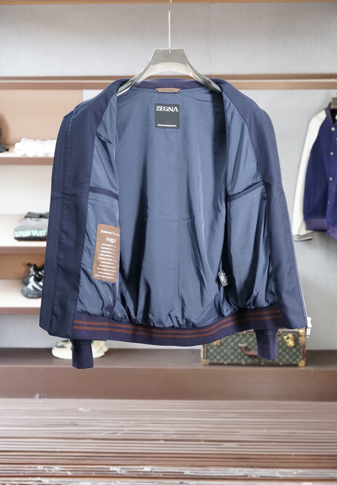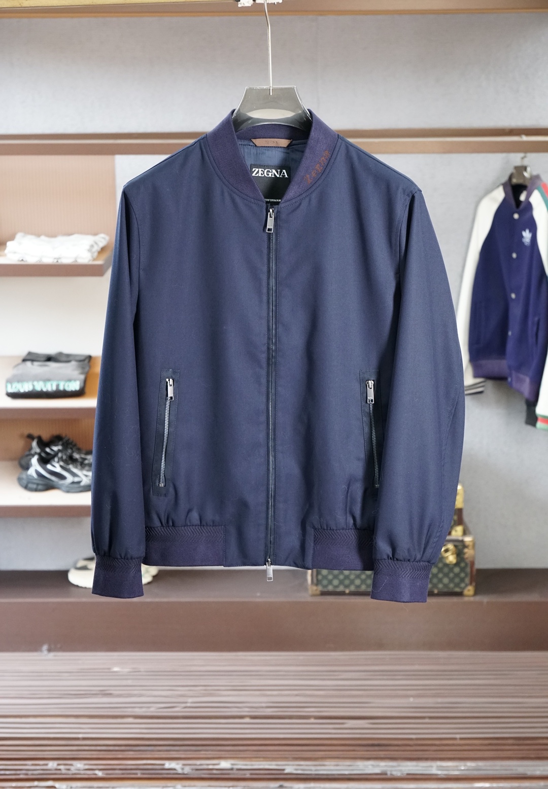 这款衣服是AAAAA 1:1 质量 (非常棒). 使用了和原版一模一样的材料. 商标部分也保持了和杰尼亚/Zegna一样. 图片拍摄是实物衣服拍摄, 您所收到的实物保证和我们图片一模一样.