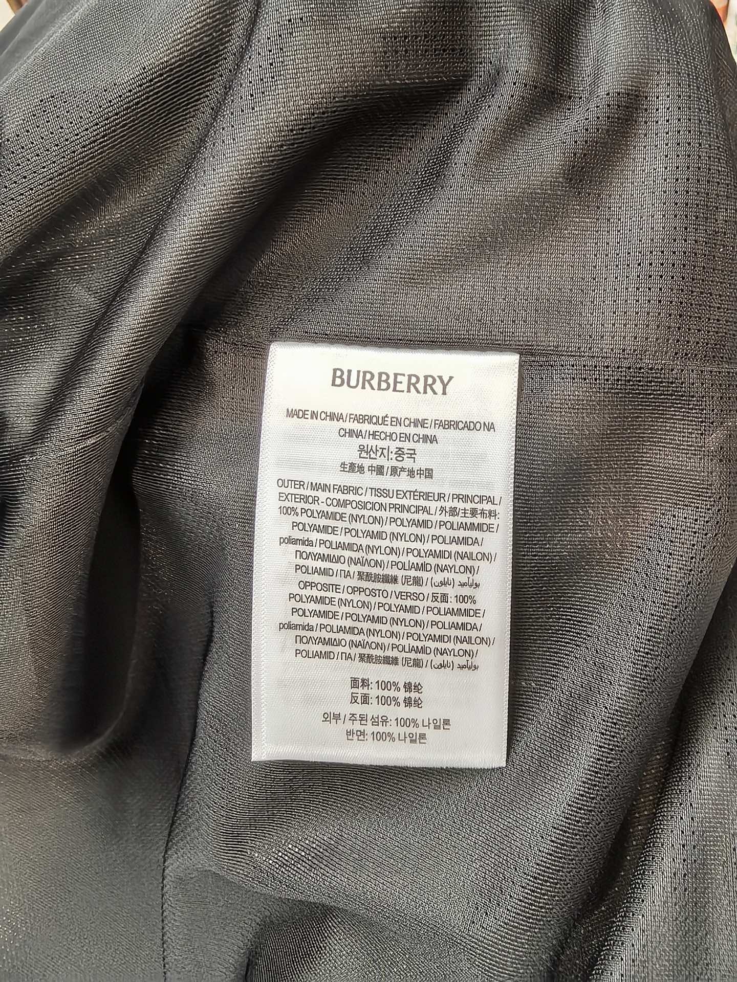 这款衣服是AAAAA 1:1 质量 (非常棒). 使用了和原版一模一样的材料. 商标部分也保持了和巴宝莉/Burberry一样. 图片拍摄是实物衣服拍摄, 您所收到的实物保证和我们图片一模一样.