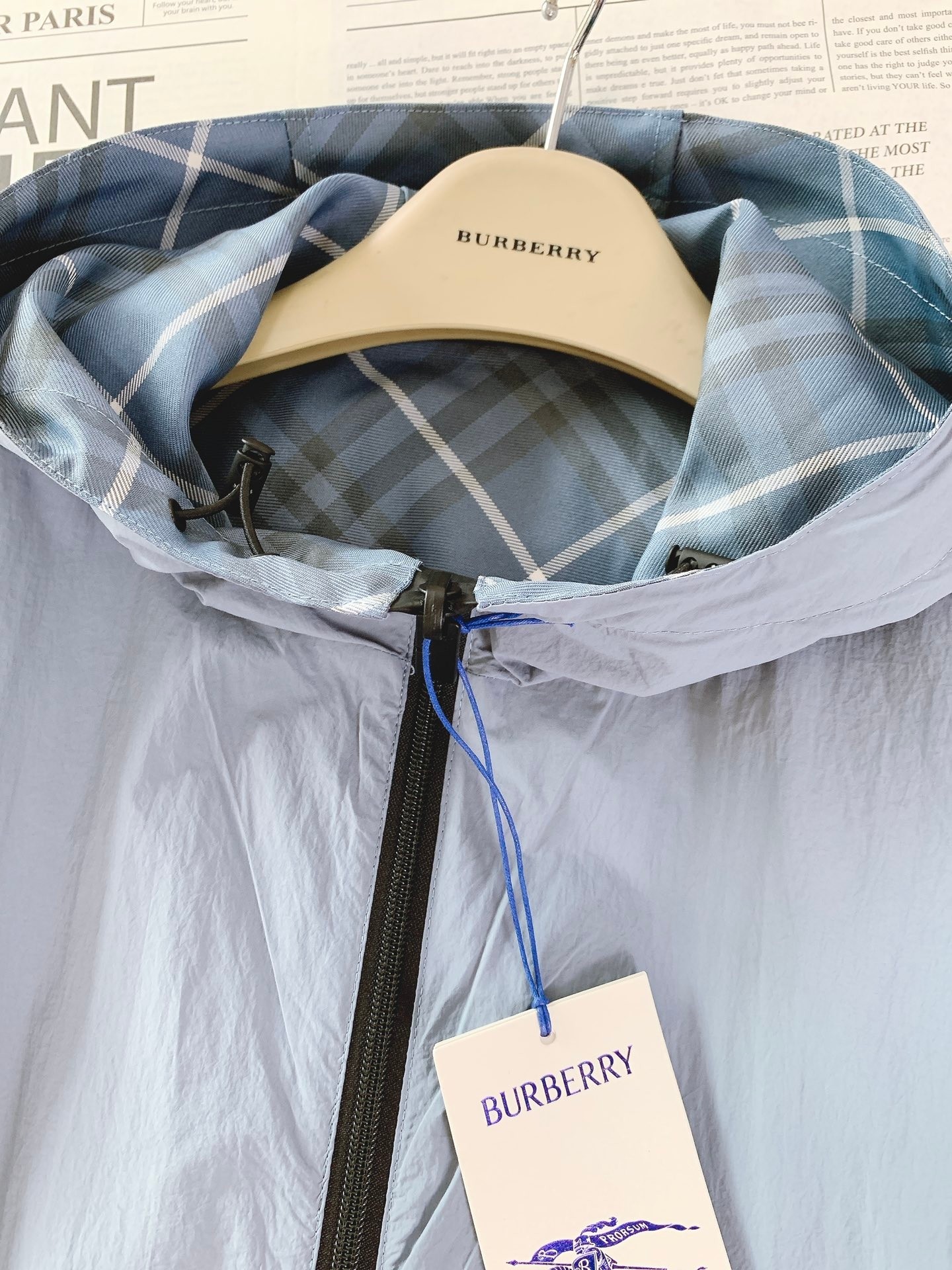 这款衣服是AAAAA 1:1 质量 (非常棒). 使用了和原版一模一样的材料. 商标部分也保持了和巴宝莉/Burberry一样. 图片拍摄是实物衣服拍摄, 您所收到的实物保证和我们图片一模一样.