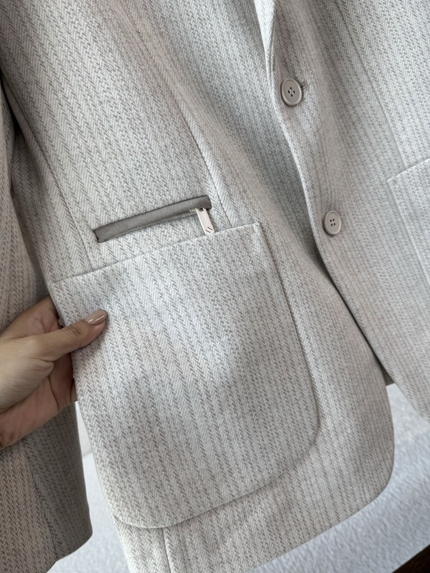 这款衣服是AAAAA 1:1 质量 (非常棒). 使用了和原版一模一样的材料. 商标部分也保持了和杰尼亚/Zegna一样. 图片拍摄是实物衣服拍摄, 您所收到的实物保证和我们图片一模一样.