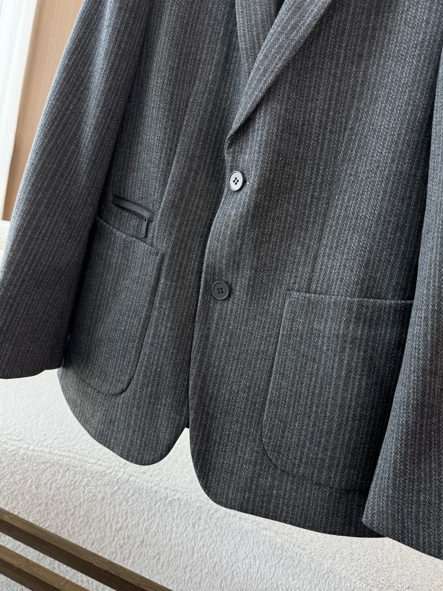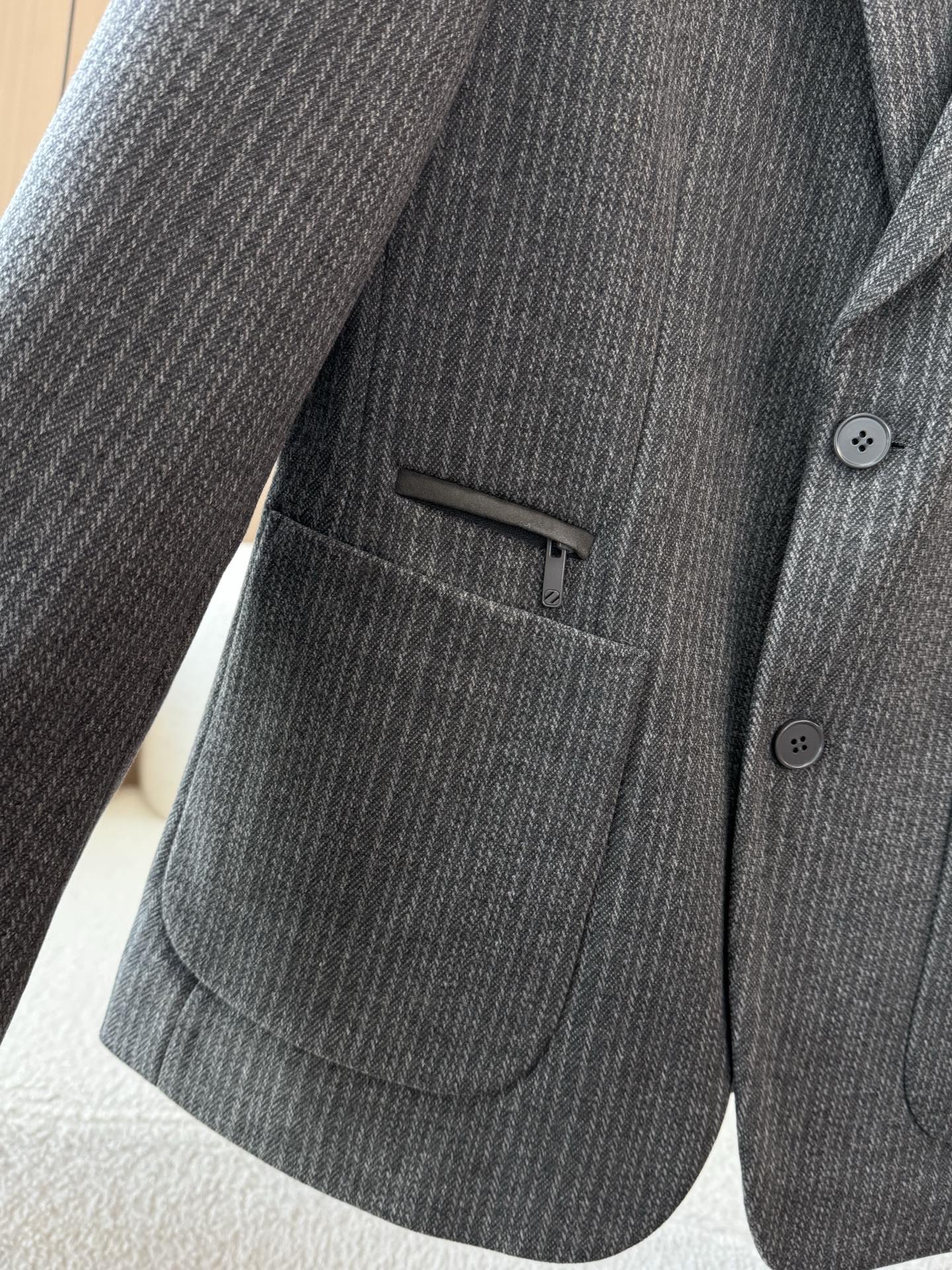 这款衣服是AAAAA 1:1 质量 (非常棒). 使用了和原版一模一样的材料. 商标部分也保持了和杰尼亚/Zegna一样. 图片拍摄是实物衣服拍摄, 您所收到的实物保证和我们图片一模一样.