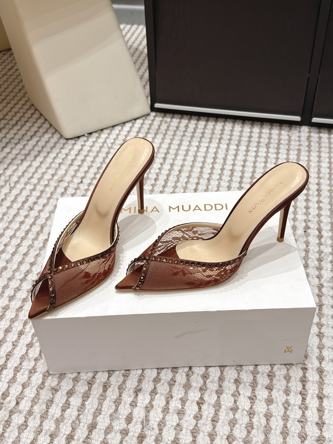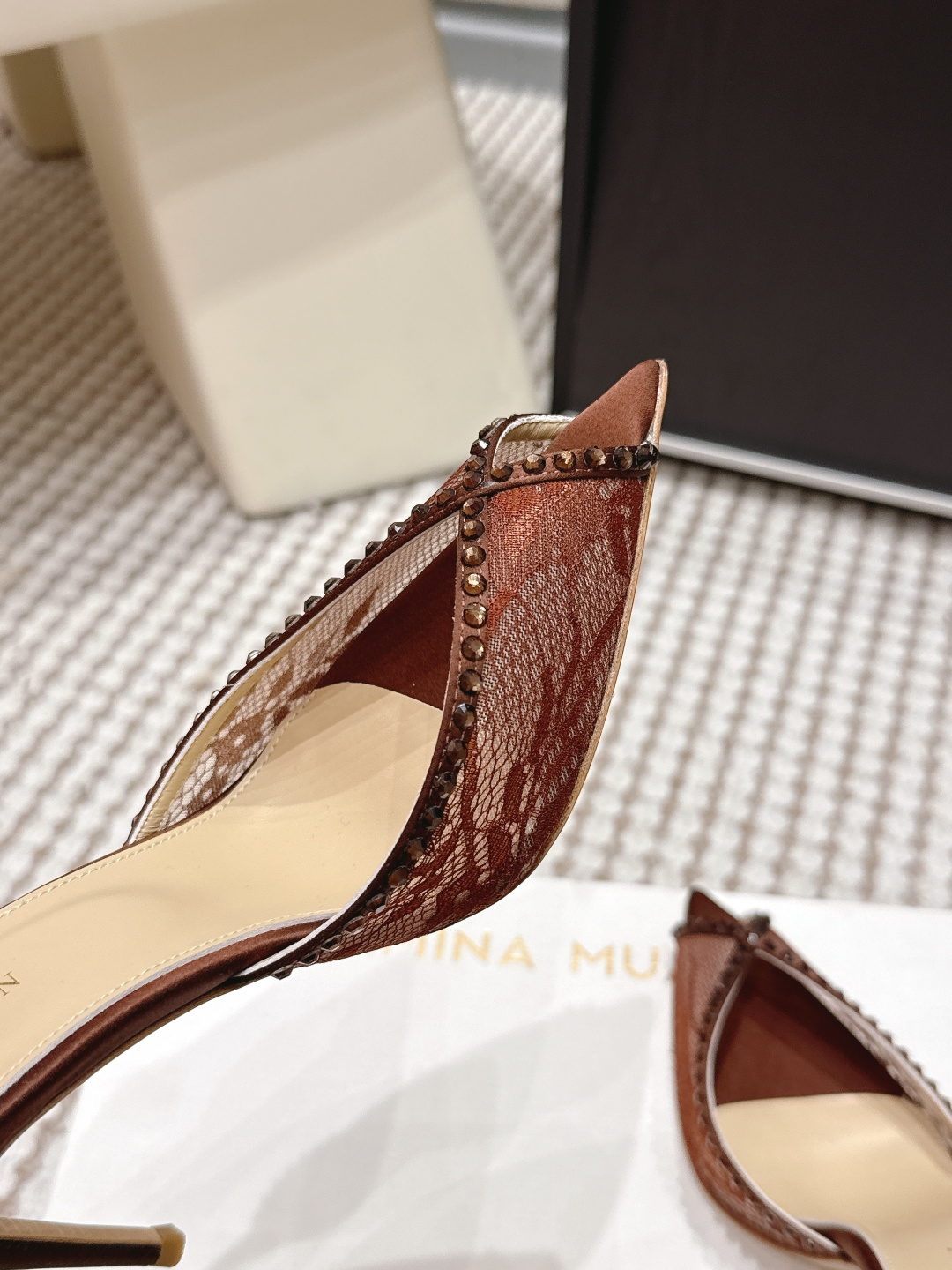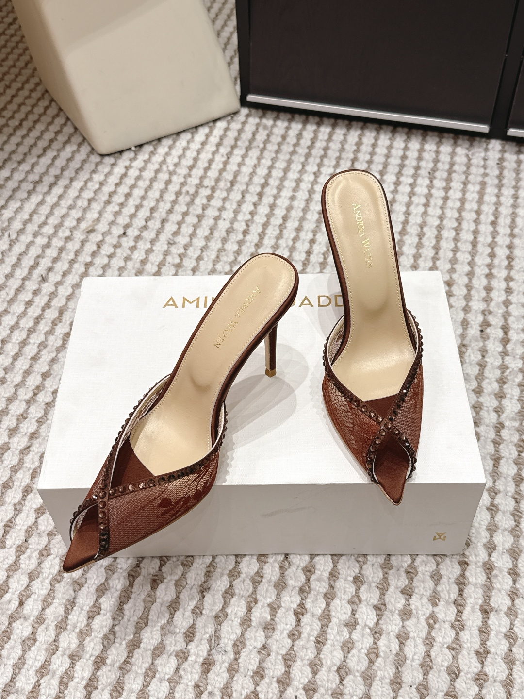 这款鞋子是AAAAA 1:1 质量 (非常棒). 使用了和原版一模一样的材料. 商标部分也保持了和Andrea Wazen一样. 图片拍摄是实物鞋子拍摄, 您所收到的实物保证和我们图片一模一样.