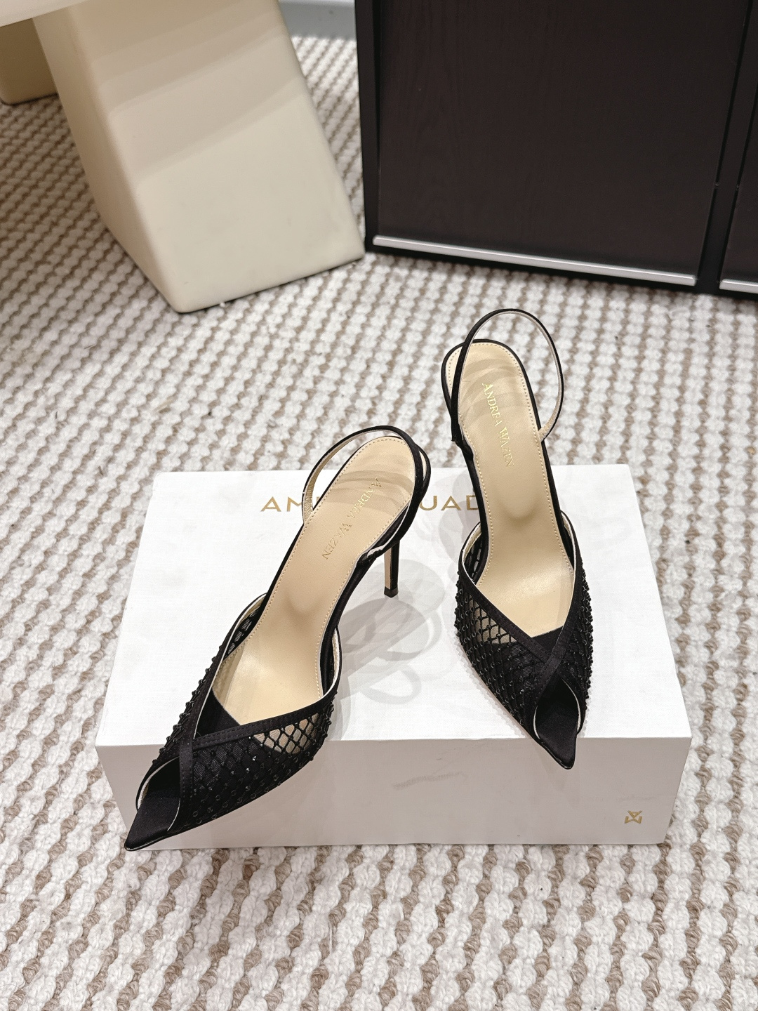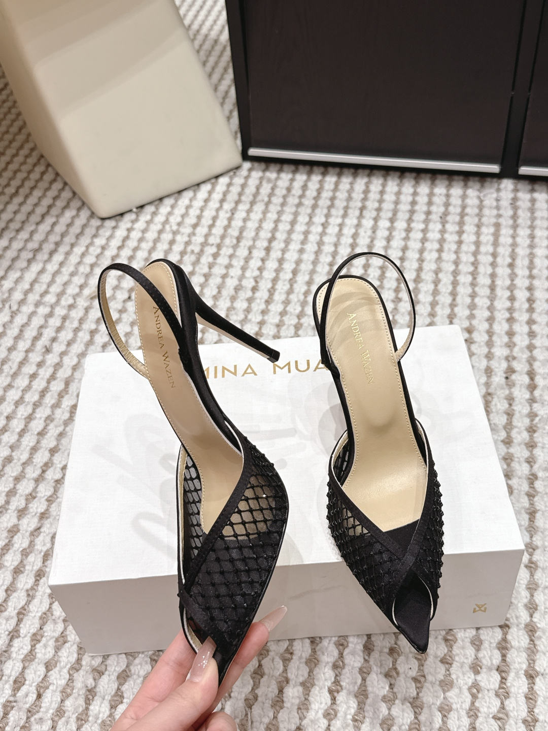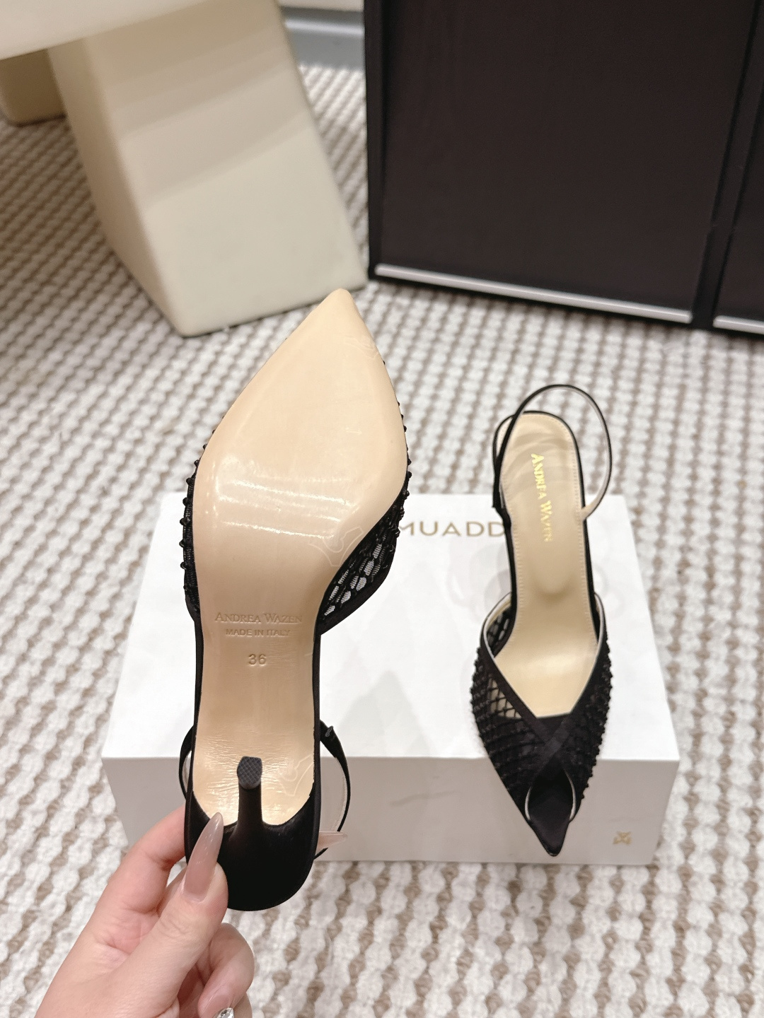 这款鞋子是AAAAA 1:1 质量 (非常棒). 使用了和原版一模一样的材料. 商标部分也保持了和Andrea Wazen一样. 图片拍摄是实物鞋子拍摄, 您所收到的实物保证和我们图片一模一样.