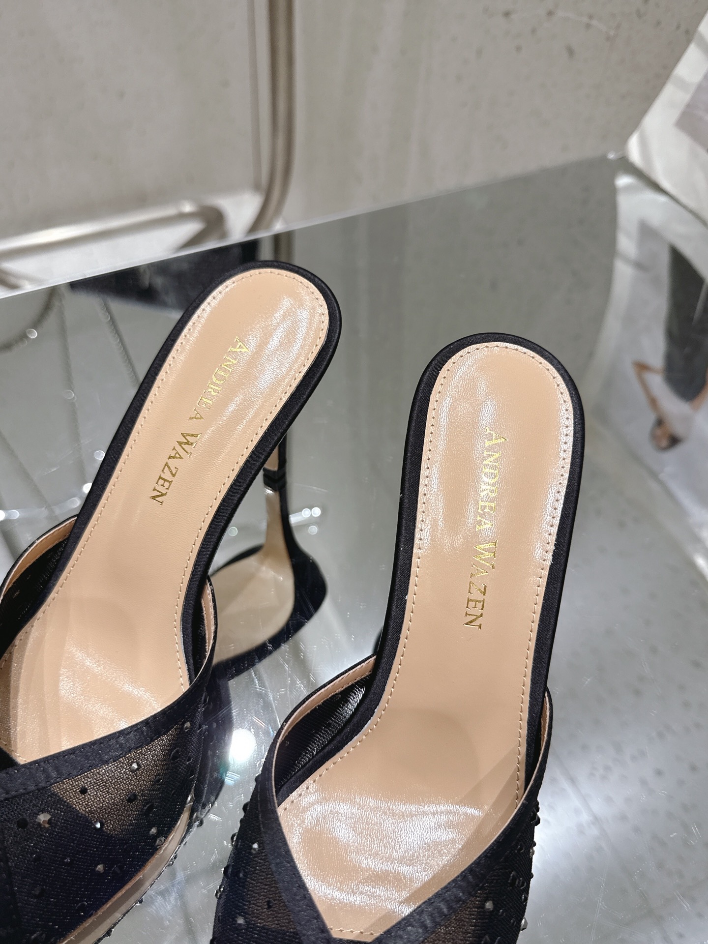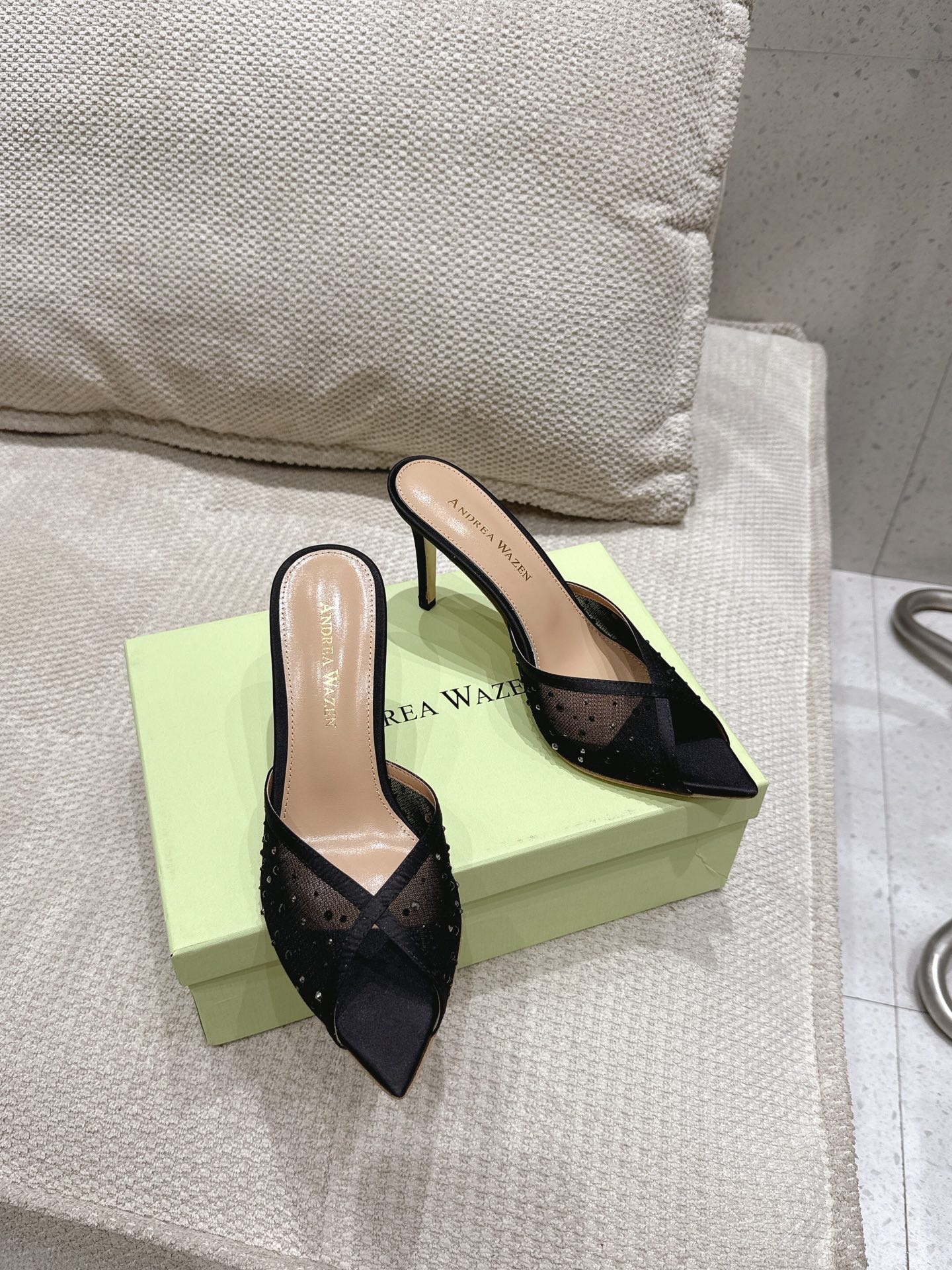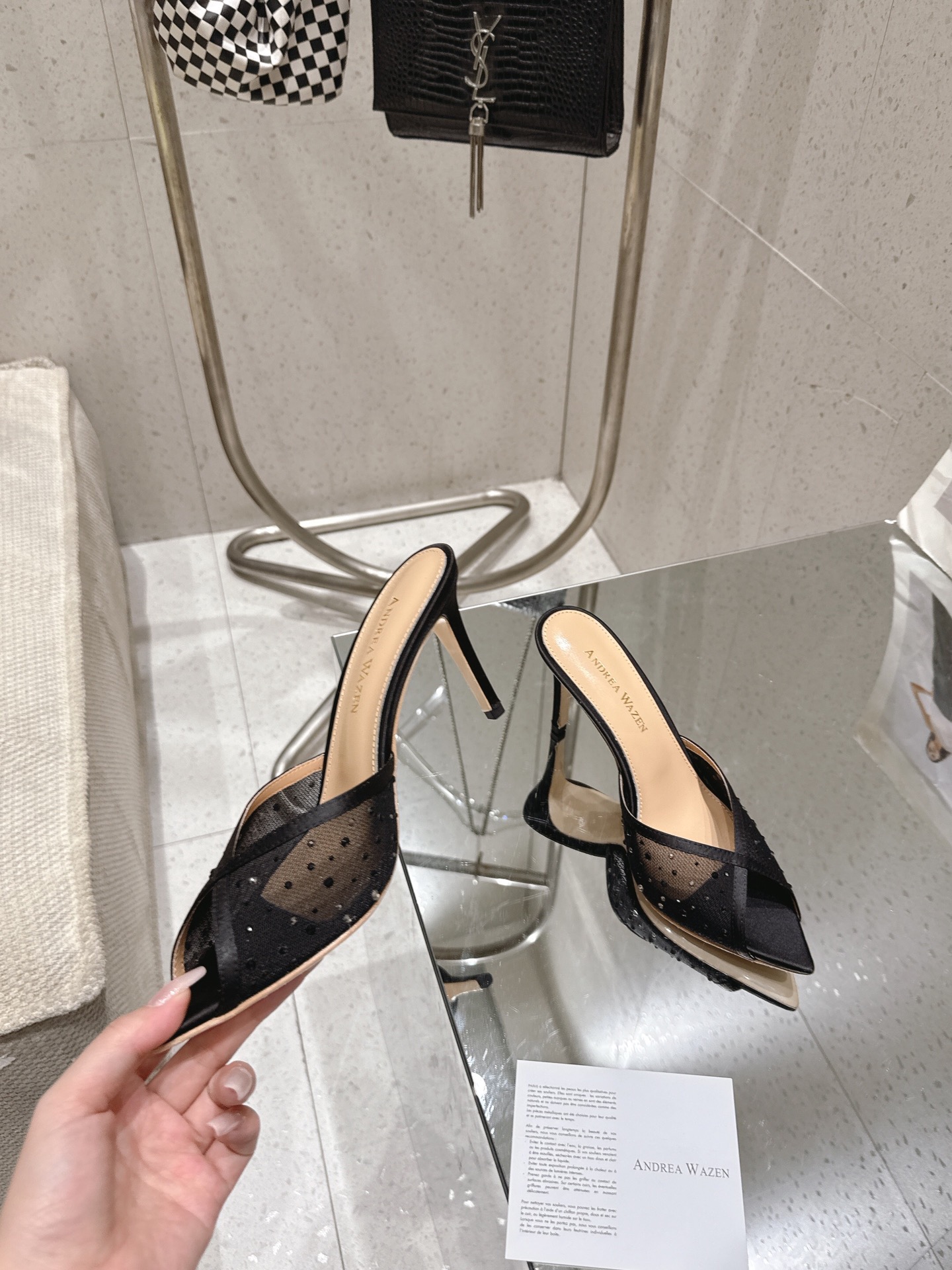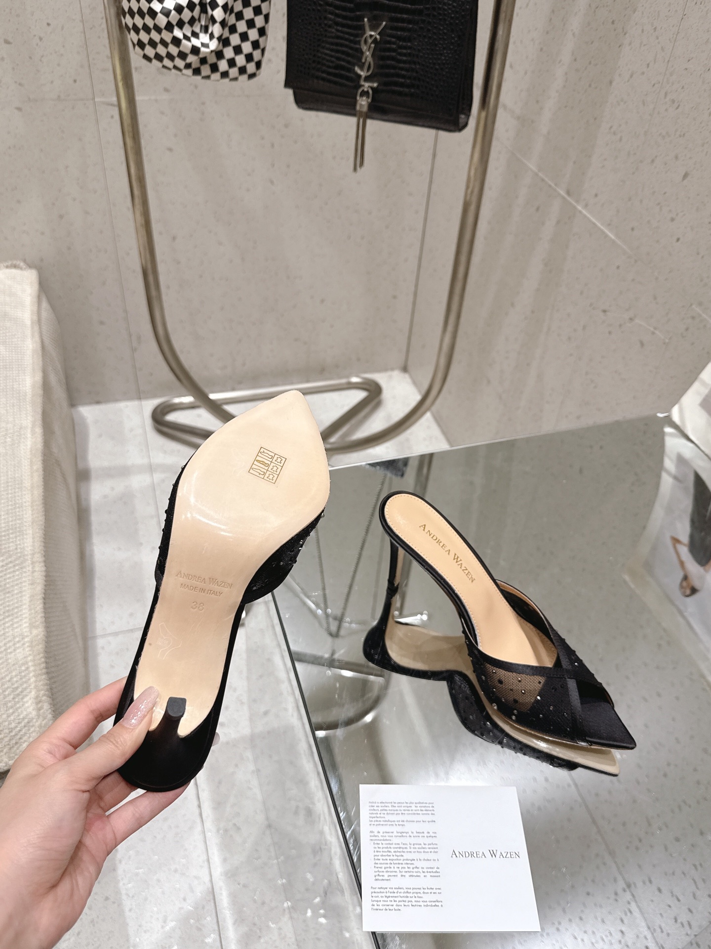 这款鞋子是AAAAA 1:1 质量 (非常棒). 使用了和原版一模一样的材料. 商标部分也保持了和Andrea Wazen一样. 图片拍摄是实物鞋子拍摄, 您所收到的实物保证和我们图片一模一样.