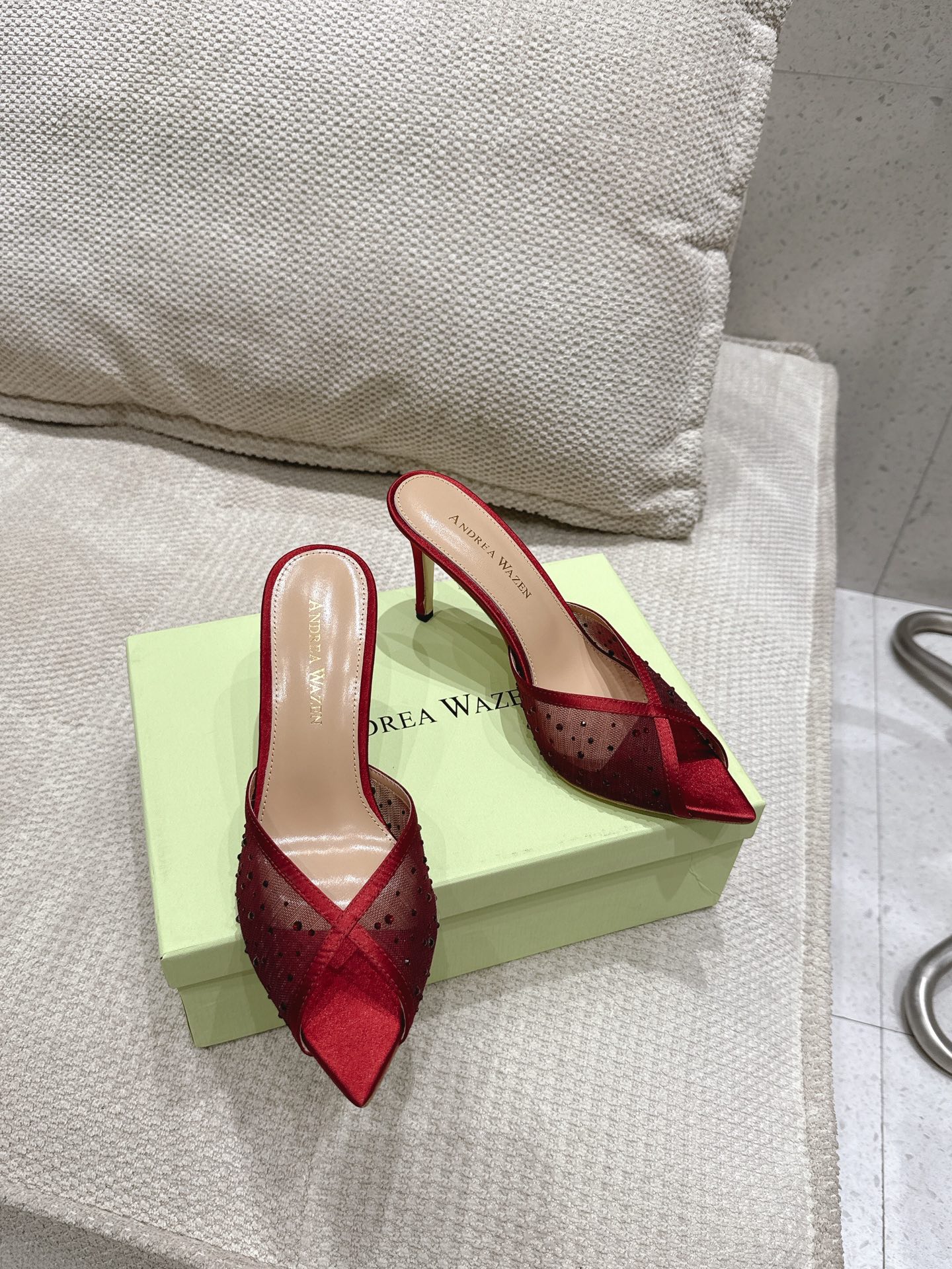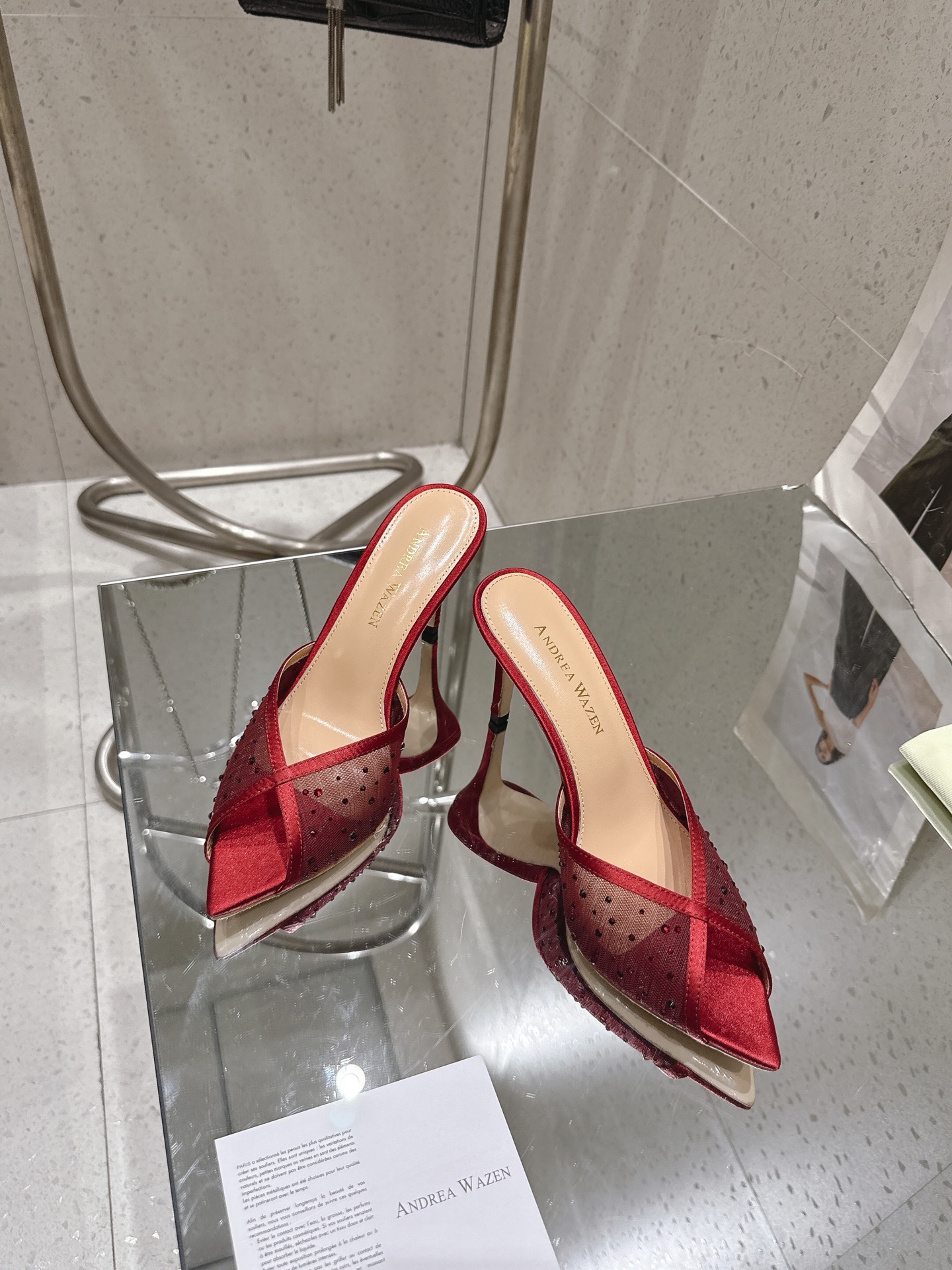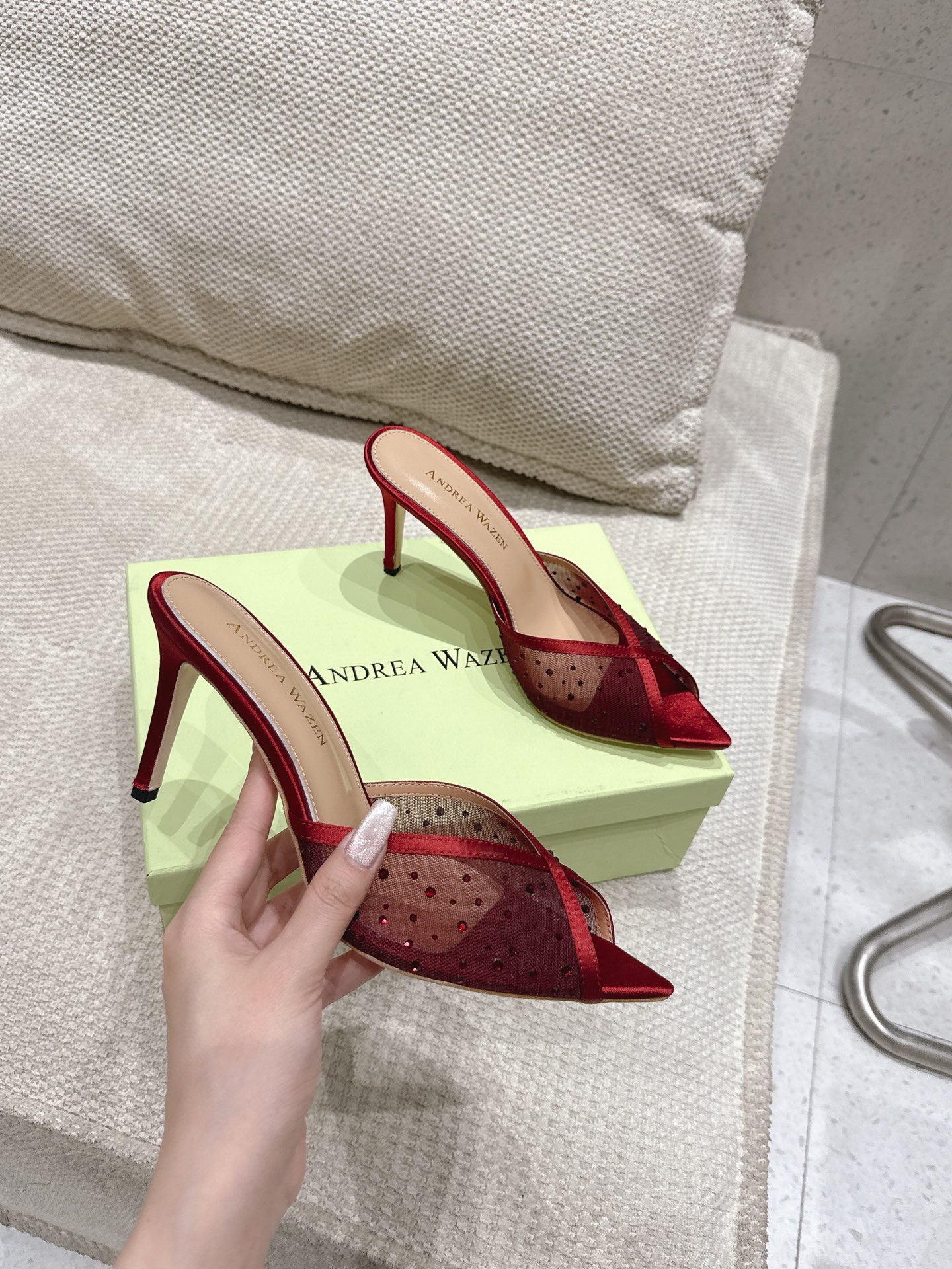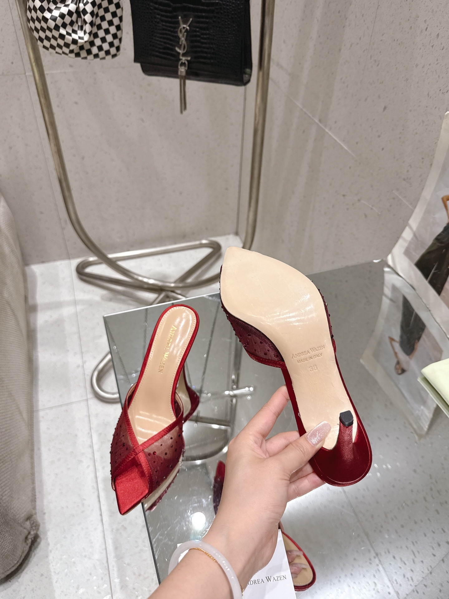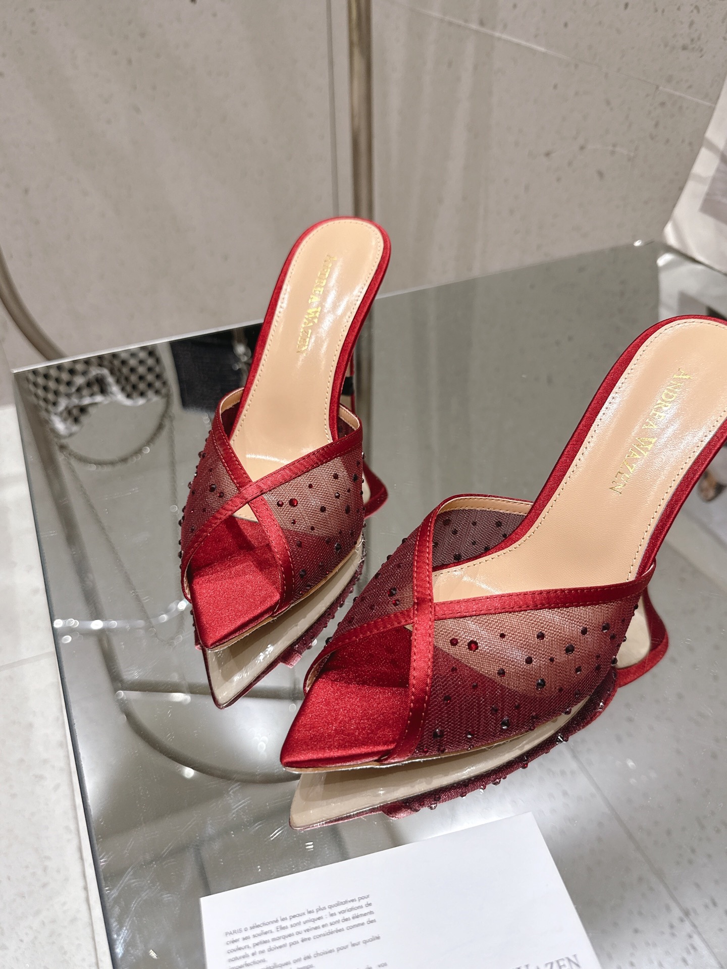 这款鞋子是AAAAA 1:1 质量 (非常棒). 使用了和原版一模一样的材料. 商标部分也保持了和Andrea Wazen一样. 图片拍摄是实物鞋子拍摄, 您所收到的实物保证和我们图片一模一样.