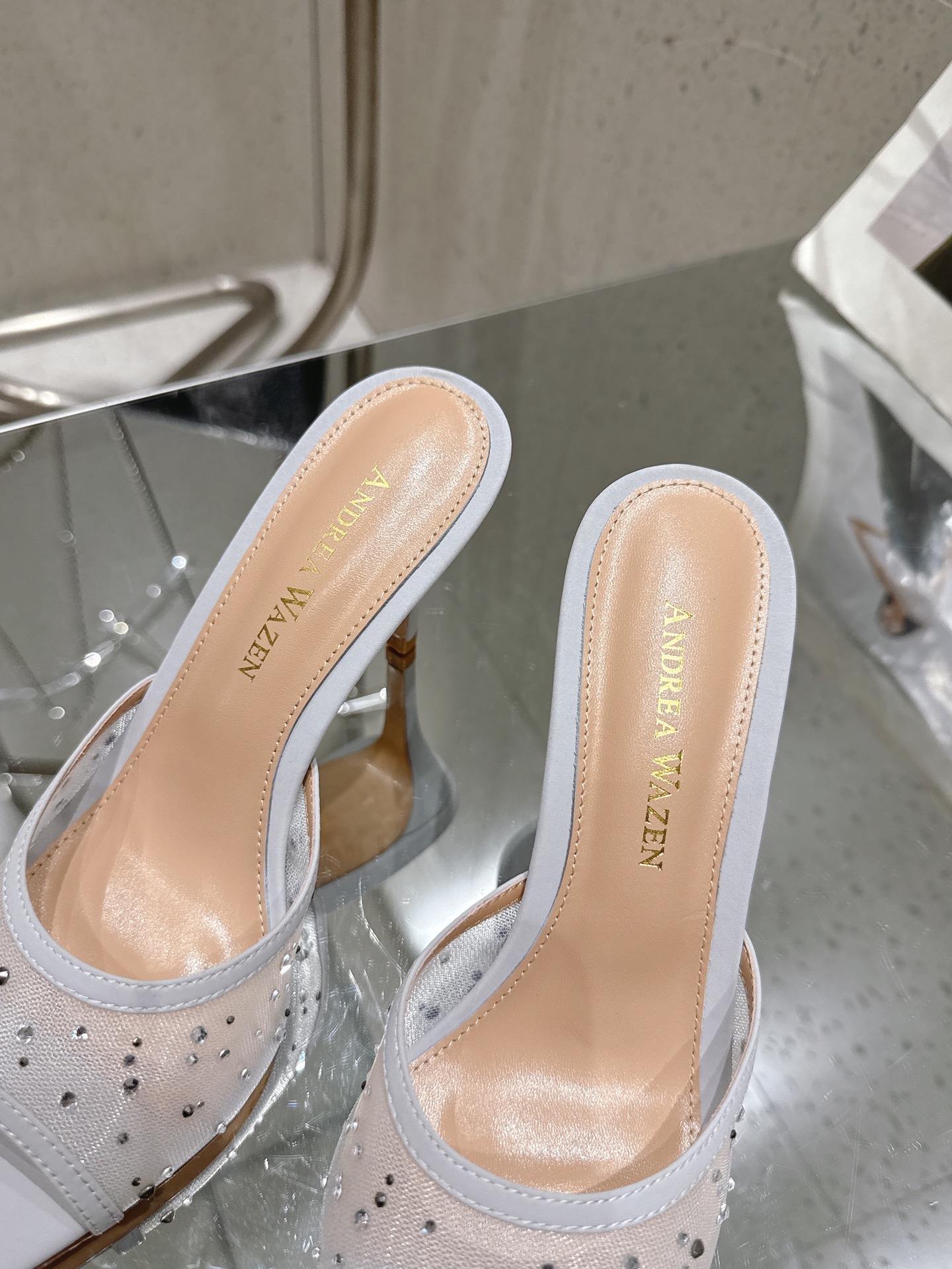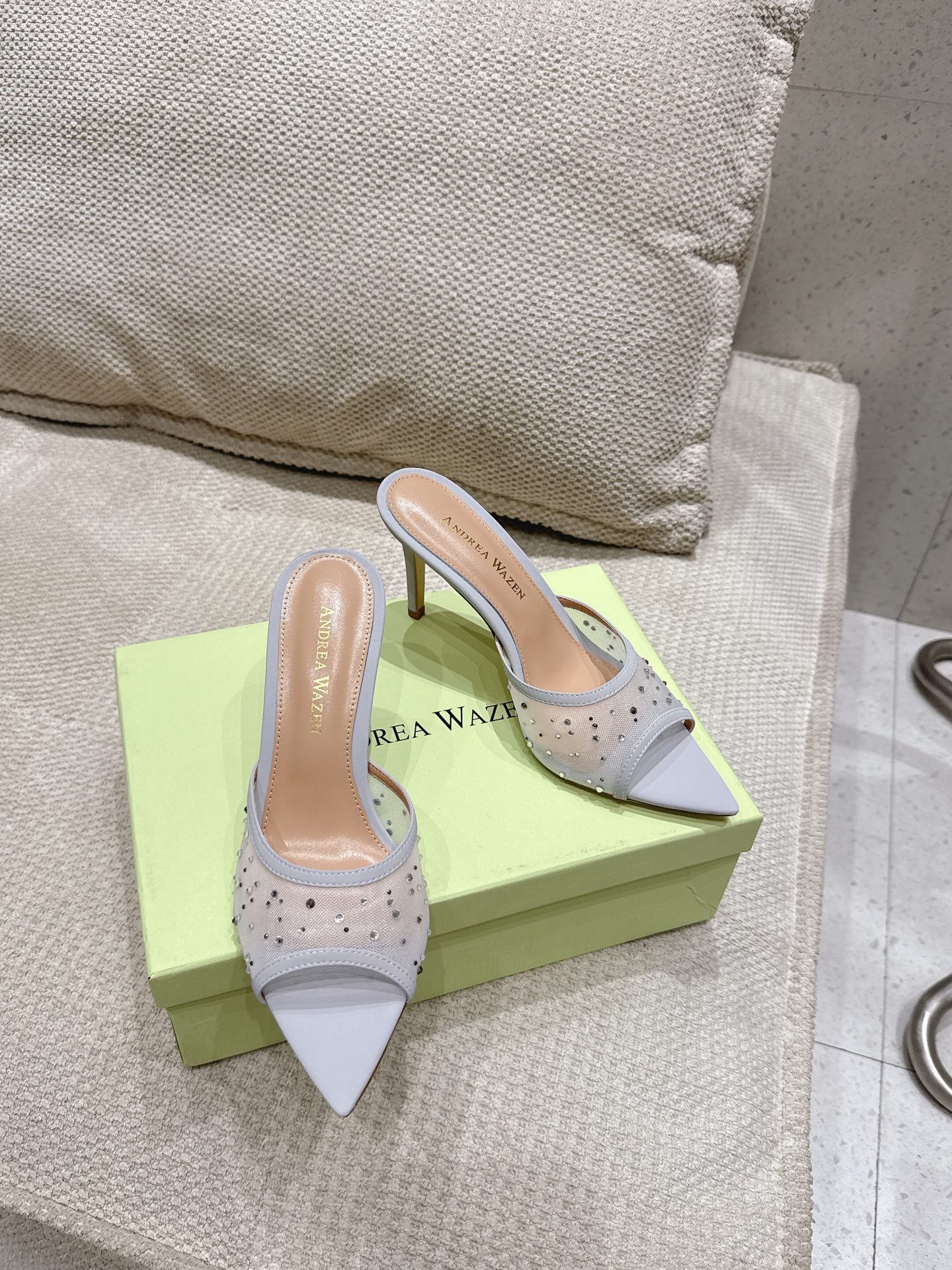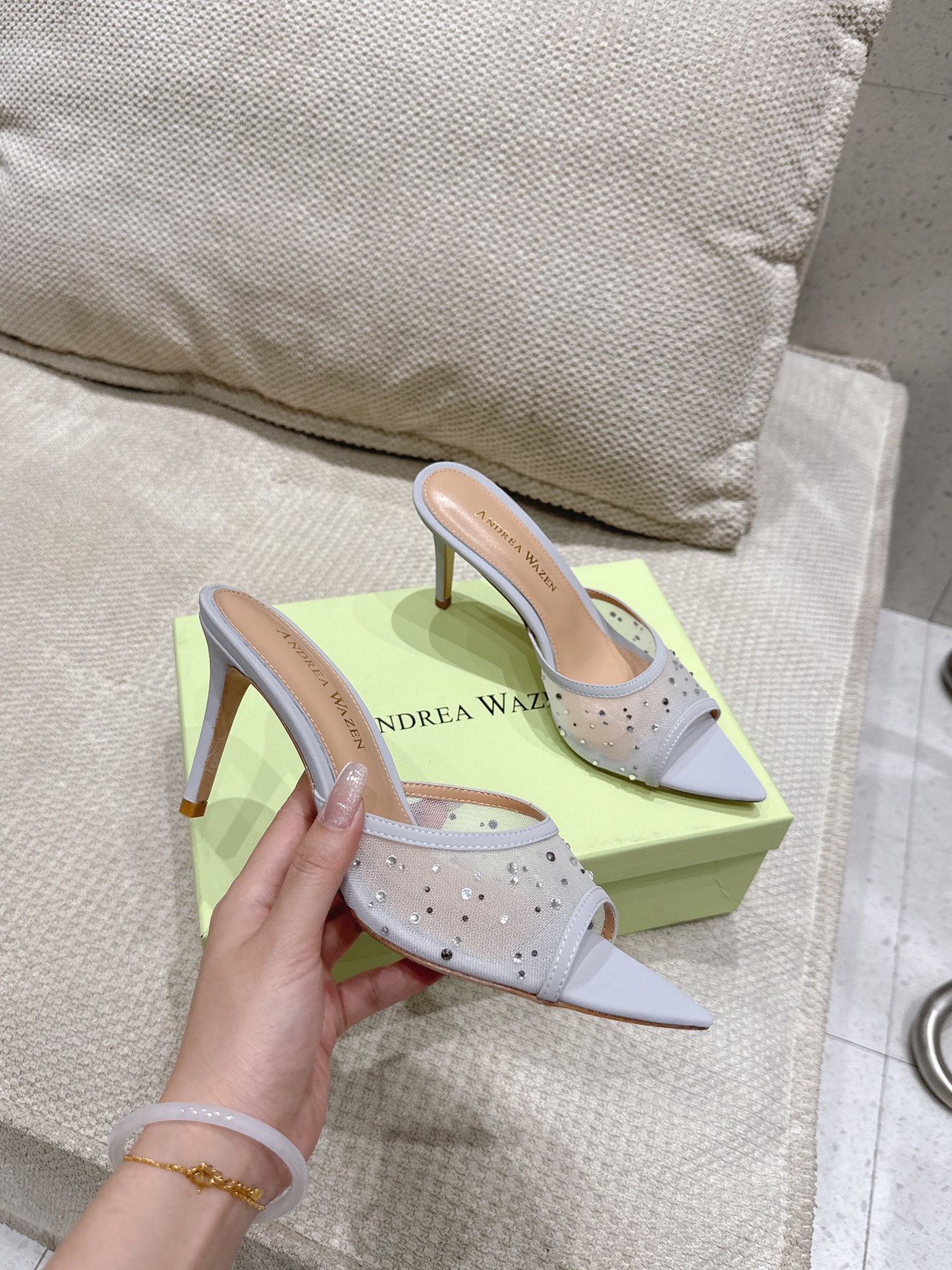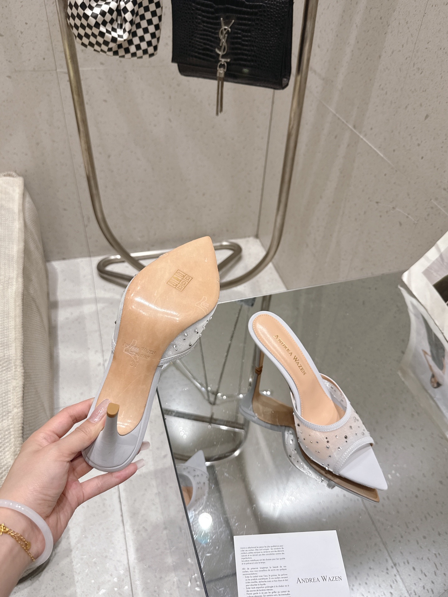 这款鞋子是AAAAA 1:1 质量 (非常棒). 使用了和原版一模一样的材料. 商标部分也保持了和Andrea Wazen一样. 图片拍摄是实物鞋子拍摄, 您所收到的实物保证和我们图片一模一样.