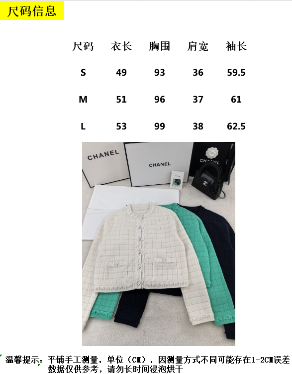 这款衣服是AAAAA 1:1 质量 (非常棒). 使用了和原版一模一样的材料. 商标部分也保持了和香奈儿/Chanel一样. 图片拍摄是实物衣服拍摄, 您所收到的实物保证和我们图片一模一样.