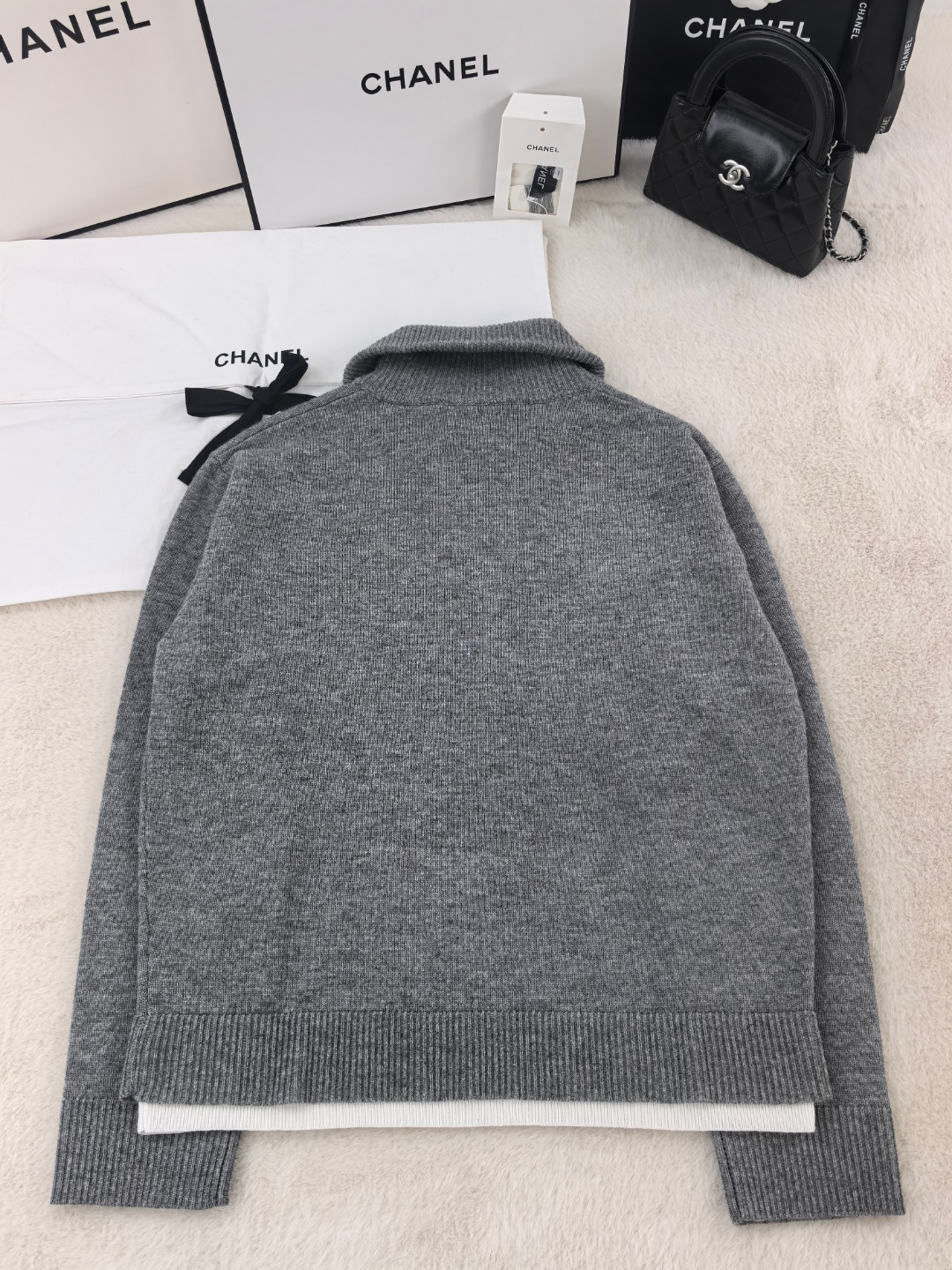 这款衣服是AAAAA 1:1 质量 (非常棒). 使用了和原版一模一样的材料. 商标部分也保持了和香奈儿/Chanel一样. 图片拍摄是实物衣服拍摄, 您所收到的实物保证和我们图片一模一样.