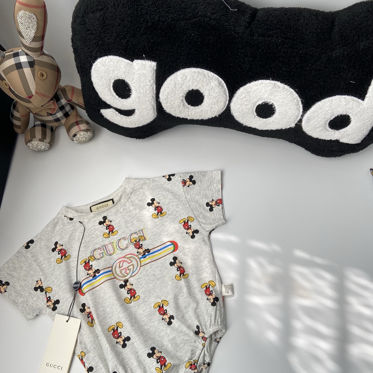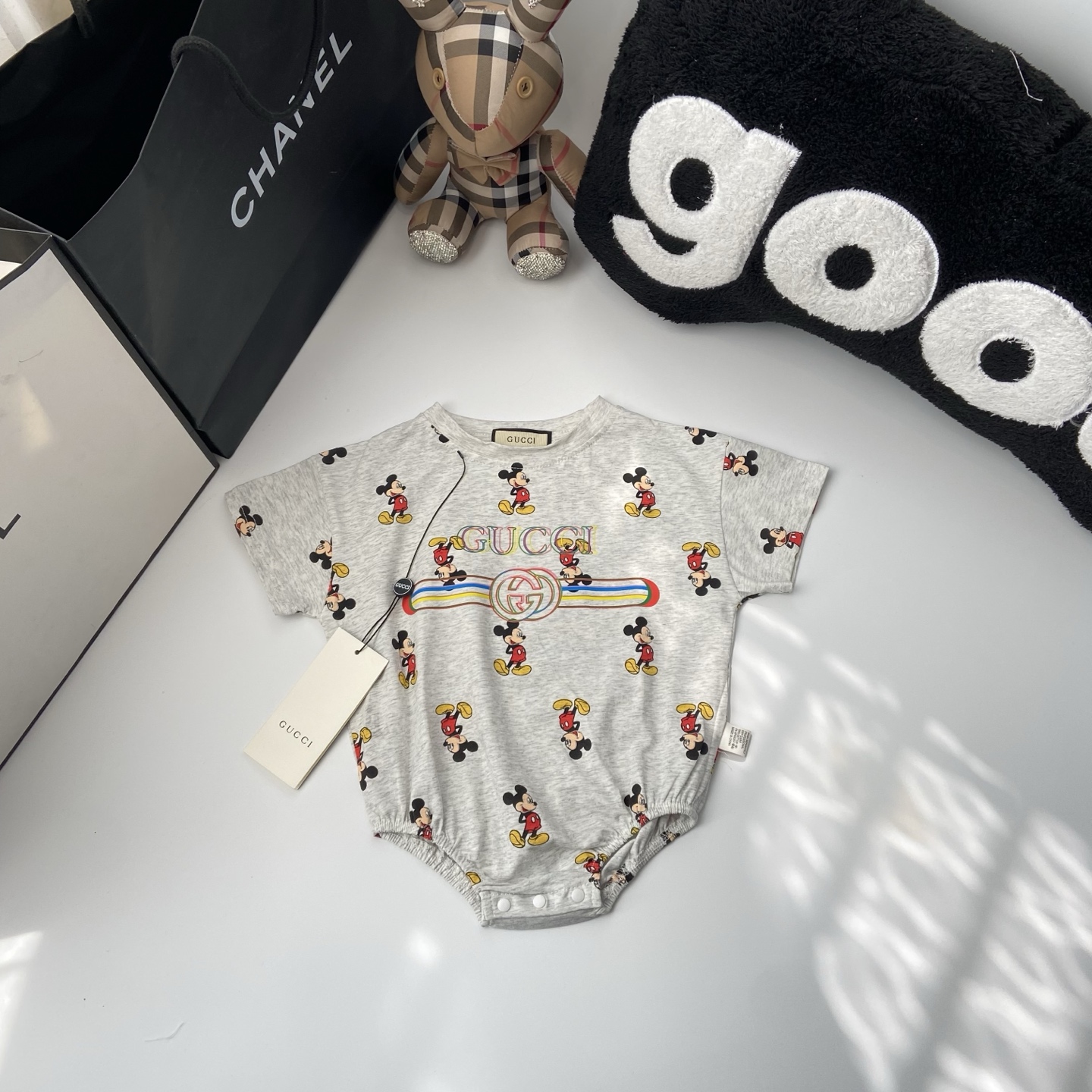 这款children's clothes是AAAAA 1:1 质量 (非常棒). 使用了和原版一模一样的材料. 商标部分也保持了和古奇/Gucci一样. 图片拍摄是实物children's clothes拍摄, 您所收到的实物保证和我们图片一模一样.