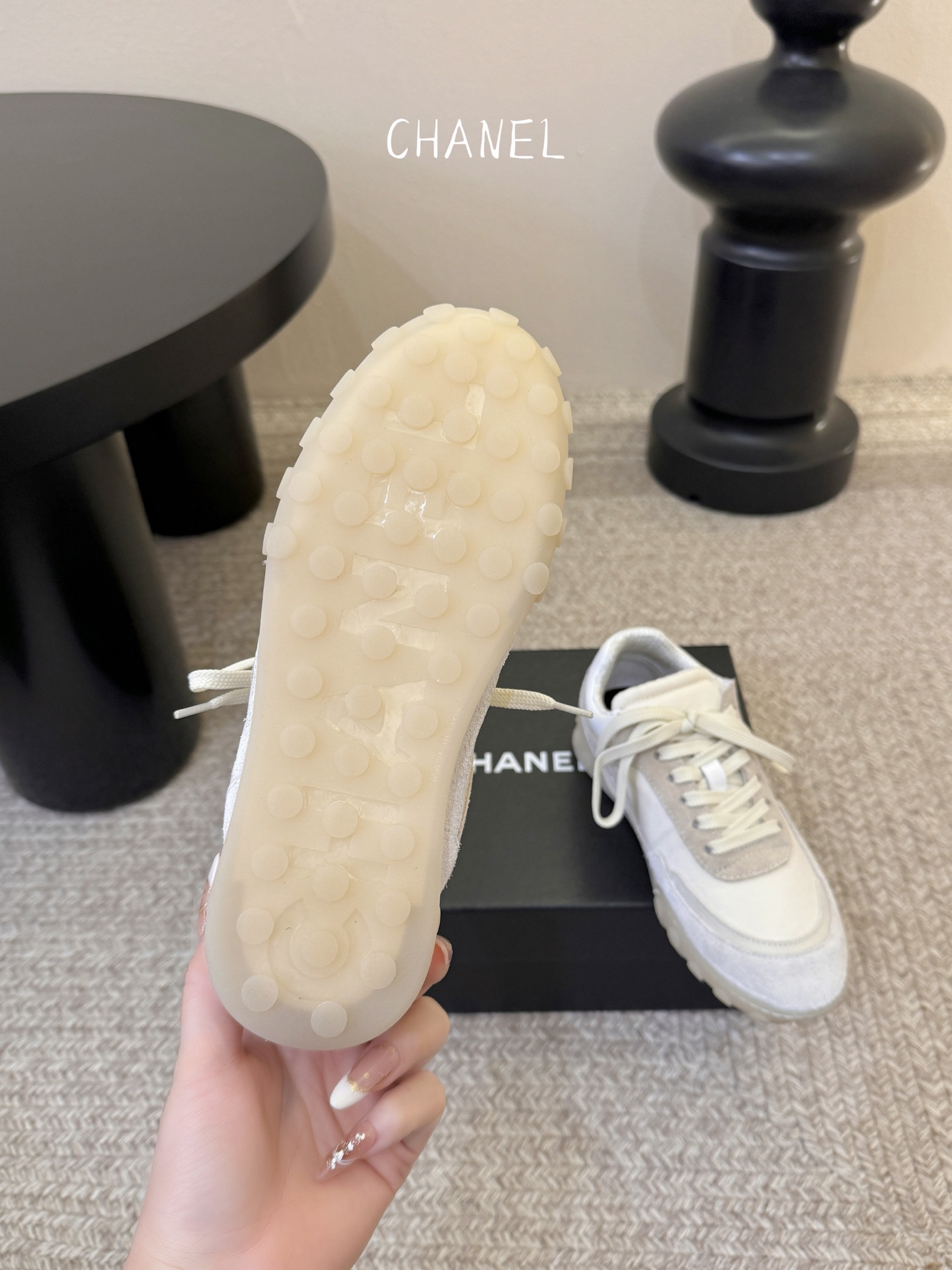 这款鞋子是AAAAA 1:1 质量 (非常棒). 使用了和原版一模一样的材料. 商标部分也保持了和香奈儿/Chanel一样. 图片拍摄是实物鞋子拍摄, 您所收到的实物保证和我们图片一模一样.