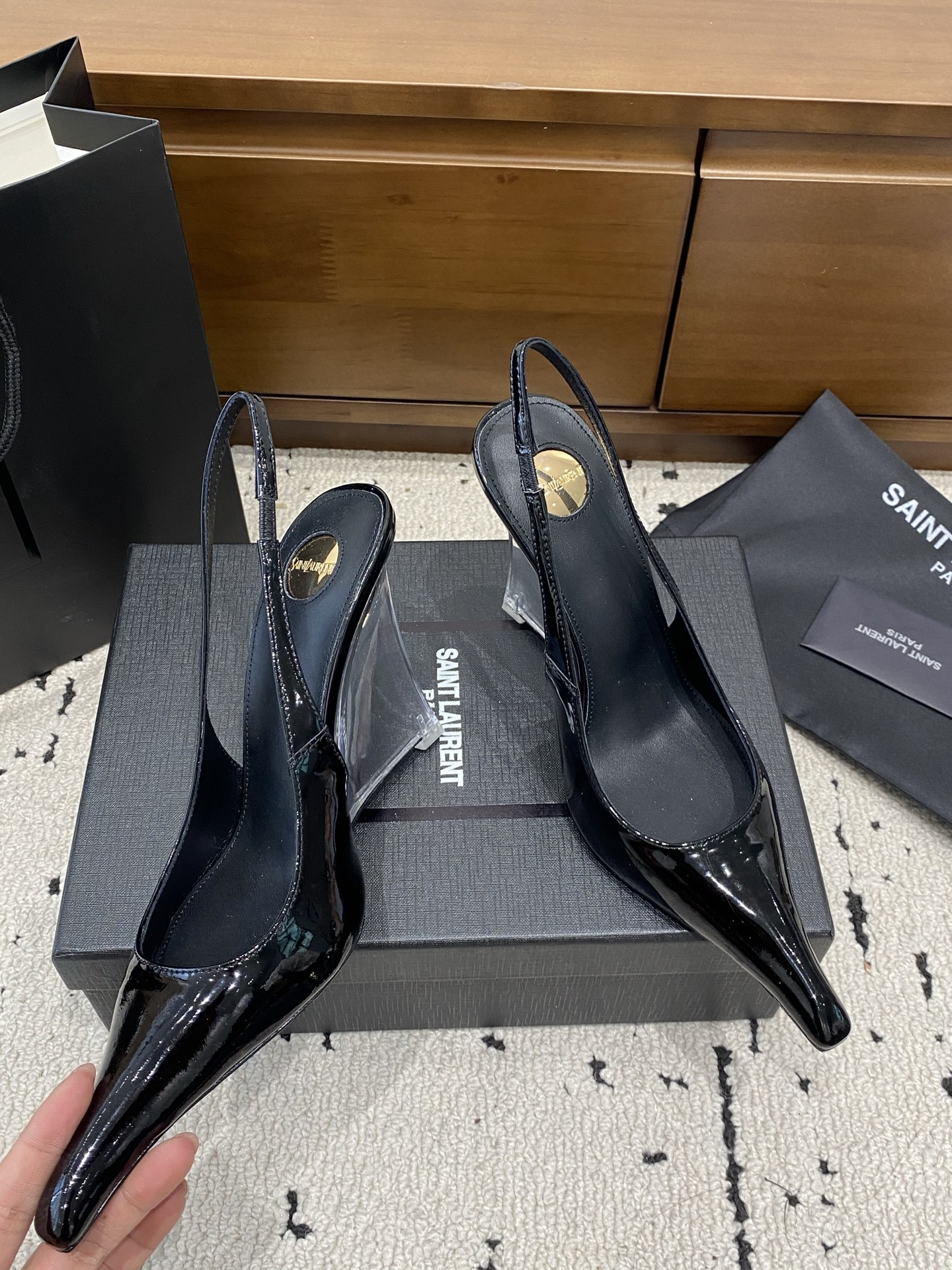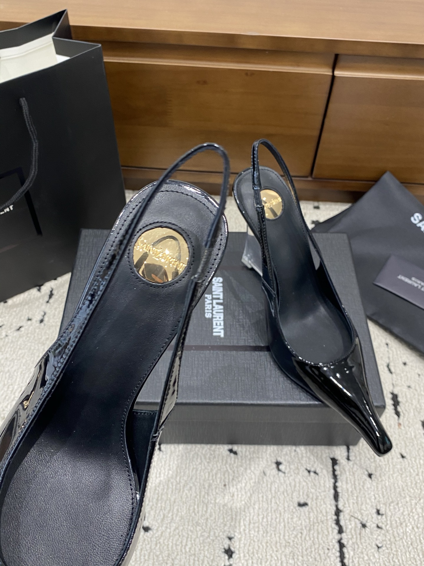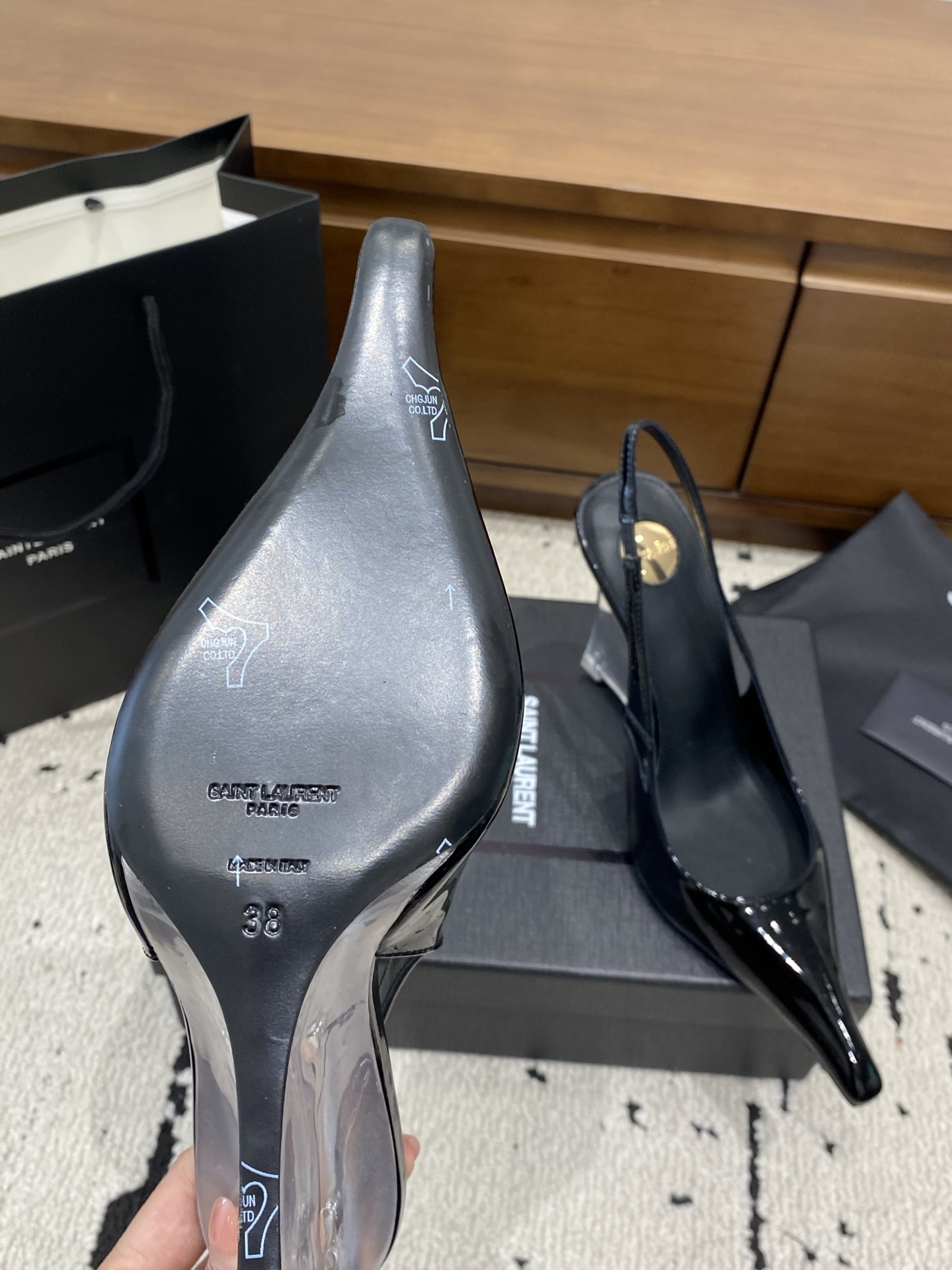 这款鞋子是AAAAA 1:1 质量 (非常棒). 使用了和原版一模一样的材料. 商标部分也保持了和圣罗兰/Saint Laurent一样. 图片拍摄是实物鞋子拍摄, 您所收到的实物保证和我们图片一模一样.