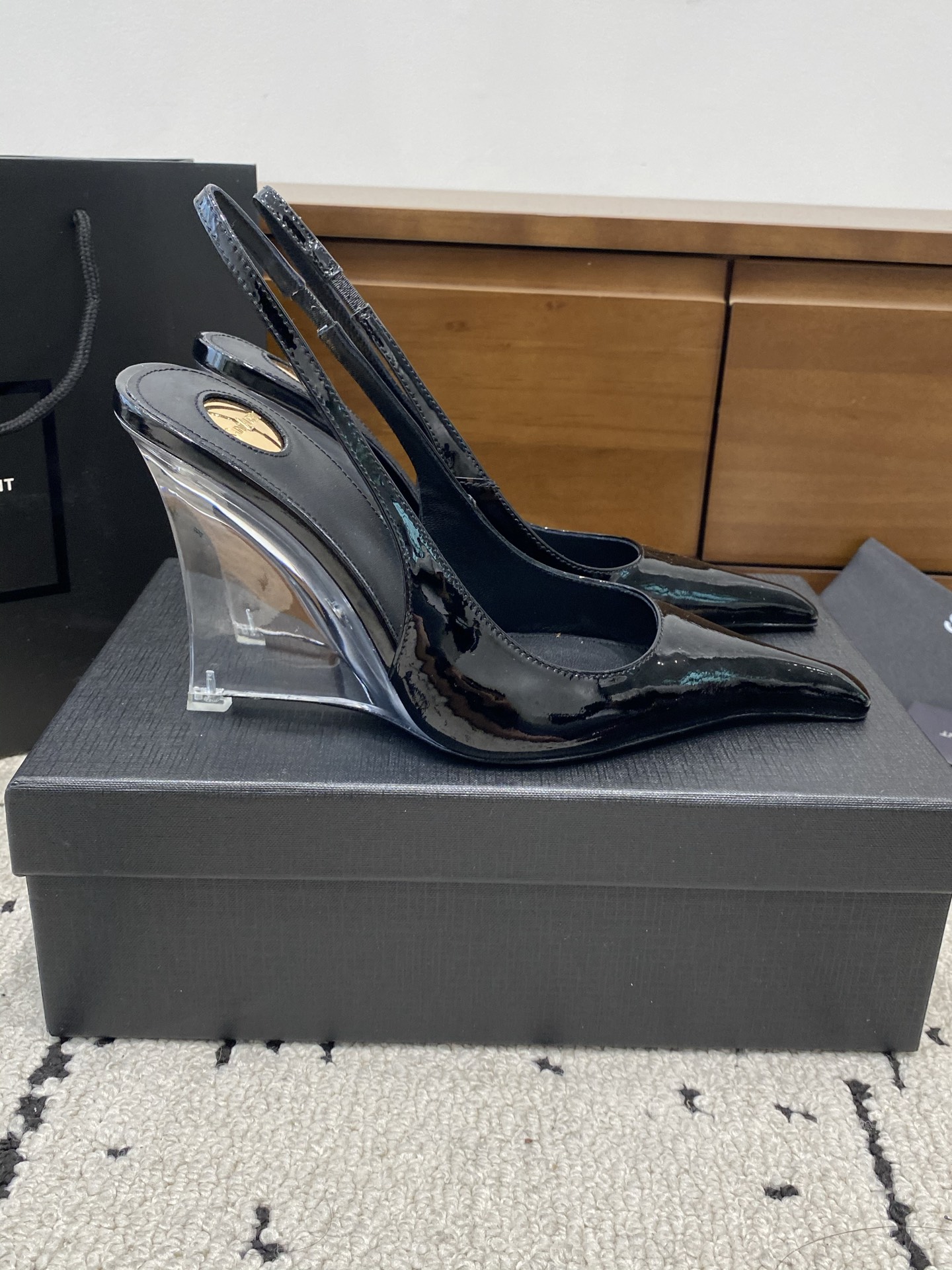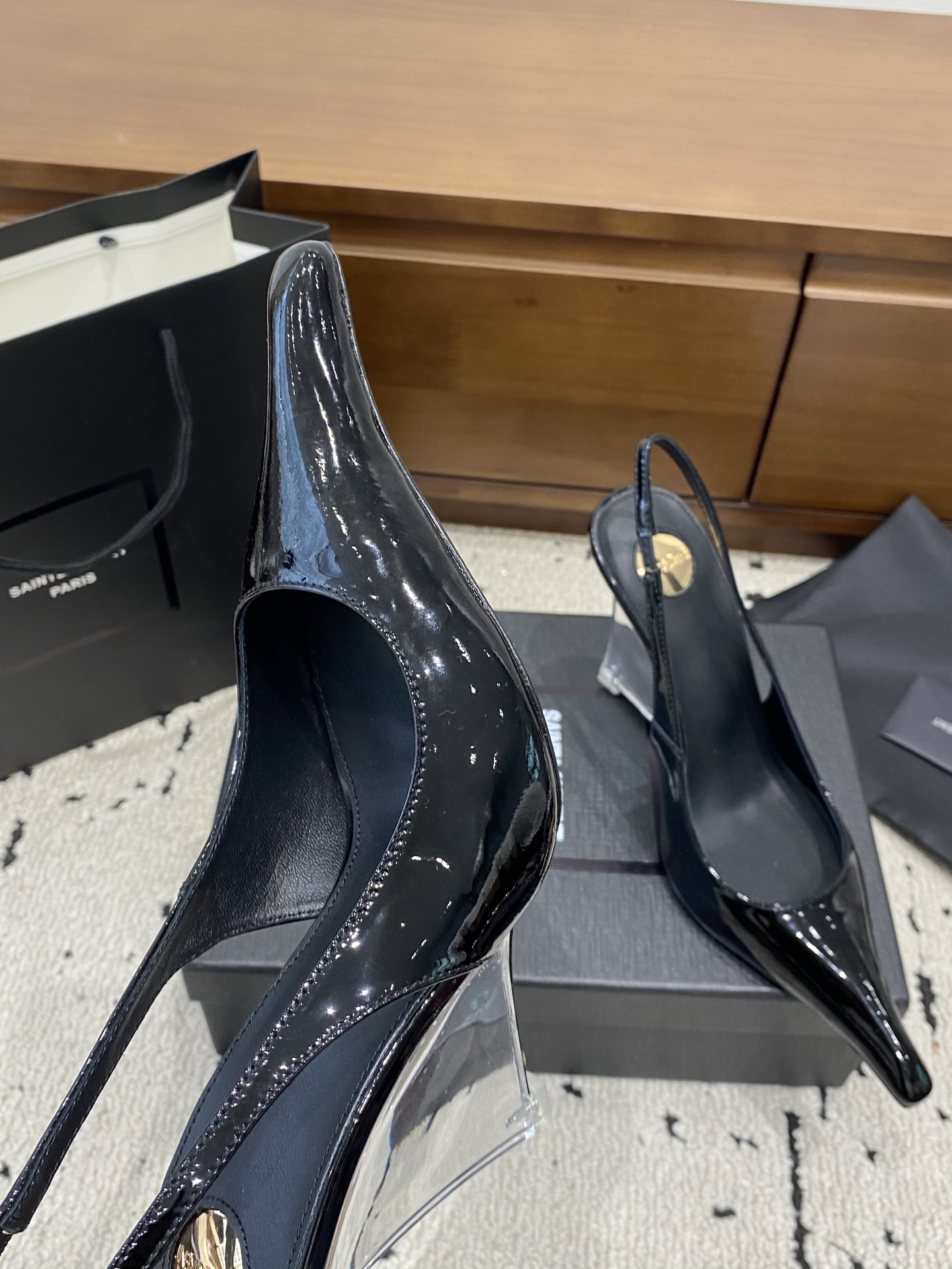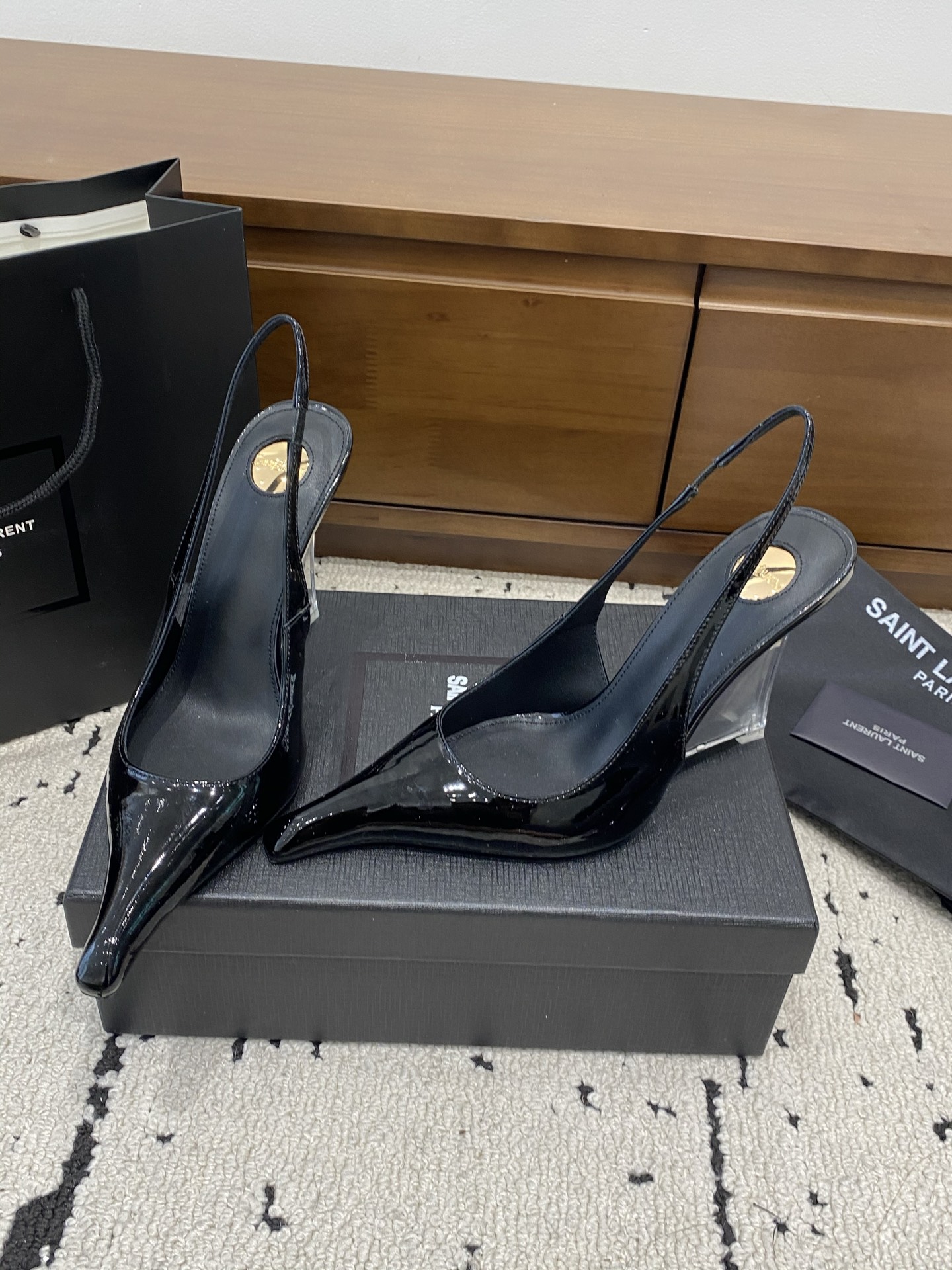 这款鞋子是AAAAA 1:1 质量 (非常棒). 使用了和原版一模一样的材料. 商标部分也保持了和圣罗兰/Saint Laurent一样. 图片拍摄是实物鞋子拍摄, 您所收到的实物保证和我们图片一模一样.