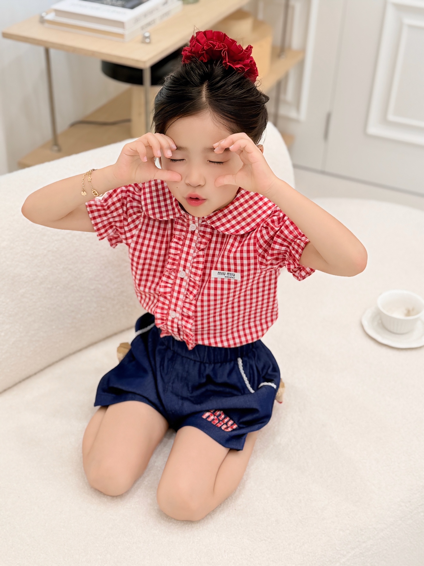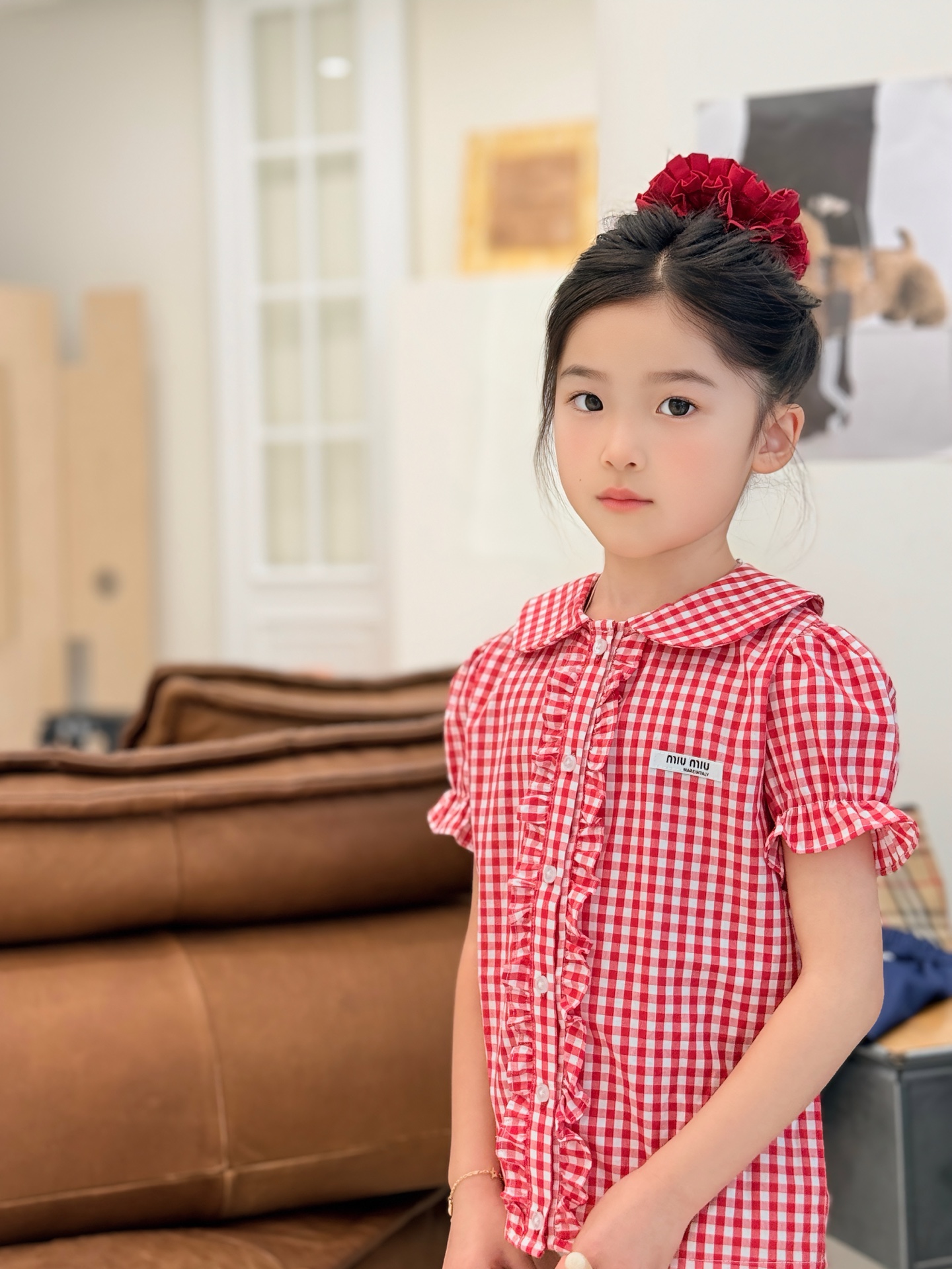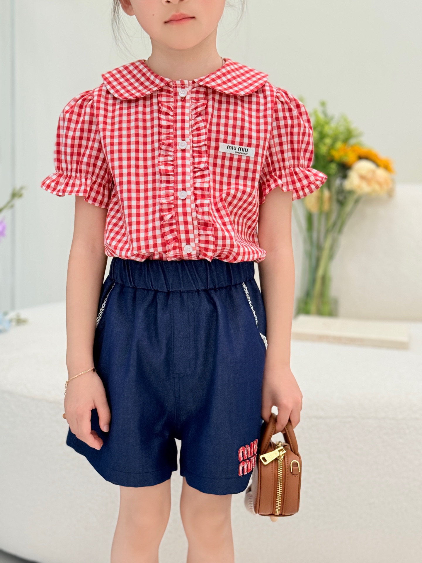 这款children's clothes是AAAAA 1:1 质量 (非常棒). 使用了和原版一模一样的材料. 商标部分也保持了和缪缪/Miu Miu一样. 图片拍摄是实物children's clothes拍摄, 您所收到的实物保证和我们图片一模一样.