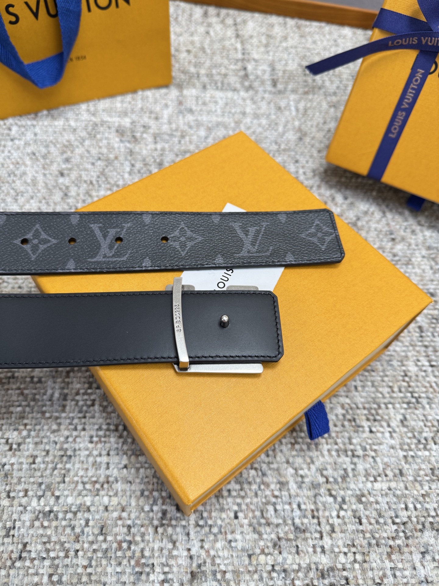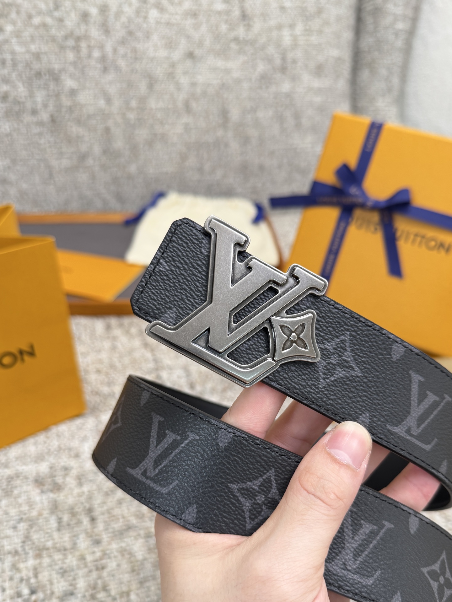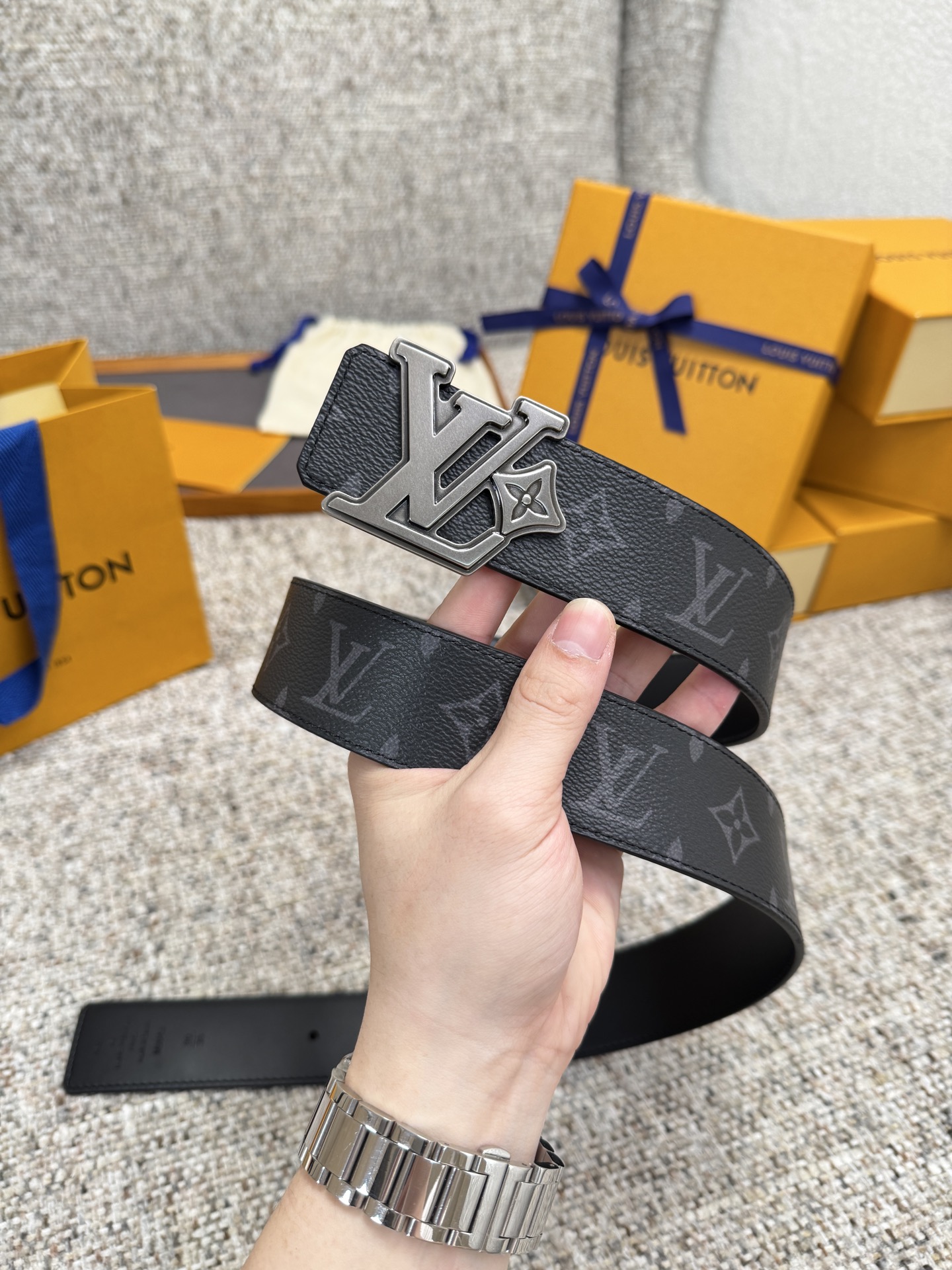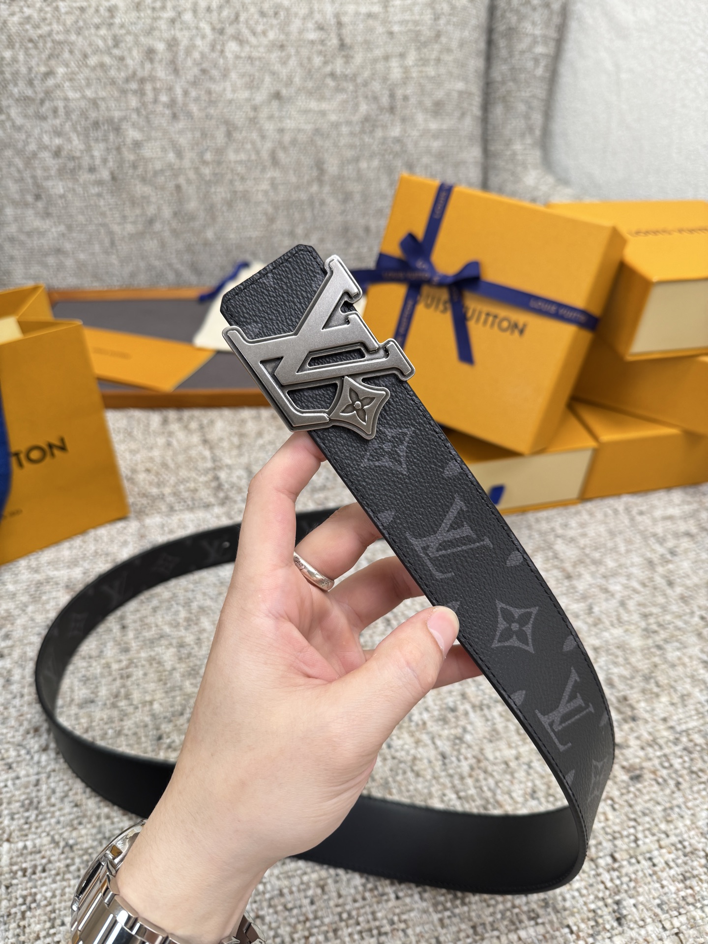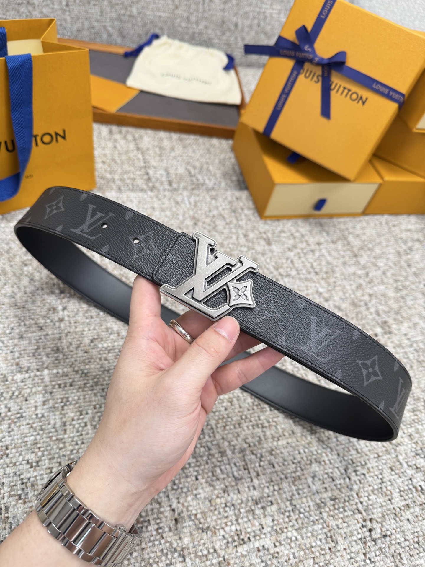 这款皮带是AAAAA 1:1 质量 (非常棒). 使用了和原版一模一样的材料. 商标部分也保持了和路易威登/Louis Vuitton一样. 图片拍摄是实物皮带拍摄, 您所收到的实物保证和我们图片一模一样.