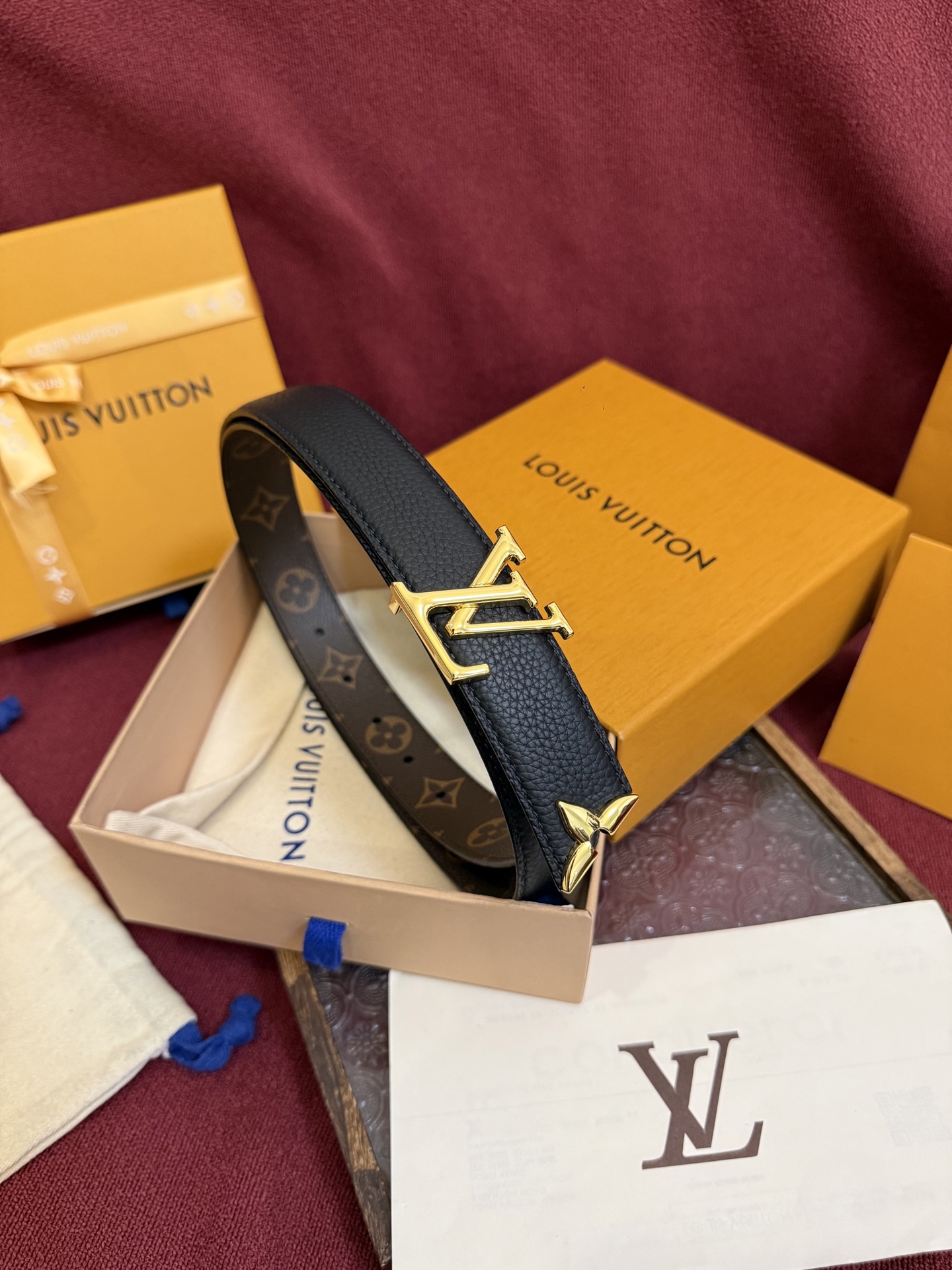 这款皮带是AAAAA 1:1 质量 (非常棒). 使用了和原版一模一样的材料. 商标部分也保持了和路易威登/Louis Vuitton一样. 图片拍摄是实物皮带拍摄, 您所收到的实物保证和我们图片一模一样.