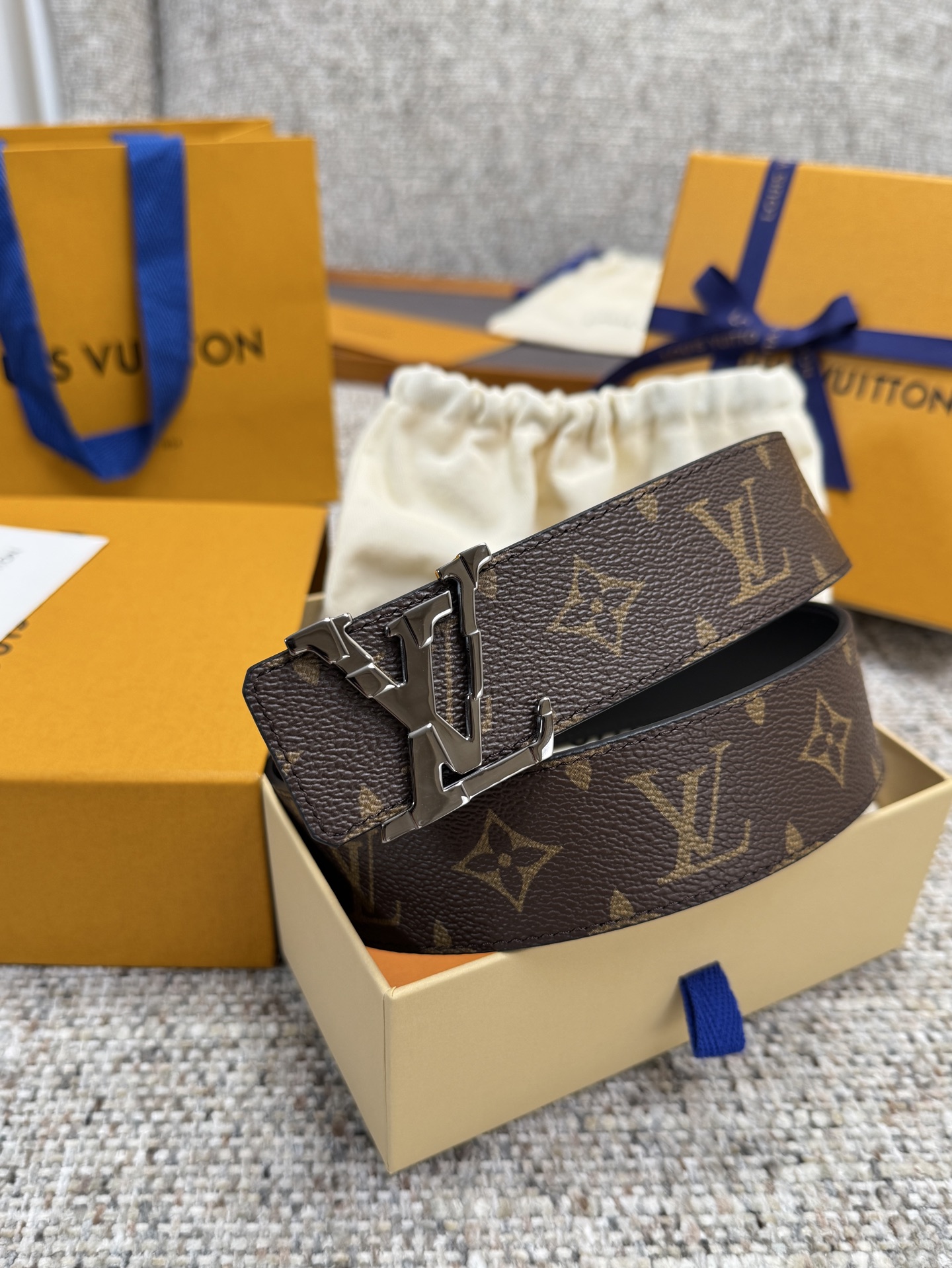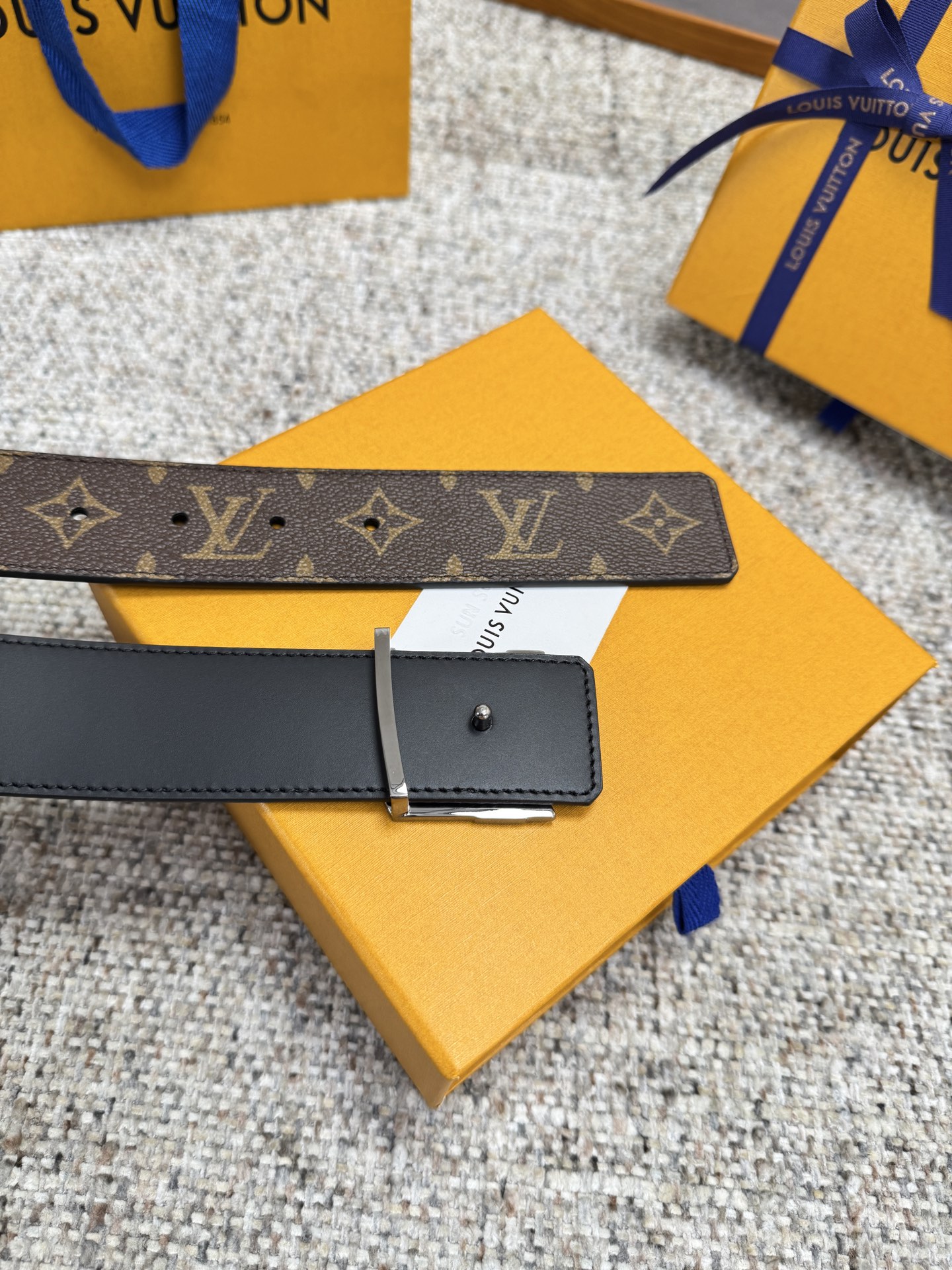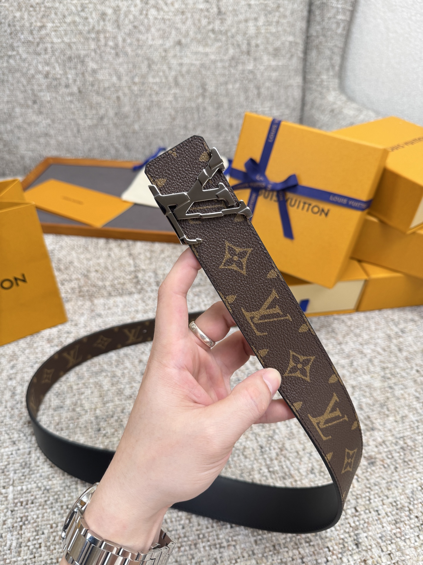 这款皮带是AAAAA 1:1 质量 (非常棒). 使用了和原版一模一样的材料. 商标部分也保持了和路易威登/Louis Vuitton一样. 图片拍摄是实物皮带拍摄, 您所收到的实物保证和我们图片一模一样.