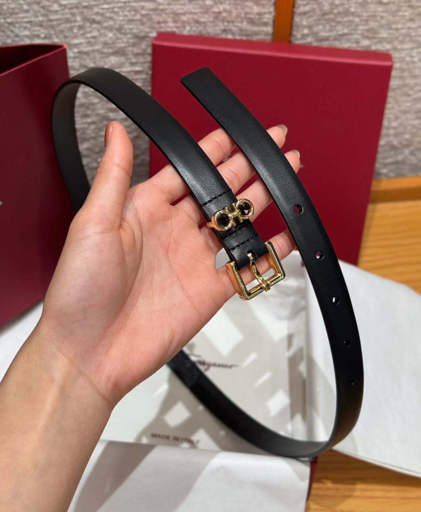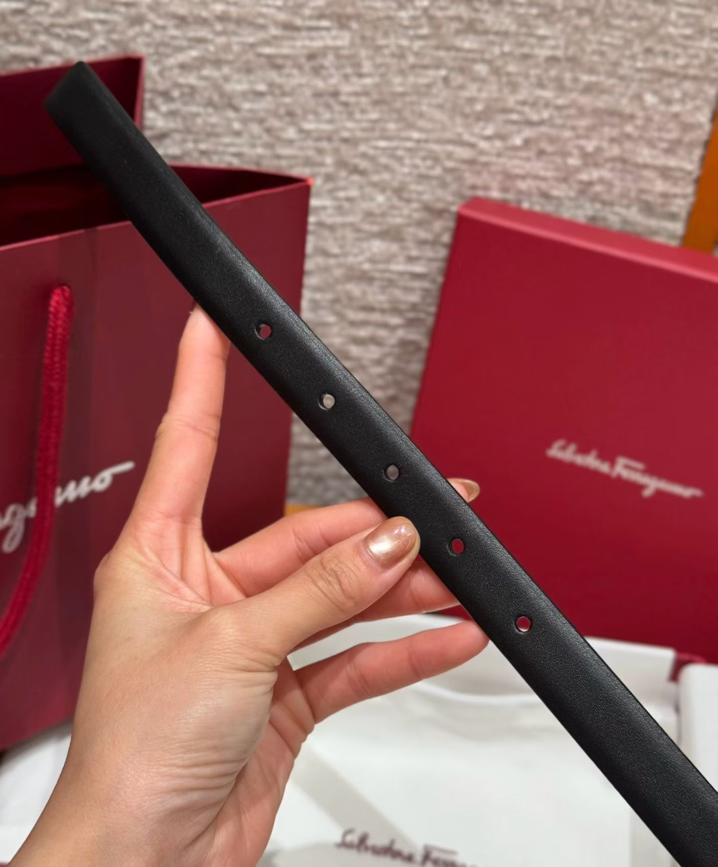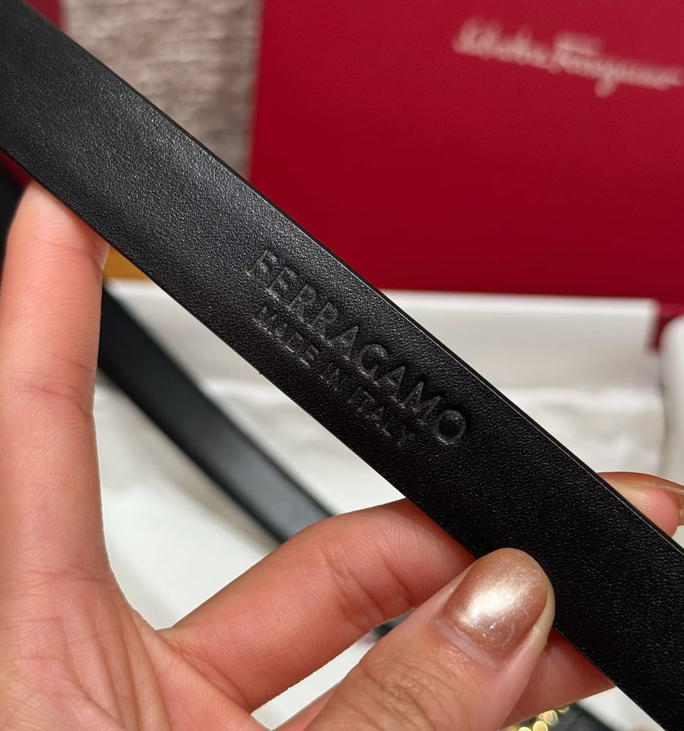 这款皮带是AAAAA 1:1 质量 (非常棒). 使用了和原版一模一样的材料. 商标部分也保持了和菲拉格慕/Salvatore Ferragamo一样. 图片拍摄是实物皮带拍摄, 您所收到的实物保证和我们图片一模一样.
