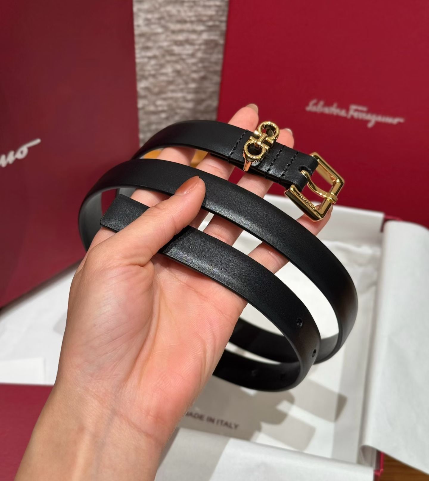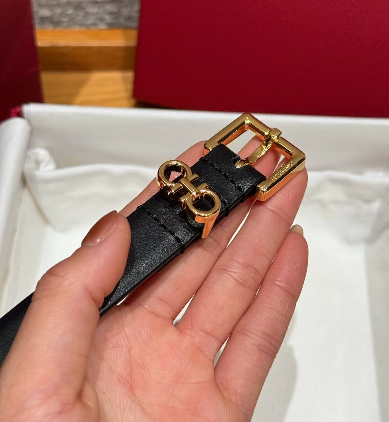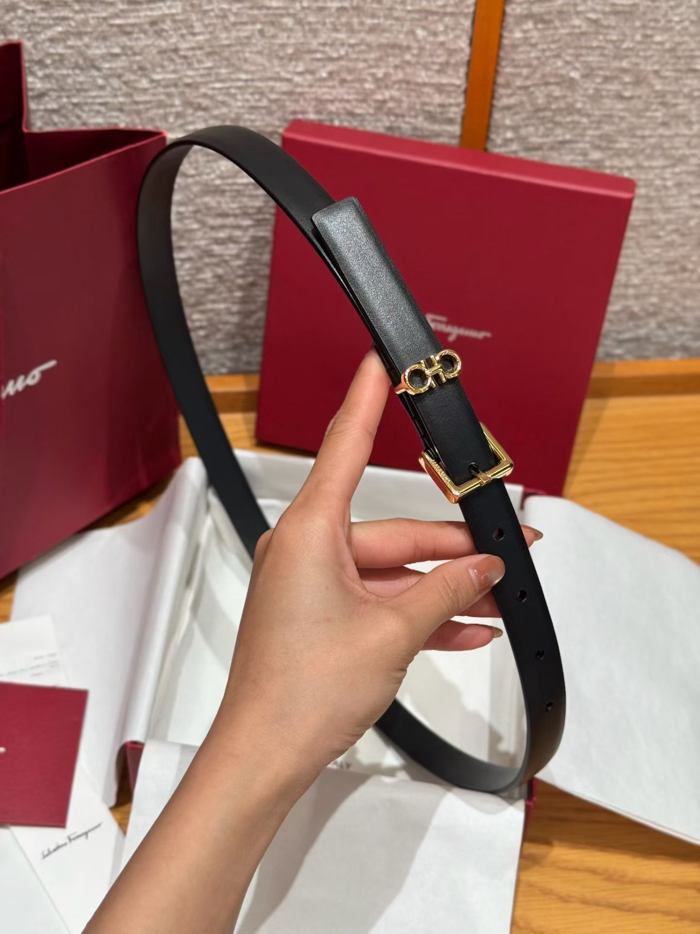这款皮带是AAAAA 1:1 质量 (非常棒). 使用了和原版一模一样的材料. 商标部分也保持了和菲拉格慕/Salvatore Ferragamo一样. 图片拍摄是实物皮带拍摄, 您所收到的实物保证和我们图片一模一样.