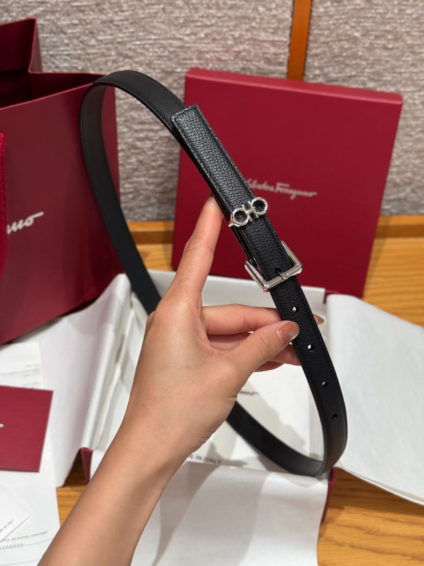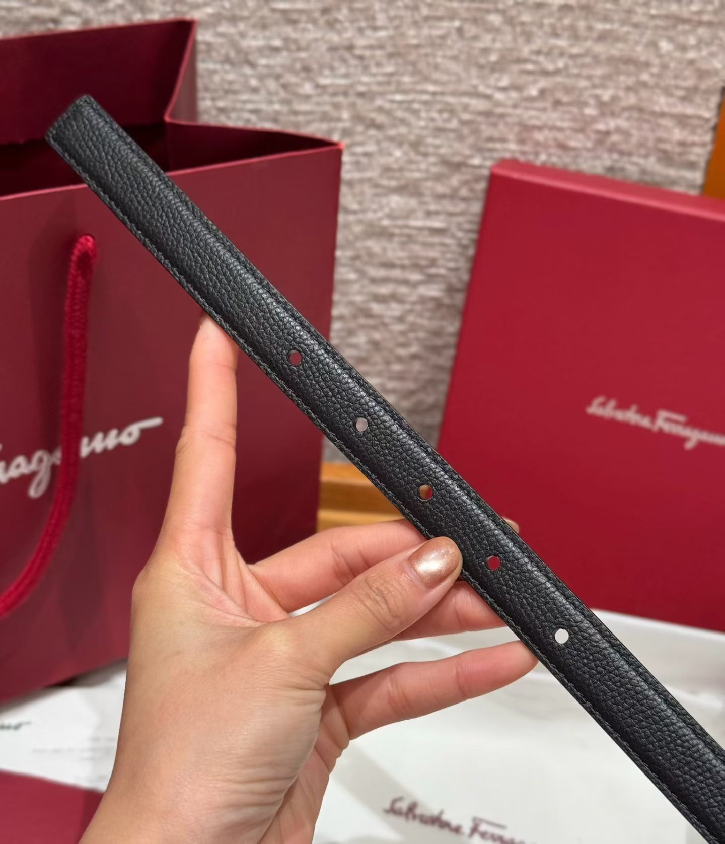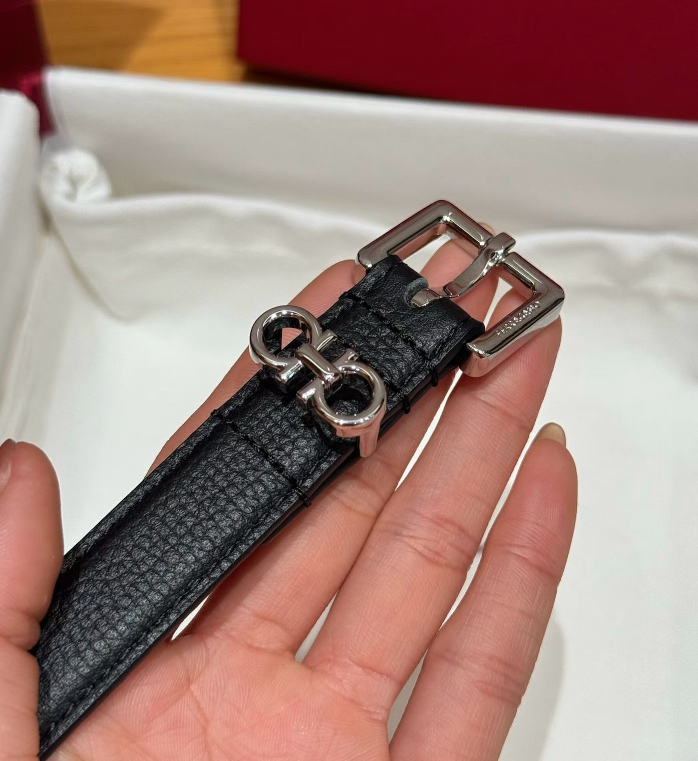 这款皮带是AAAAA 1:1 质量 (非常棒). 使用了和原版一模一样的材料. 商标部分也保持了和菲拉格慕/Salvatore Ferragamo一样. 图片拍摄是实物皮带拍摄, 您所收到的实物保证和我们图片一模一样.