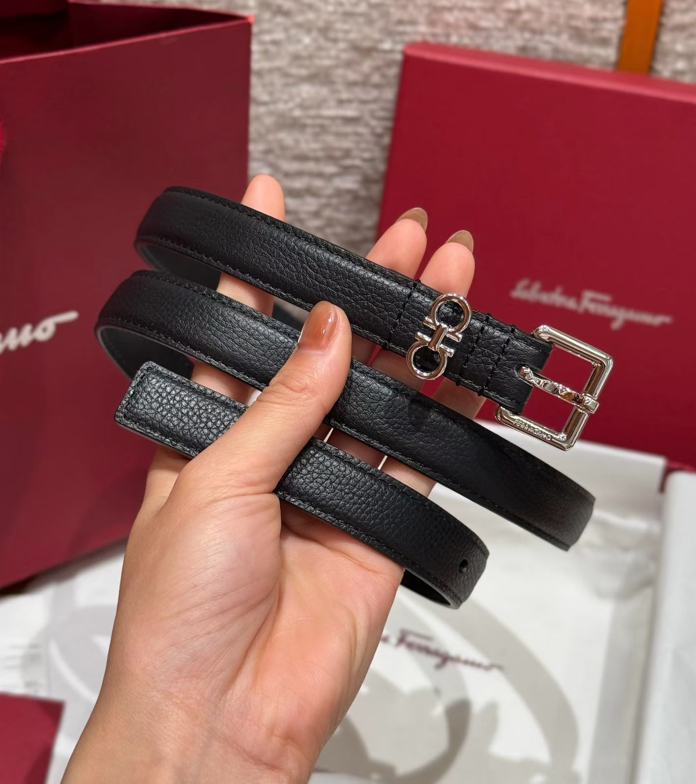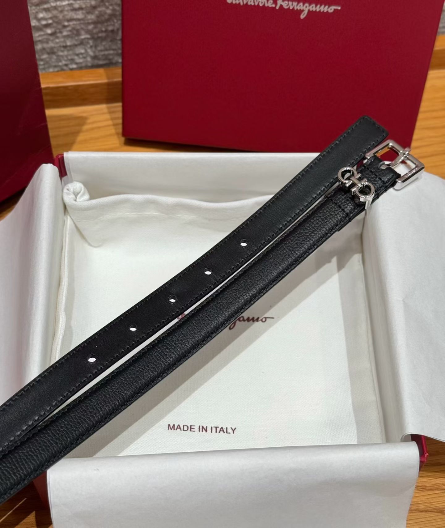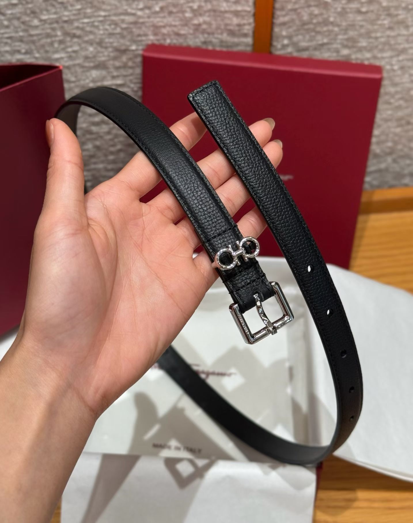 这款皮带是AAAAA 1:1 质量 (非常棒). 使用了和原版一模一样的材料. 商标部分也保持了和菲拉格慕/Salvatore Ferragamo一样. 图片拍摄是实物皮带拍摄, 您所收到的实物保证和我们图片一模一样.