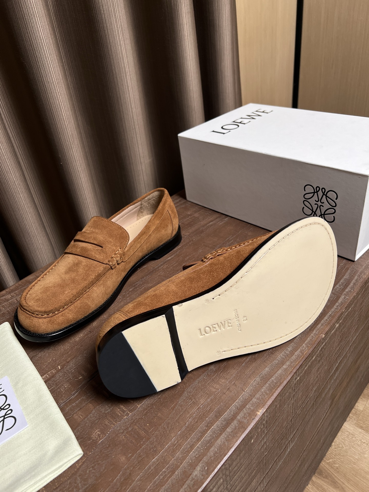 这款鞋子是AAAAA 1:1 质量 (非常棒). 使用了和原版一模一样的材料. 商标部分也保持了和罗意威/Loewe一样. 图片拍摄是实物鞋子拍摄, 您所收到的实物保证和我们图片一模一样.