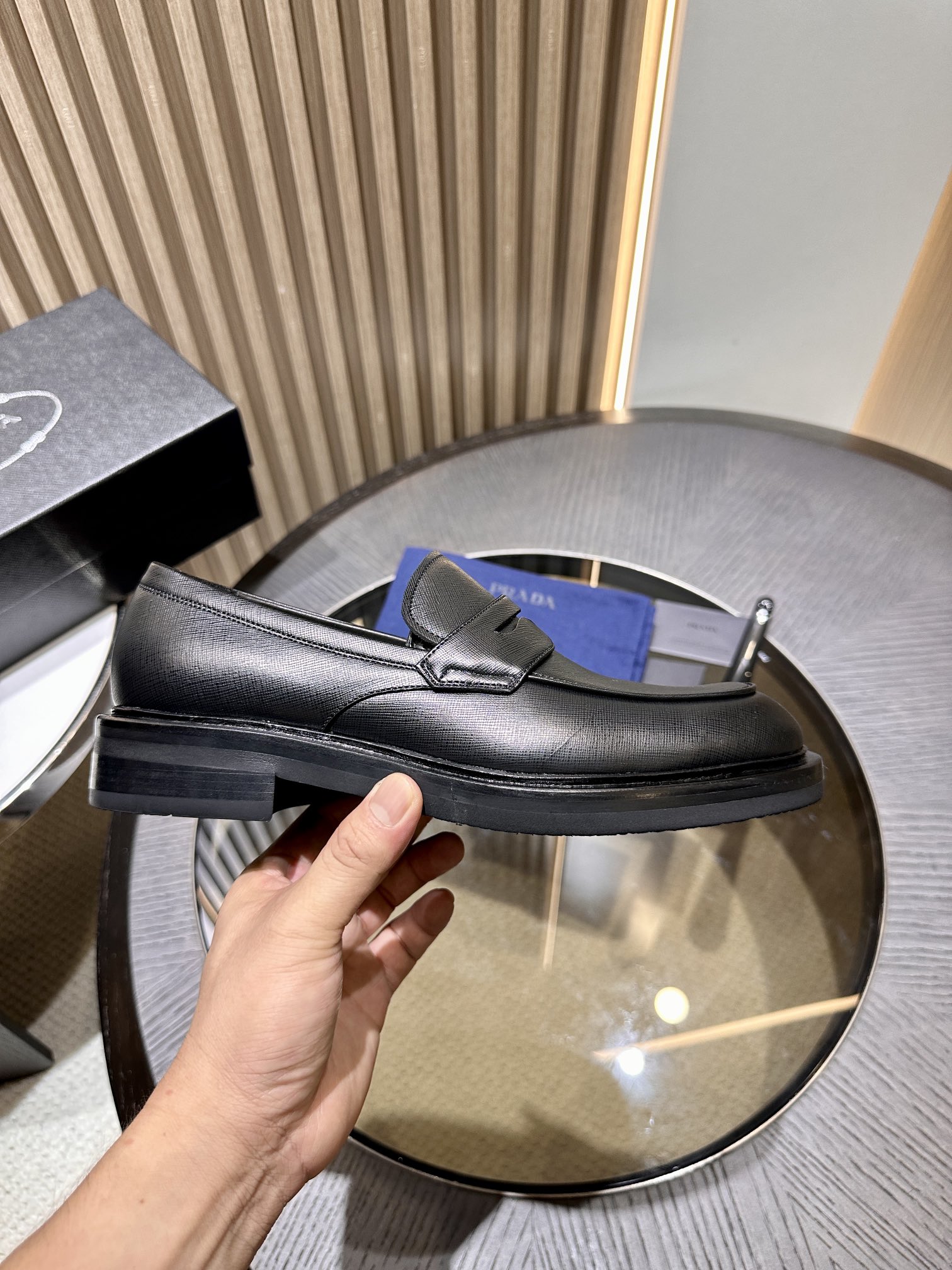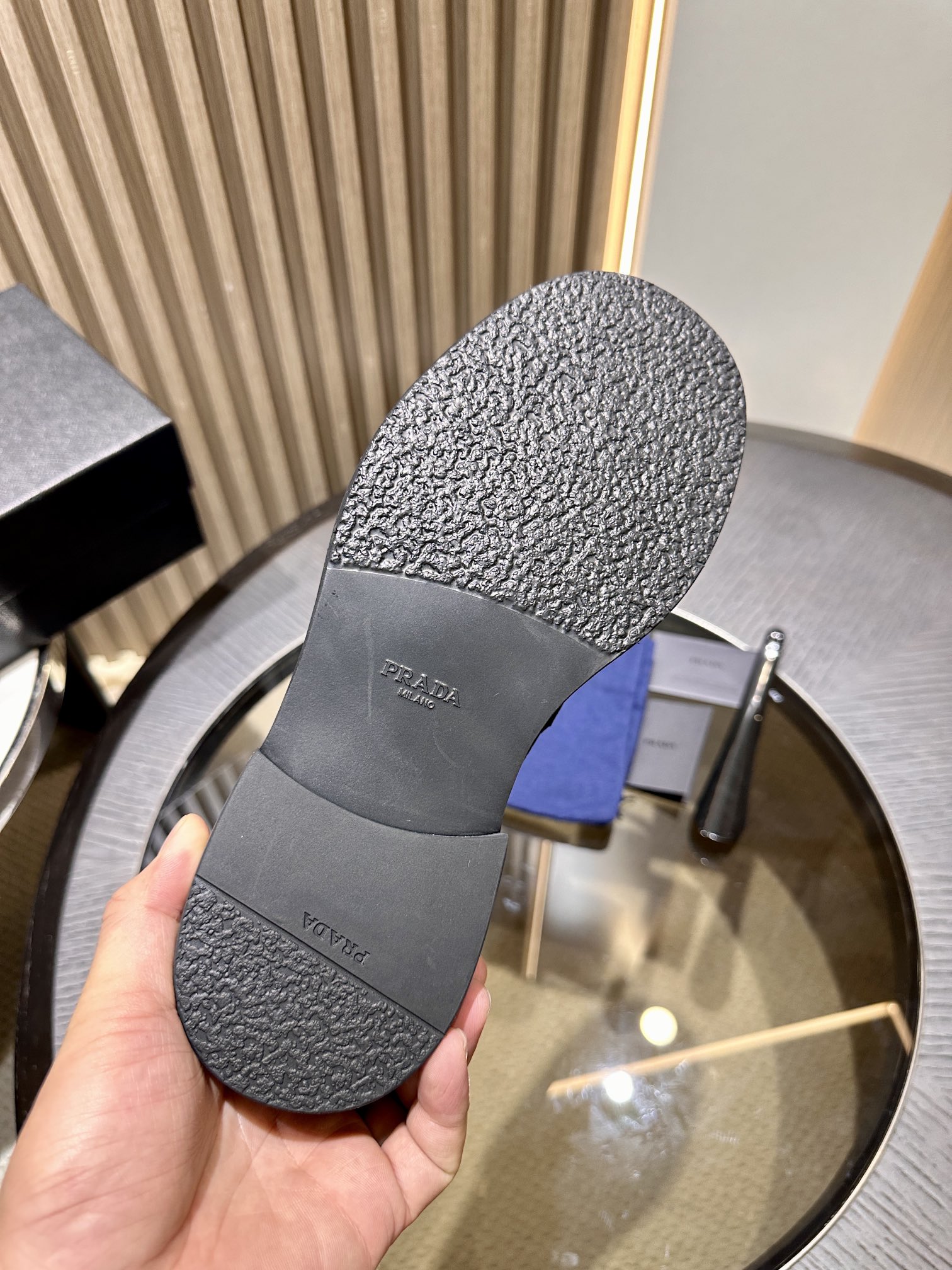 这款鞋子是AAAAA 1:1 质量 (非常棒). 使用了和原版一模一样的材料. 商标部分也保持了和普拉达/Prada一样. 图片拍摄是实物鞋子拍摄, 您所收到的实物保证和我们图片一模一样.
