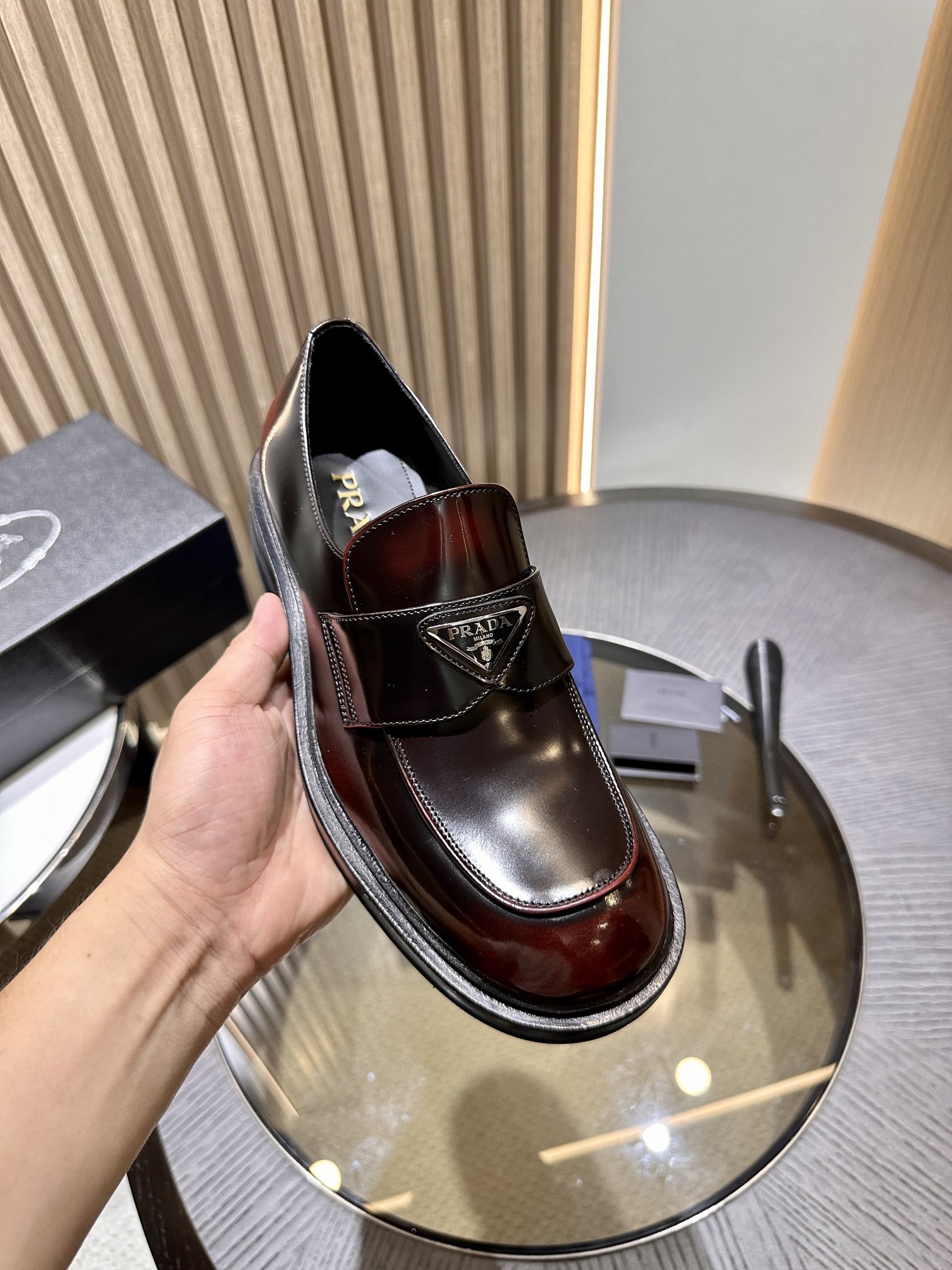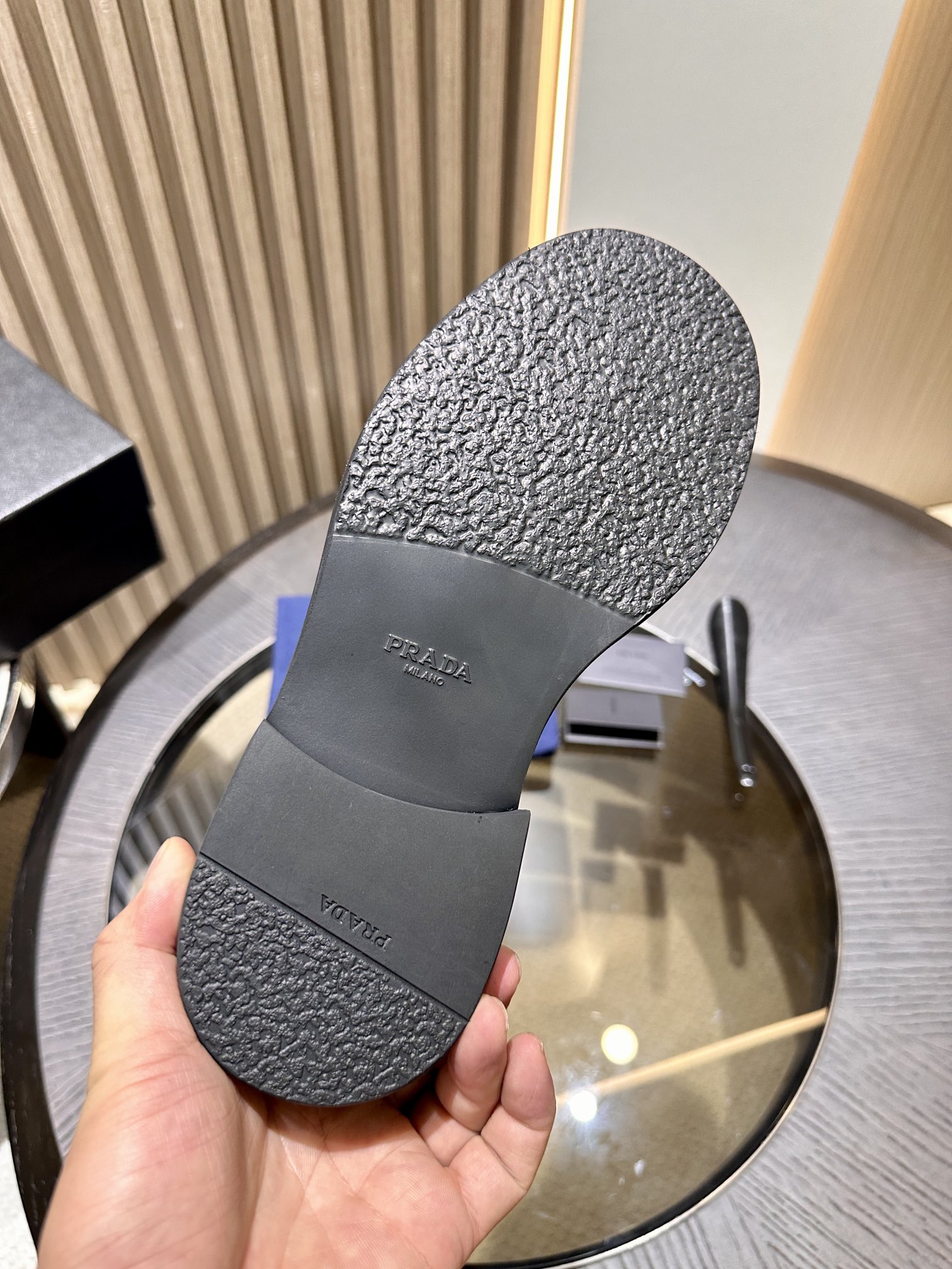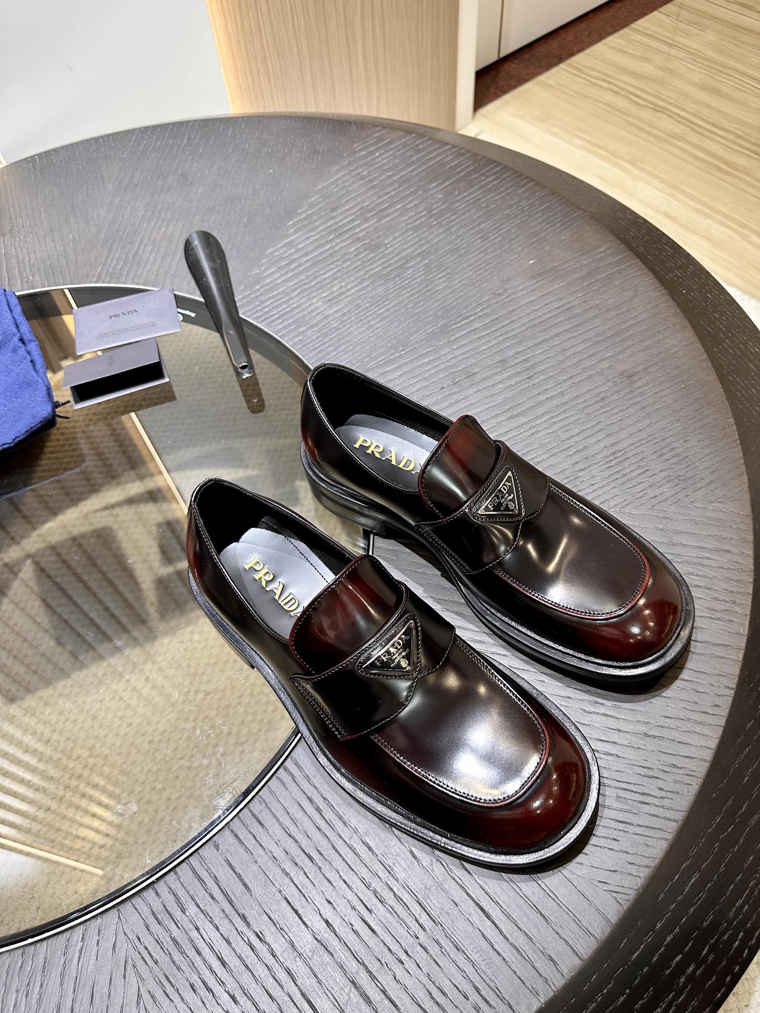 这款鞋子是AAAAA 1:1 质量 (非常棒). 使用了和原版一模一样的材料. 商标部分也保持了和普拉达/Prada一样. 图片拍摄是实物鞋子拍摄, 您所收到的实物保证和我们图片一模一样.