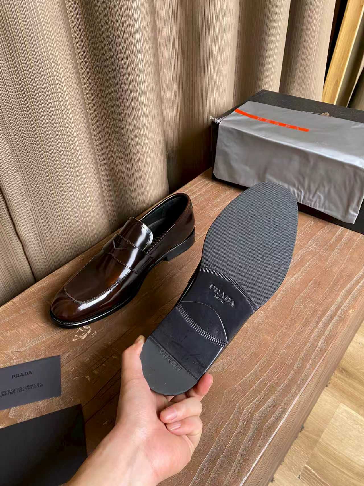这款鞋子是AAAAA 1:1 质量 (非常棒). 使用了和原版一模一样的材料. 商标部分也保持了和普拉达/Prada一样. 图片拍摄是实物鞋子拍摄, 您所收到的实物保证和我们图片一模一样.