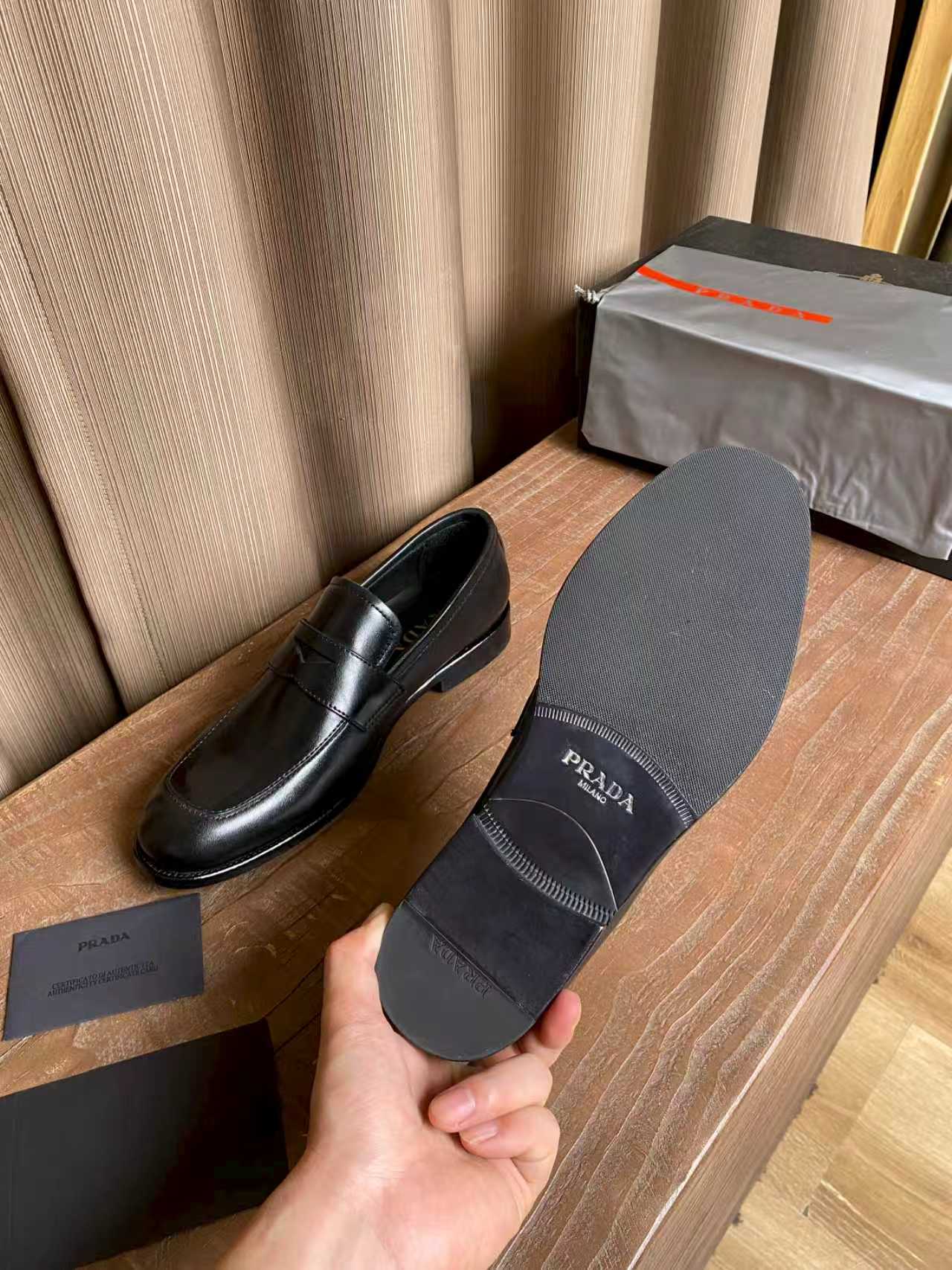 这款鞋子是AAAAA 1:1 质量 (非常棒). 使用了和原版一模一样的材料. 商标部分也保持了和普拉达/Prada一样. 图片拍摄是实物鞋子拍摄, 您所收到的实物保证和我们图片一模一样.