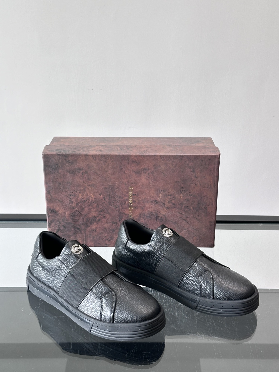 这款鞋子是AAAAA 1:1 质量 (非常棒). 使用了和原版一模一样的材料. 商标部分也保持了和史蒂芬劳.尼治/Stefano Ricci一样. 图片拍摄是实物鞋子拍摄, 您所收到的实物保证和我们图片一模一样.