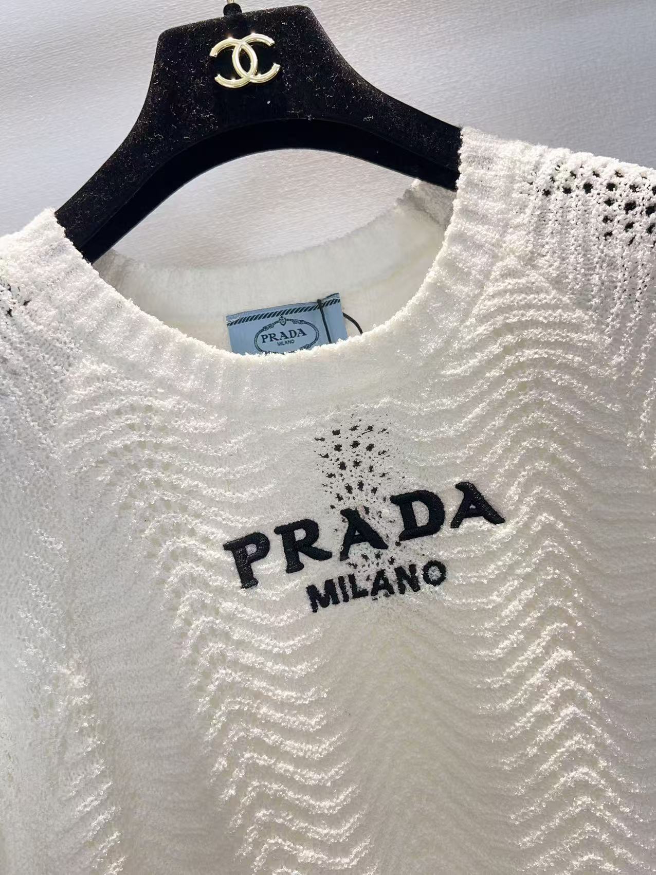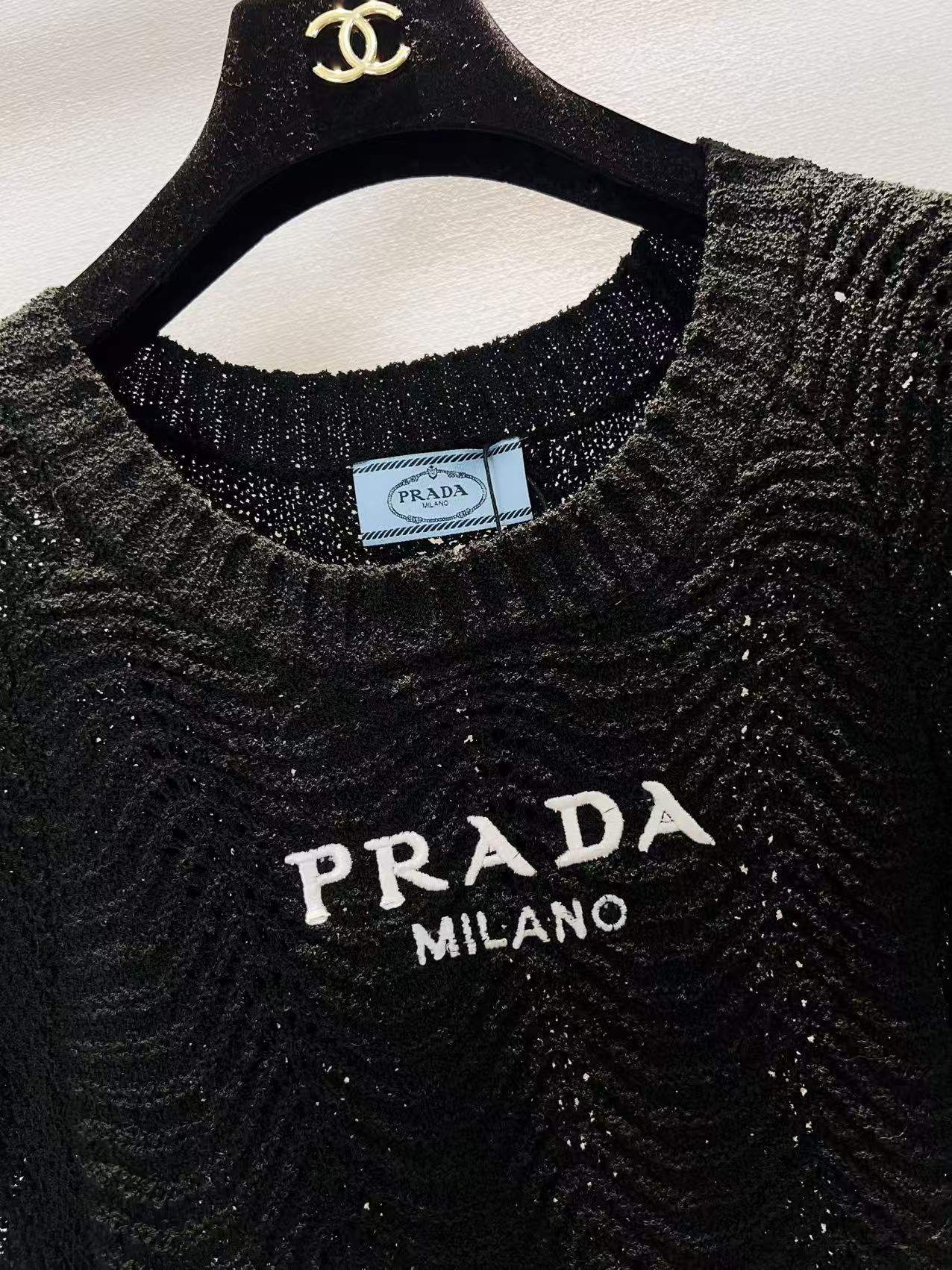 这款衣服是AAAAA 1:1 质量 (非常棒). 使用了和原版一模一样的材料. 商标部分也保持了和普拉达/Prada一样. 图片拍摄是实物衣服拍摄, 您所收到的实物保证和我们图片一模一样.