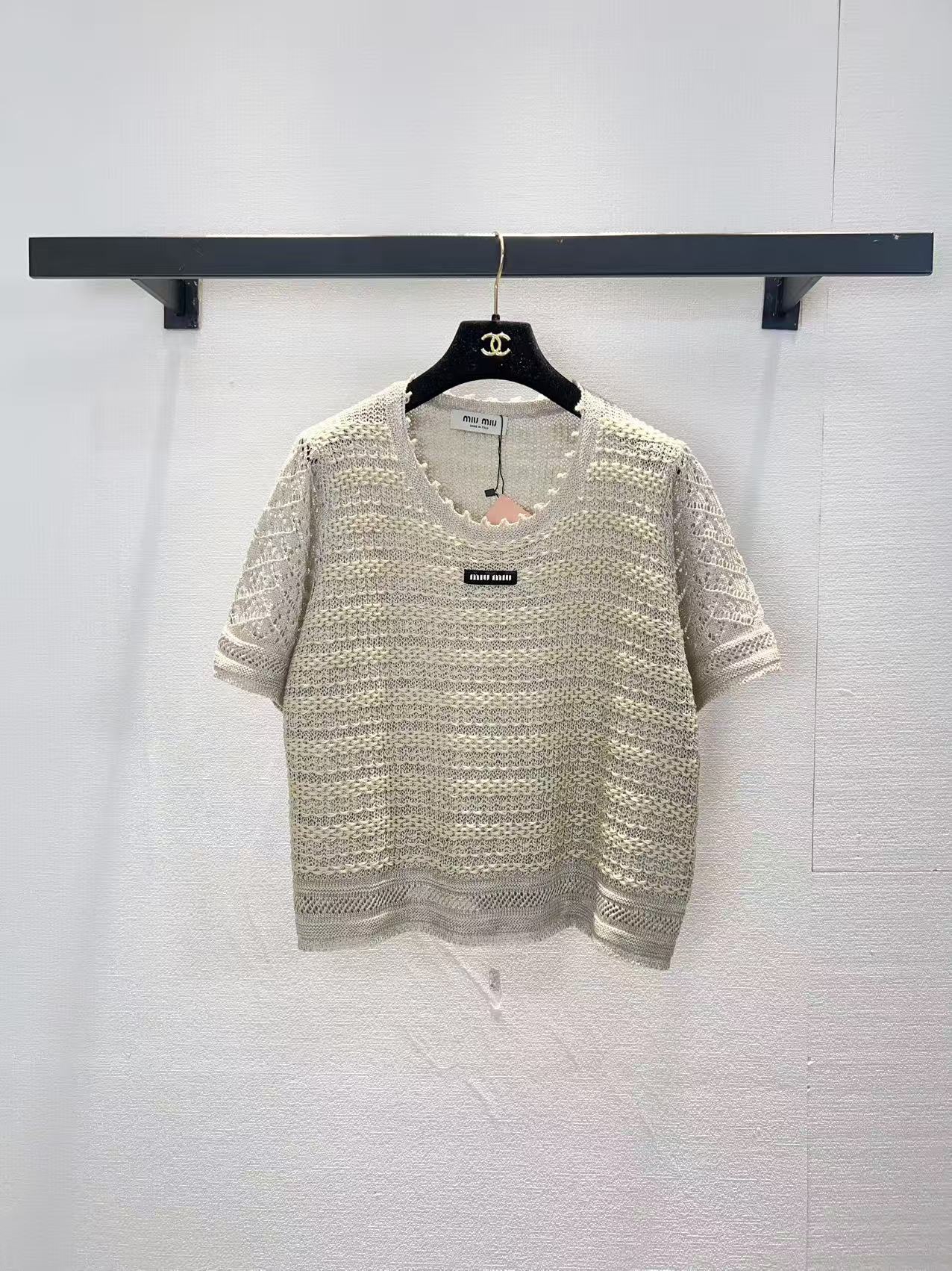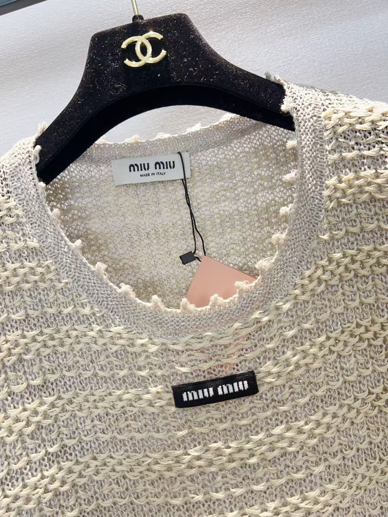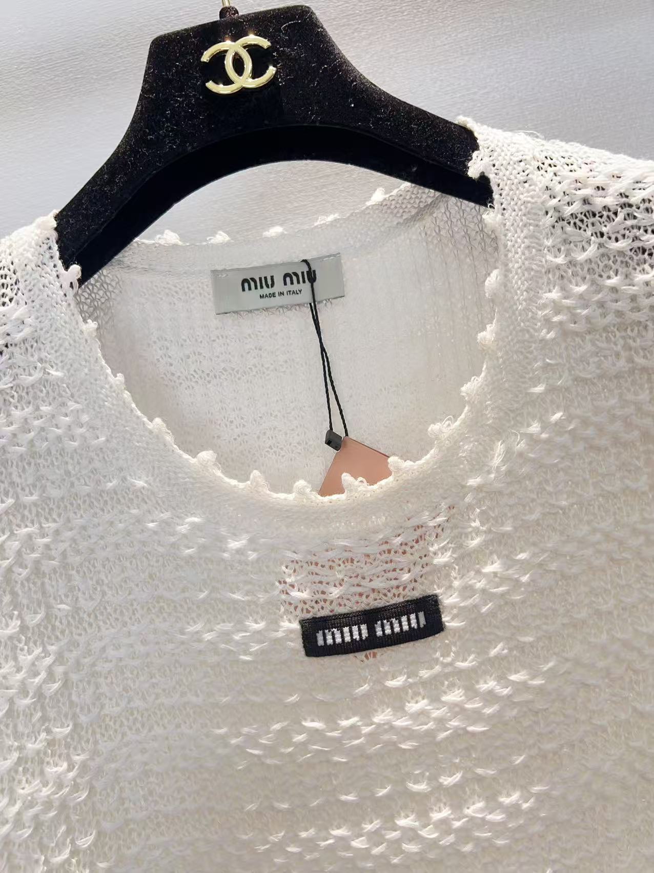 这款衣服是AAAAA 1:1 质量 (非常棒). 使用了和原版一模一样的材料. 商标部分也保持了和缪缪/Miu Miu一样. 图片拍摄是实物衣服拍摄, 您所收到的实物保证和我们图片一模一样.