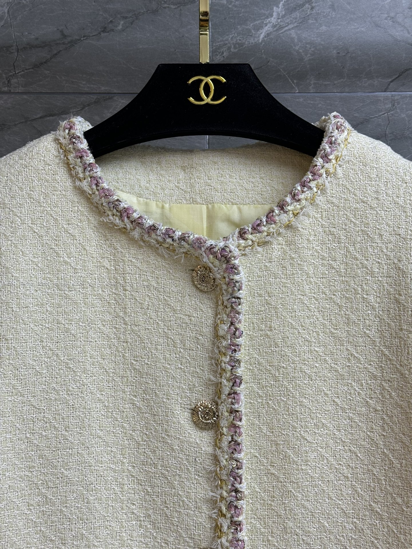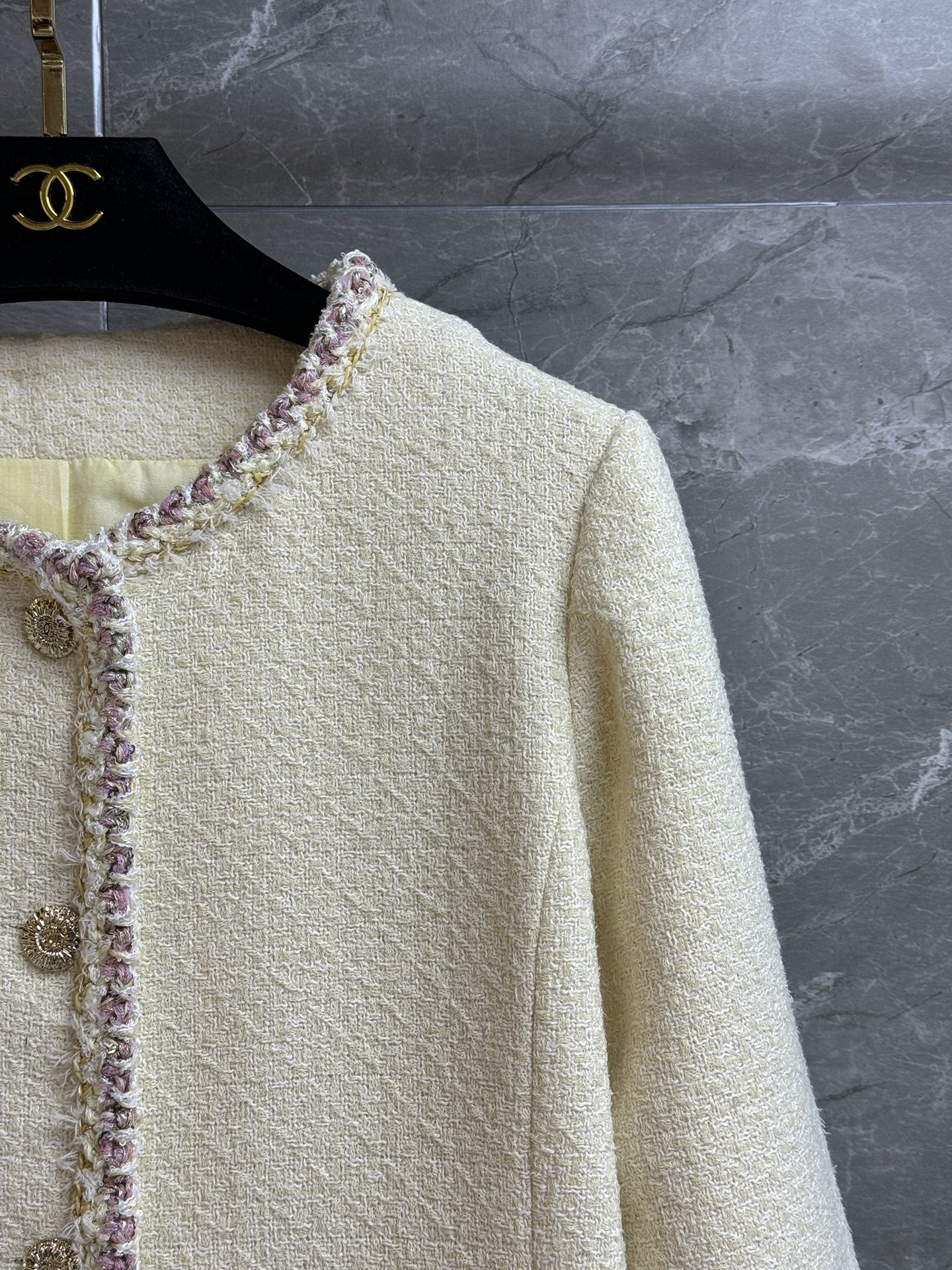 这款衣服是AAAAA 1:1 质量 (非常棒). 使用了和原版一模一样的材料. 商标部分也保持了和香奈儿/Chanel一样. 图片拍摄是实物衣服拍摄, 您所收到的实物保证和我们图片一模一样.